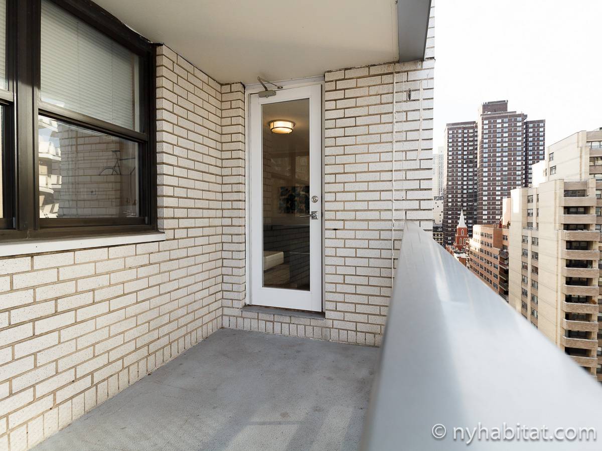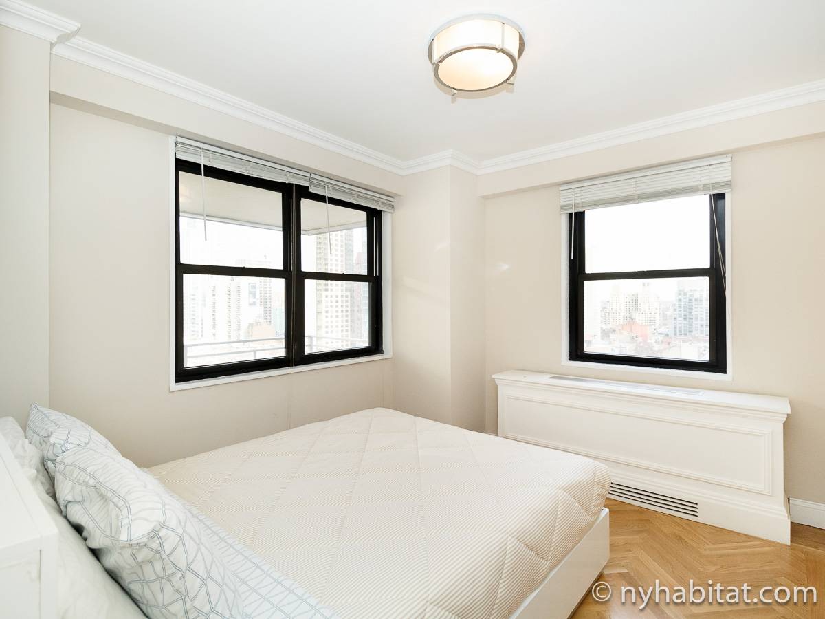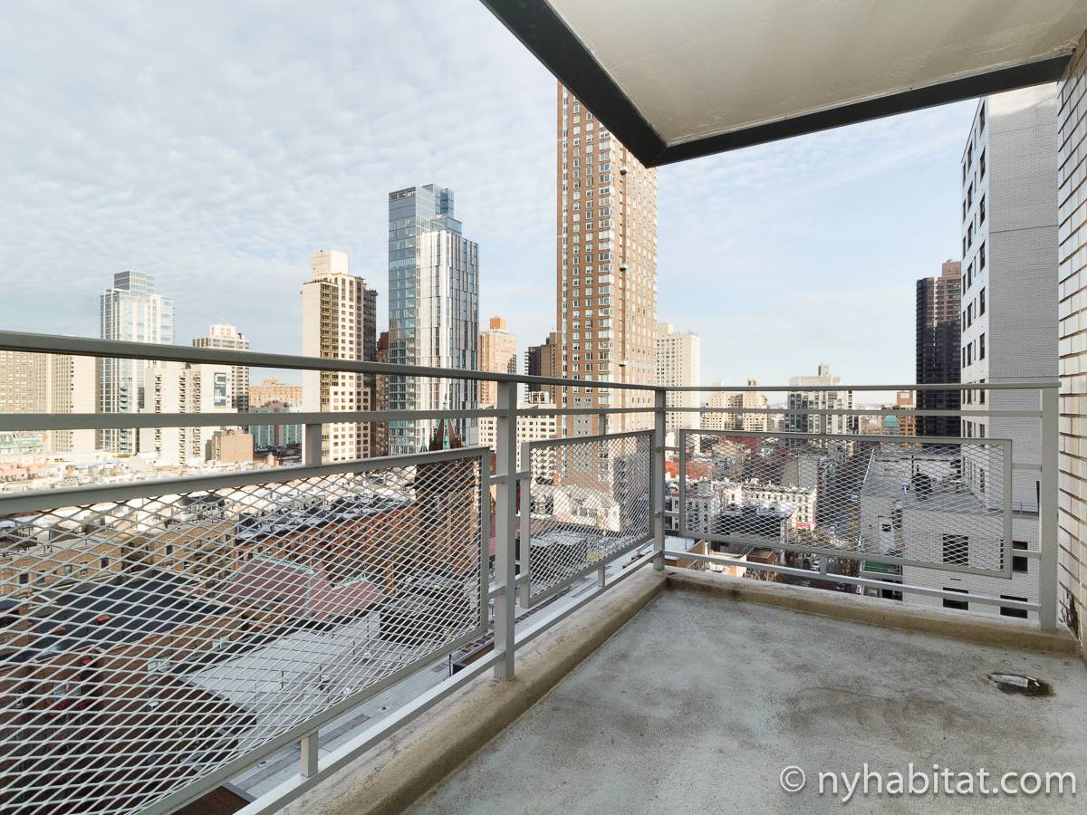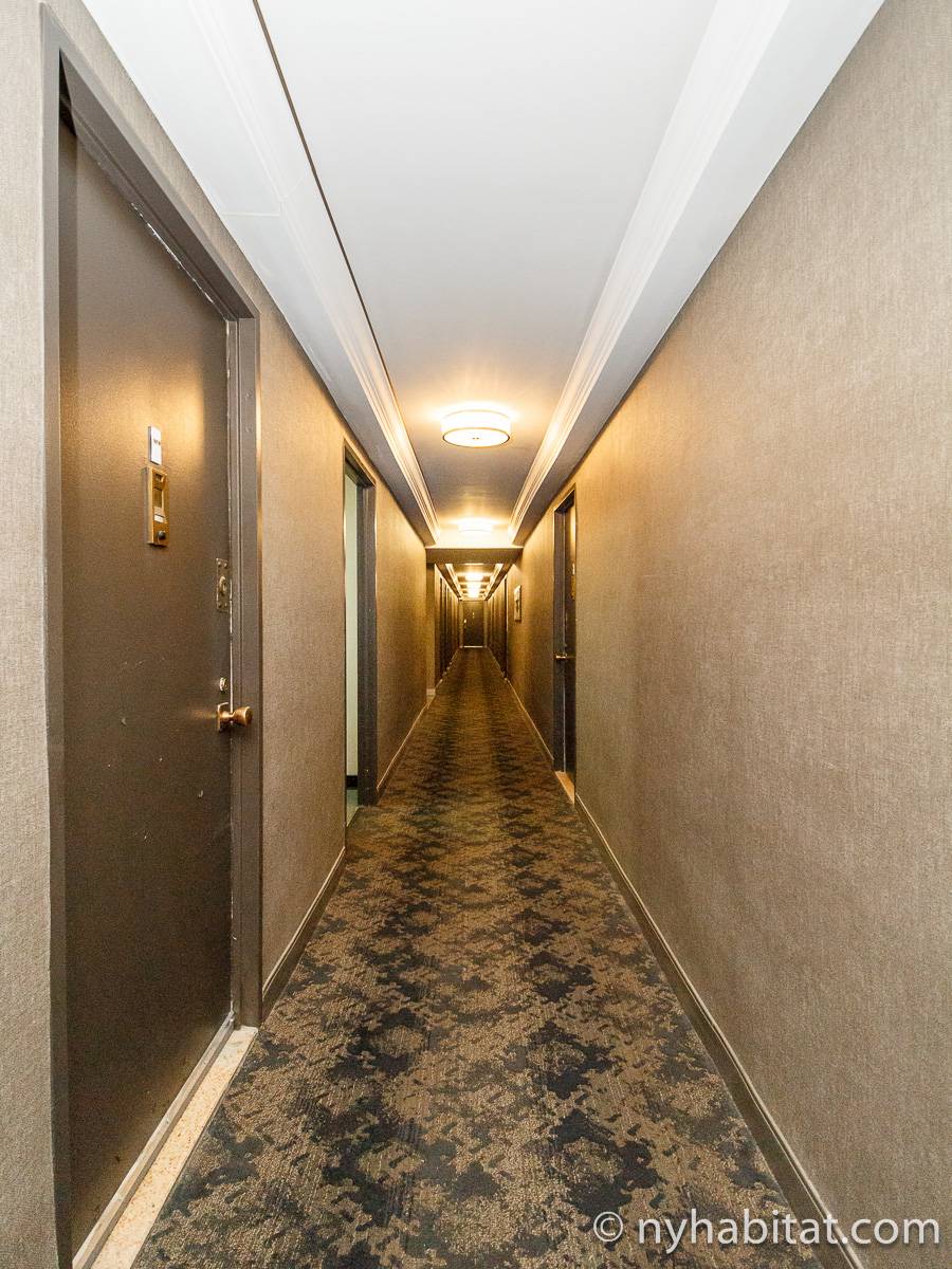 Diese möblierte 4-Zimmer-Mietwohnung mit zwei Badezimmern befindet sich im 16. Stock (entspricht in Europa dem 15. Stock) eines Hochhauses mit Aufzug und 24-Stunden-Portier, welches nahe der East 86th Street & 2nd Avenue in der Upper East Side von Manhattan liegt. Das Gebäude verfügt über eine Luxusausstattung, welche ein Fitnesscenter und ein Hallenbad beinhaltet.