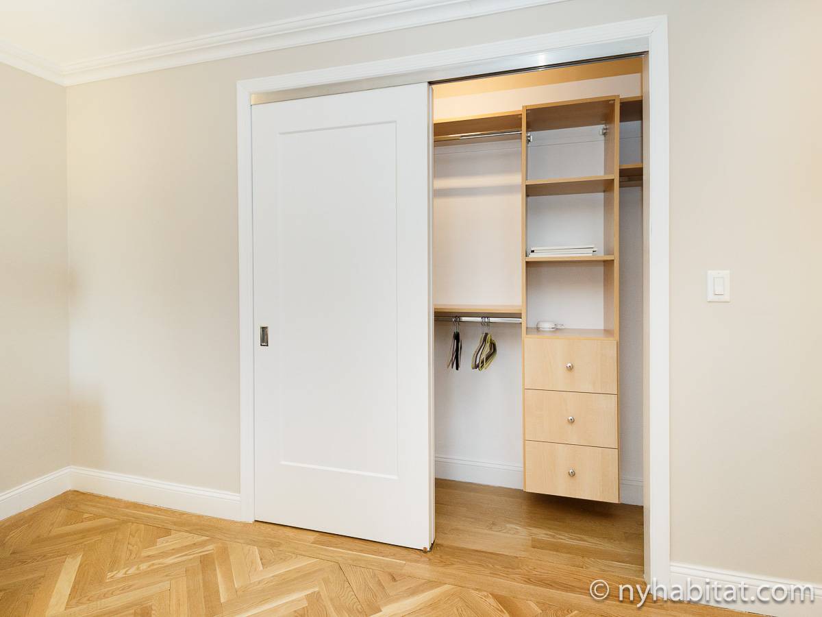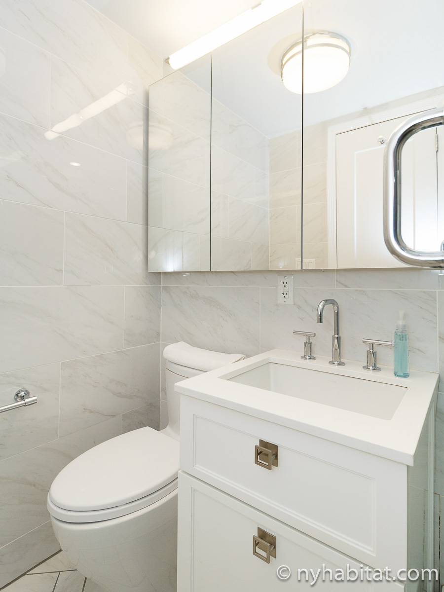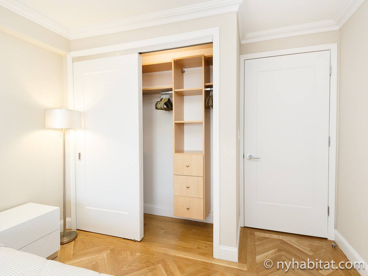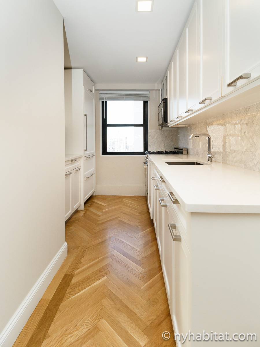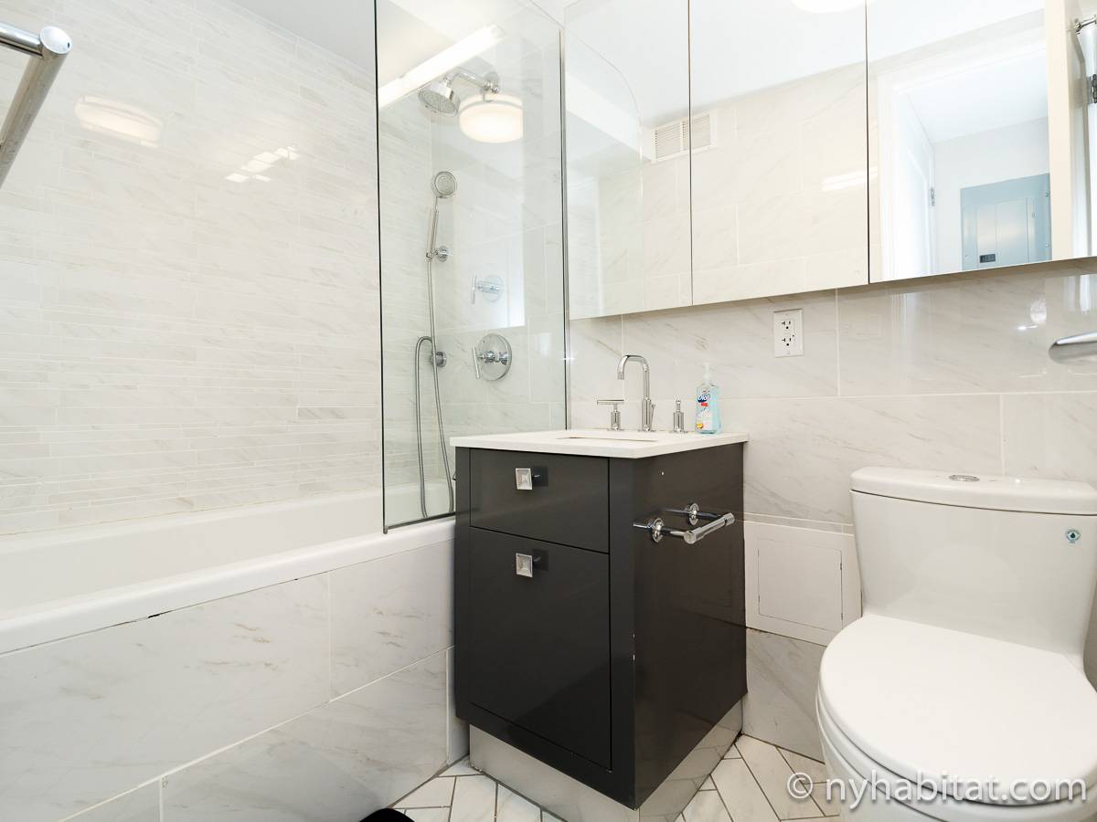 Diese möblierte 4-Zimmer-Mietwohnung mit zwei Badezimmern befindet sich im 16. Stock (entspricht in Europa dem 15. Stock) eines Hochhauses mit Aufzug und 24-Stunden-Portier, welches nahe der East 86th Street & 2nd Avenue in der Upper East Side von Manhattan liegt. Das Gebäude verfügt über eine Luxusausstattung, welche ein Fitnesscenter und ein Hallenbad beinhaltet.