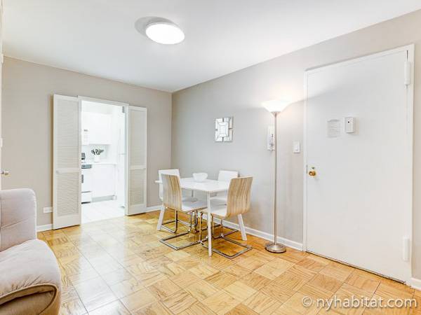 Diese möblierte 3-Zimmer-Wohnung liegt im 10. Stock (entspricht in Europa dem 9. Stock) eines Hochhauses mit Aufzug und 24-Stunden-Pförtner in der Nähe der East 86th Street & 2nd Avenue in der Upper East Side von Manhattan. Dieses haustierfreundliche Gebäude bietet exklusive Annehmlichkeiten wie einen Concierge- Service, ein Spielzimmer für Kinder, ein Fitnesscenter und einen luxuriösen Innenpool.