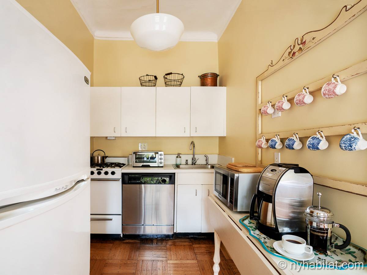 Willkommen in dieser möblierten 3-Zimmer-Wohnung an der Upper East Side in Manhattan in New York City. Im 4. Stock von insgesamt 5 Stockwerken (entspricht in Europa dem 3. Stock von 4) zwischen der Lexington Avenue und East 62nd Street bietet diese möblierte Wohnung auf der Nordseite einen Blick auf die Straße und einen Überblick über den Garten auf der Südseite.