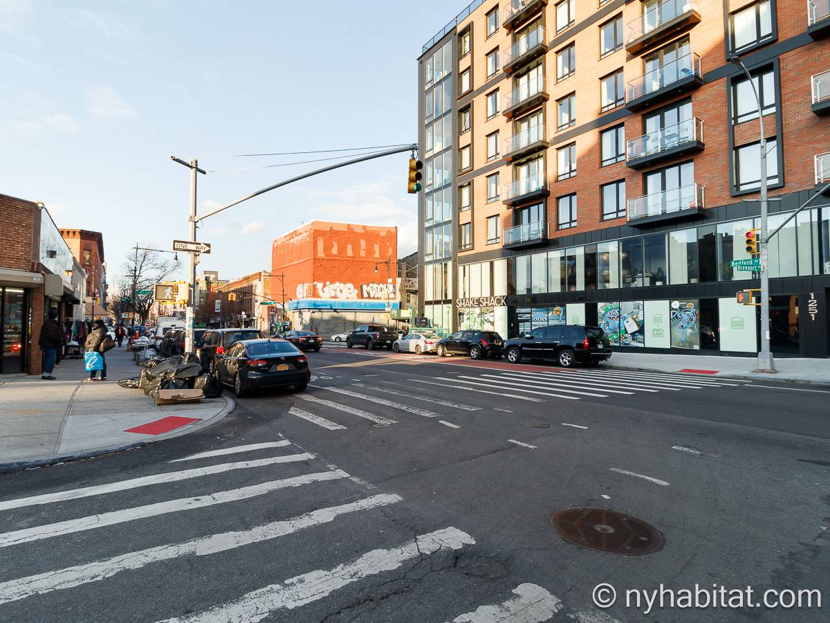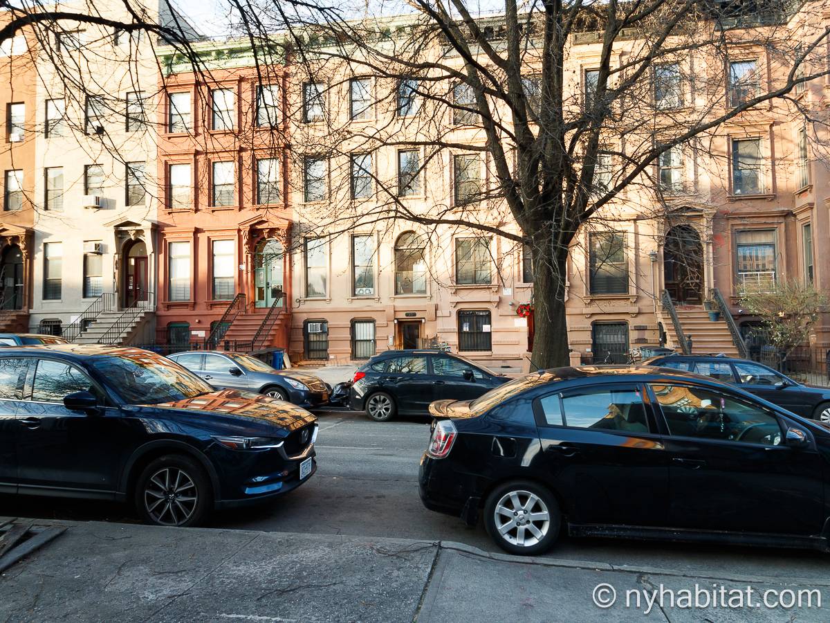 Wohnen Sie in einem Brooklyner Brownstone! Diese 4-Zimmer-Wohnung mit 2 Badezimmern befindet sich am Brevoort Place und Bedford Place im Stadtviertel Bedford-Stuyvesant im Stadtbezirk Brooklyn. Zu den nahegelegenen U-Bahn-Stationen gehören die Franklin Avenue/Fulton Street (160 m) mit den Linien C sowie S und die Station Nostrand Avenue (480 m) mit der Linie A. Die Wohnung befindet sich im 2. und zugleich obersten Stock (entspricht in Europa dem 1. Stock) eines Reihenhauses. Bitte beachten Sie, dass es keinen Aufzug gibt. Das Wohnzimmer und Schlafzimmer 3 sind nach Norden ausgerichtet, während die Schlafzimmer 1 und 2 nach Osten ausgerichtet sind.
