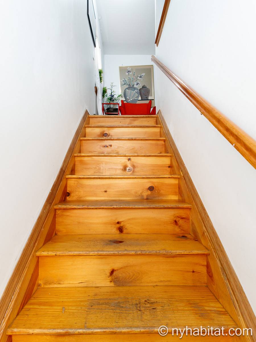Die Wohnung verfügt über Hartholzböden und bietet sowohl Elemente mit altem New York City-Charme als auch moderne Elemente. Wenn Sie die Treppe hinauf in das Wohnzimmer / die offene Küche gehen, finden Sie viel Platz zum Entspannen mit Ihren Freunden und Ihrer Familie (und mit drei Schlafsofas haben diese viel Platz zum Übernachten!). Das Schlafzimmer 1 verfügt über zwei Doppelbetten und einen begehbaren Kleiderschrank mit viel Stauraum. Die Schlafzimmer 2 und 3 verfügen jeweils über ein Doppelbett und einen Einbauschrank. Jedes der beiden Badezimmer verfügt über eine Duschbadewanne, Regale und ein Waschbecken mit Unterschrank.