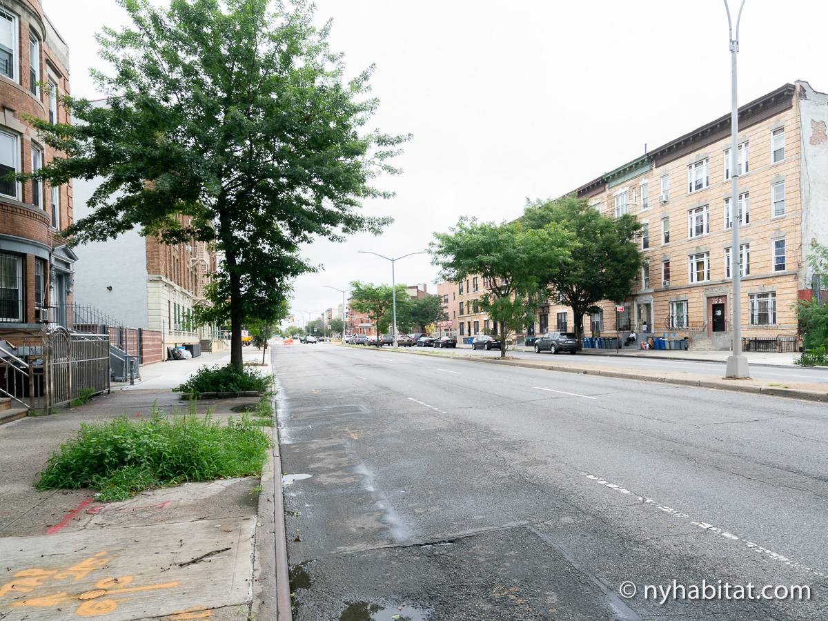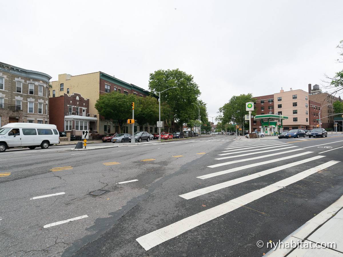 Wenn Sie aus der Tür treten, befinden Sie sich in einer vielfältigen und belebten Gegend des Stadtbezirks Brooklyn.