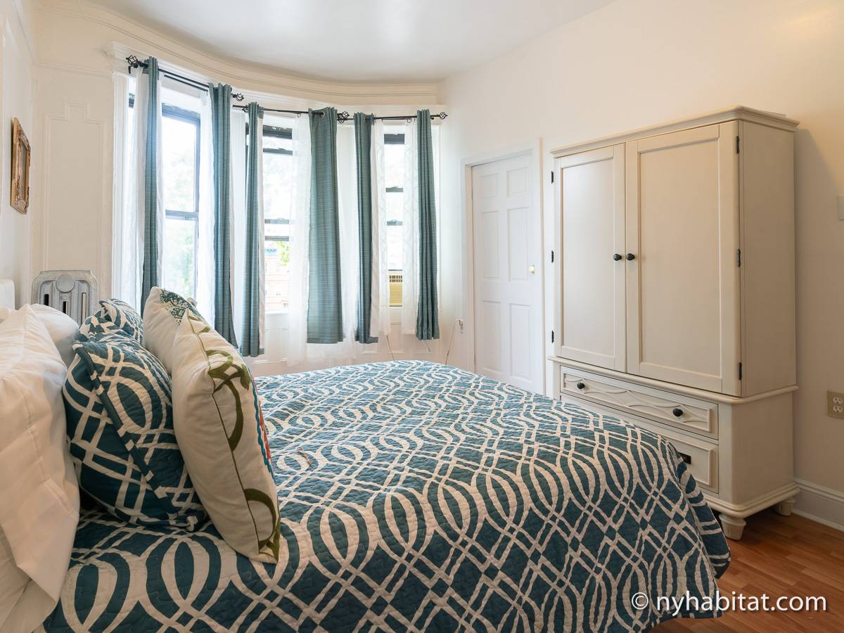 - Die vier Schlafzimmer haben jeweils ein Queensize-Bett und das fünfte hat ein Doppelbett, so dass jeder auf seine Kosten kommt. Hartholzböden und dekorative Zierleisten verleihen den Schlafzimmern einen klassischen New Yorker Charme.