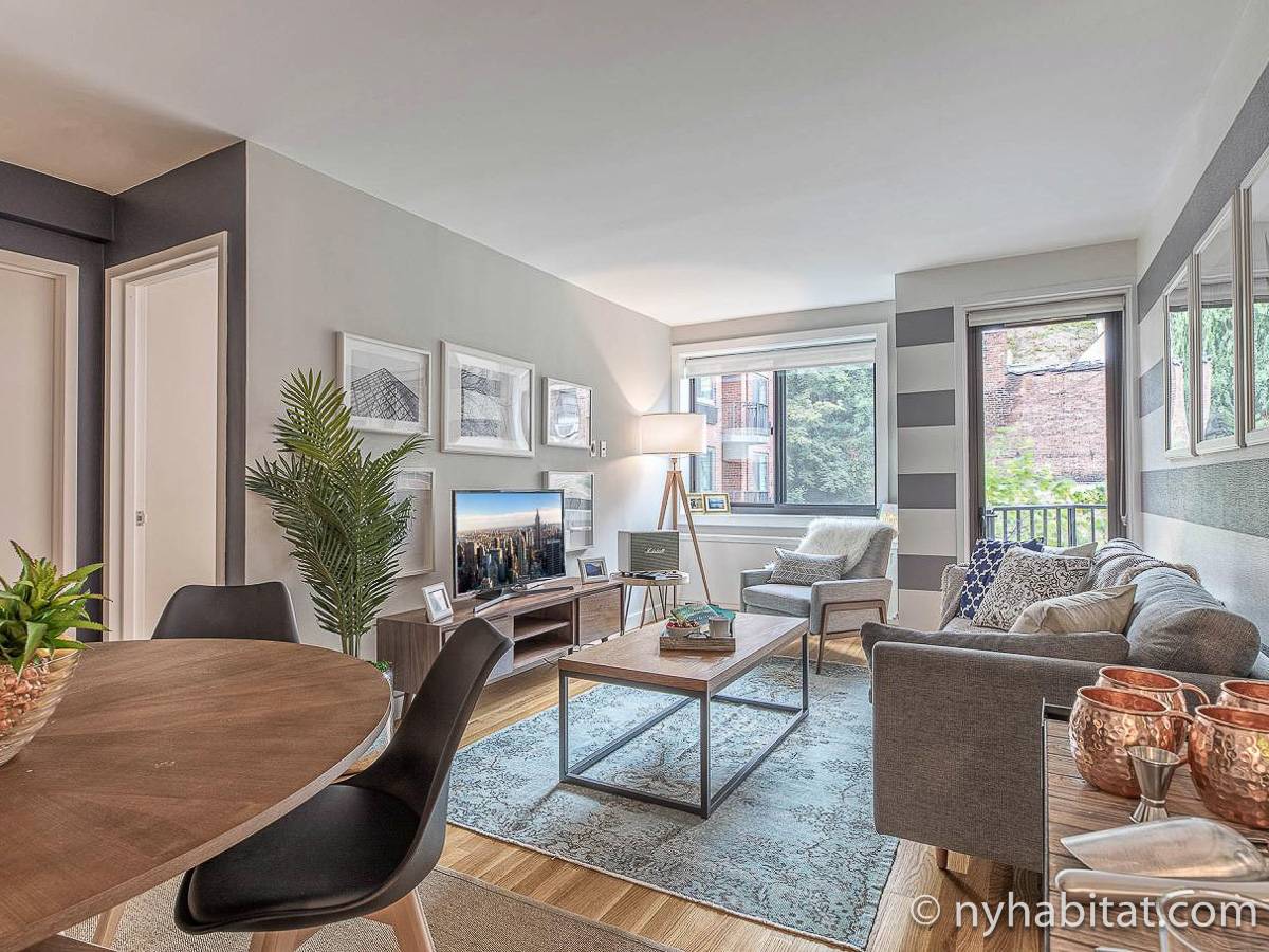Willkommen im stilvollen Manhattan und in dieser Wohnung. Diese ist so eingerichtet, dass Sie die Individualität von Chelsea wiederspiegelt. Das Wohnzimmer ist mit einer Couch, einem Couchtisch und Flachbildfernseher zum Entspannen ausgestattet. Die Wände verleihen der Wohnung Charakter und vermitteln eine wohnliche Atmosphäre. Der große runde Esstisch bietet Platz für bis zu vier Personen, damit Sie sich ohne Probleme miteinander unterhalten können. Die Küche bietet einen Herd, Toaster, eine Kühl-Gefrierkombination und Mikrowelle zum Zubereiten Ihrer Gerichte. Sie haben dort sogar einen Geschirrspüler zu Ihrer Verfügung, was in New York City eine Seltenheit ist. Doch es gibt noch mehr zu entdecken! Im Schlafzimmer finden Sie eine Akzentwand, Einrichtung in neutralen Farbtönen und ein Queensize-Bett zum Entspannen von einem langen Tag.