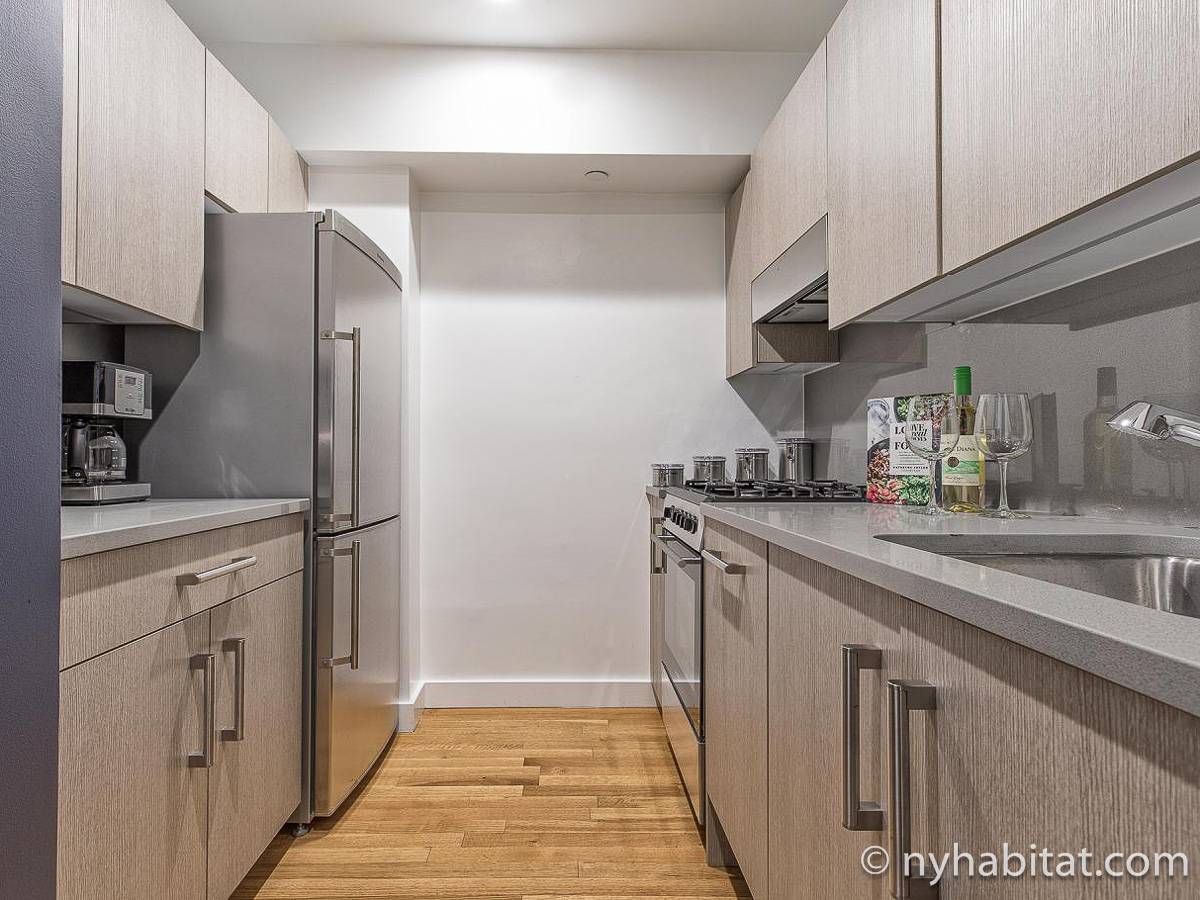 Das Stadtviertel Chelsea im Stadtbezirk Manhattan ist bekannt für seine Reihenhäuser, niedrigen Gebäude und unterschiedlichen Beschäftigungsmöglichkeiten. Diese möblierte 2-Zimmer-Wohnung befindet sich zwischen der West 15th Street und 6th Avenue. Zu den besonderen Leistungen des Gebäudes zählen ein von der Wohnung aus zugänglicher Balkon, Fitnessstudio, Garten im Freien und Aufzug. Die möblierte Wohnung bietet zudem eine Waschmaschine und einen Trockner.