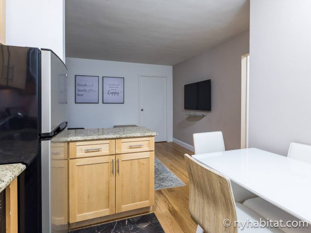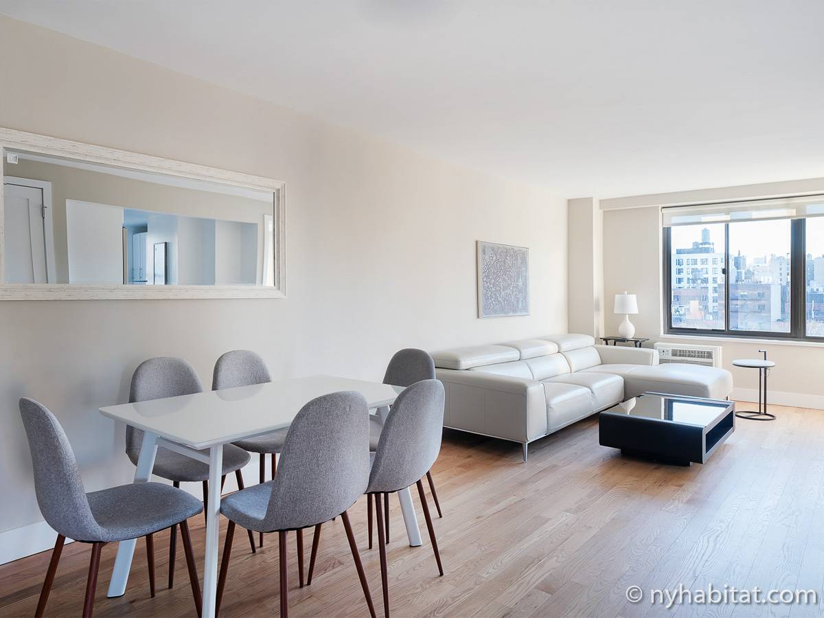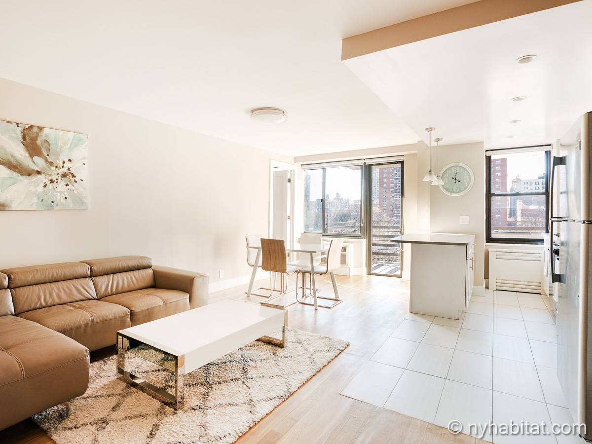 Mieten Sie diese möblierte 3-Zimmer-Wohnung nahe der Columbus Avenue und 97th Street in der Upper East Side in New York City. Die 3-Zimmer-Wohnung ist ca. 84 m² groß und befindet sich im 3. Stock (entspricht in Europa dem 2. Stock) eines Hochhauses samt Fitnessstudio.