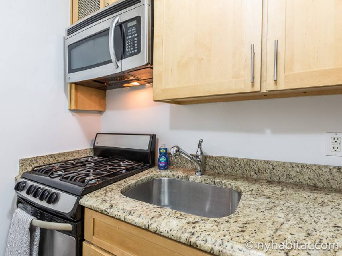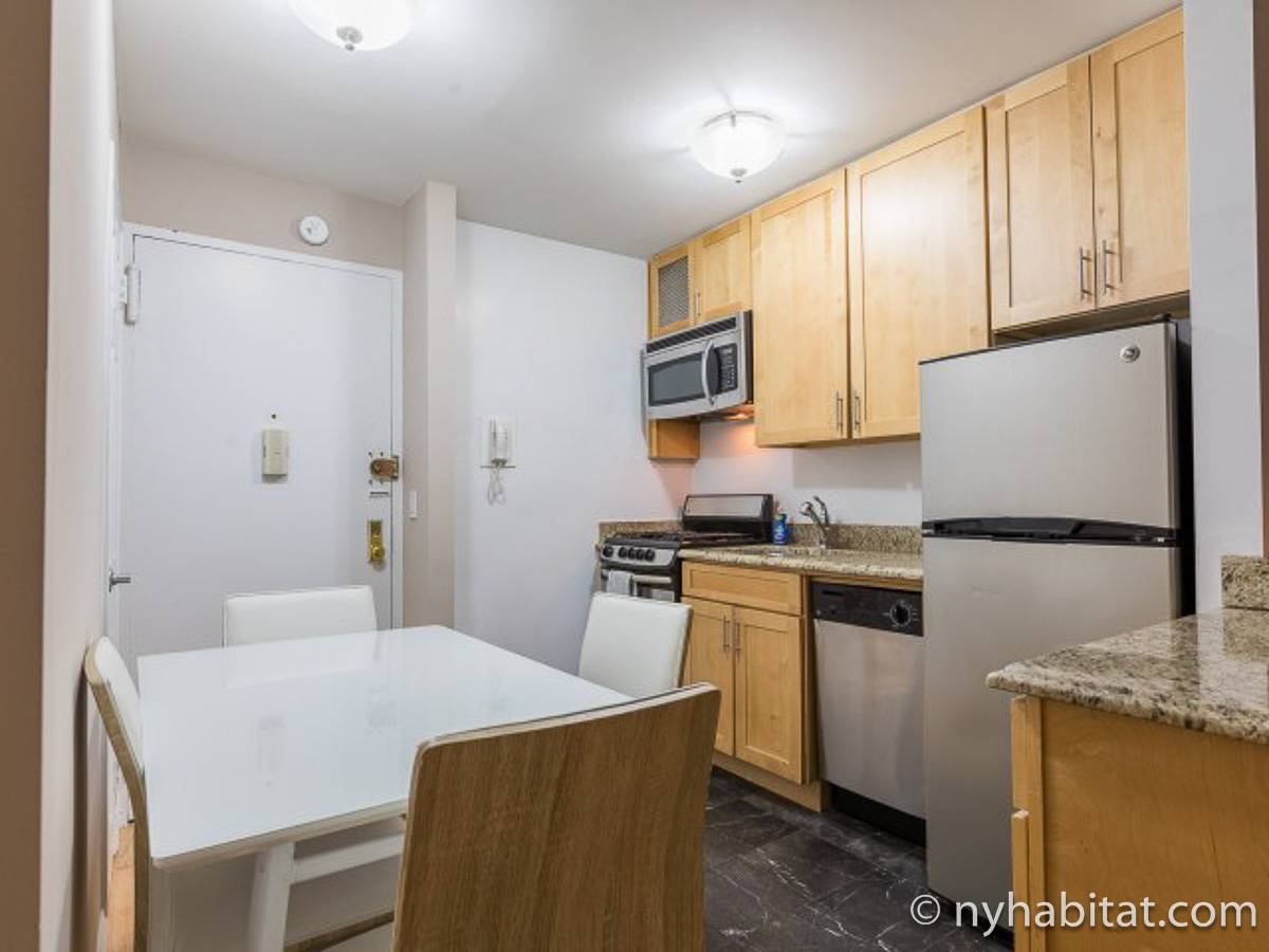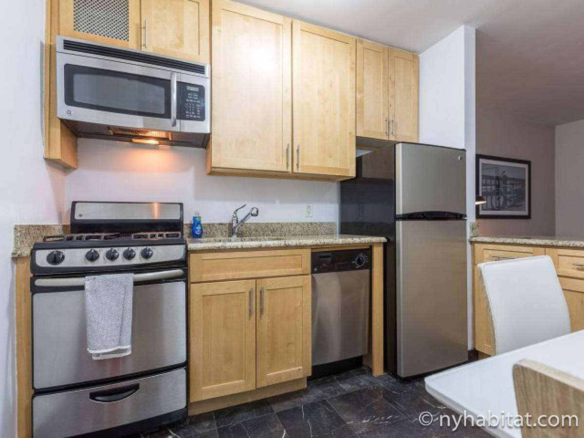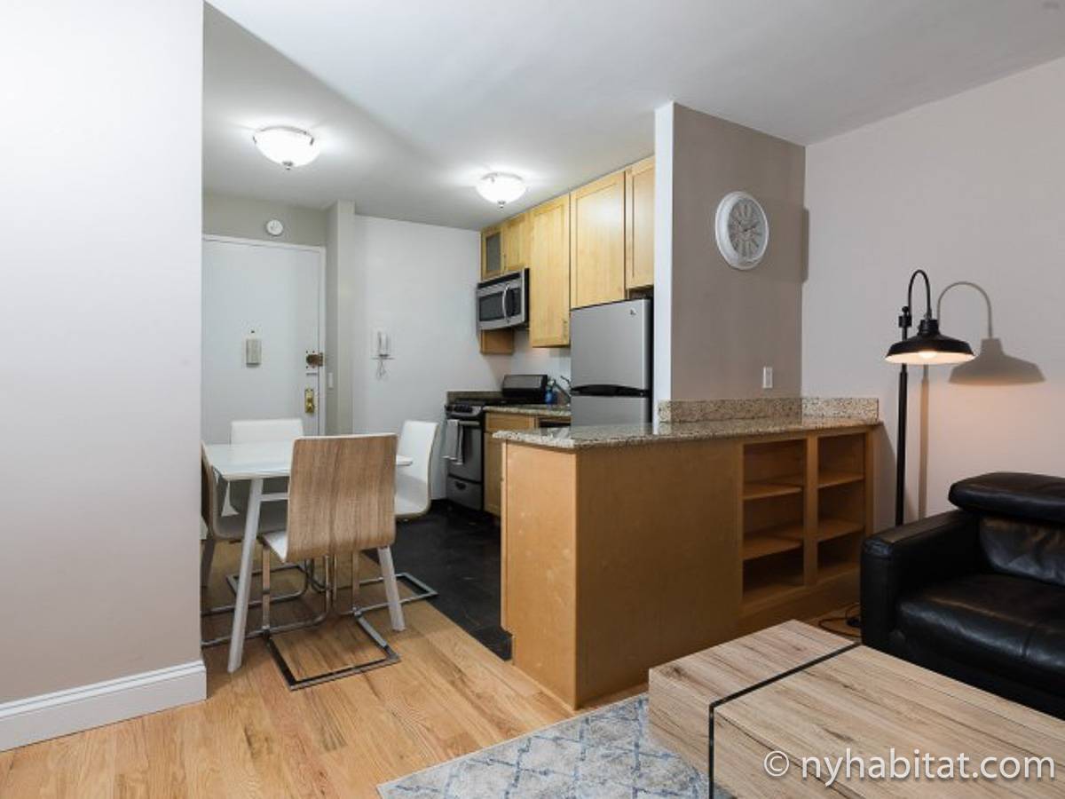 Mieten Sie diese möblierte 3-Zimmer-Wohnung nahe der Columbus Avenue und 97th Street in der Upper East Side in New York City. Die 3-Zimmer-Wohnung ist ca. 84 m² groß und befindet sich im 3. Stock (entspricht in Europa dem 2. Stock) eines Hochhauses samt Fitnessstudio.
