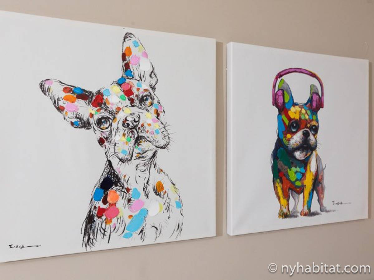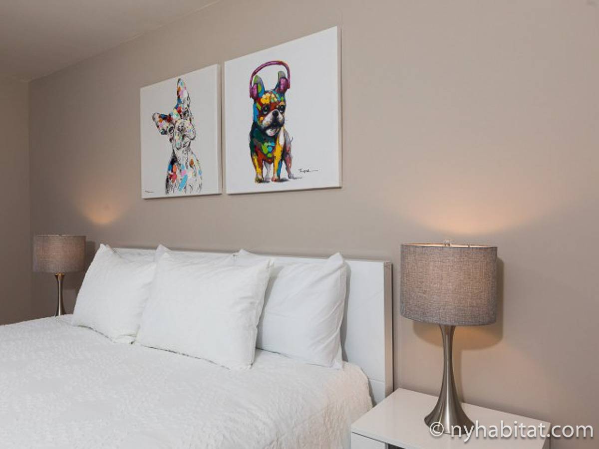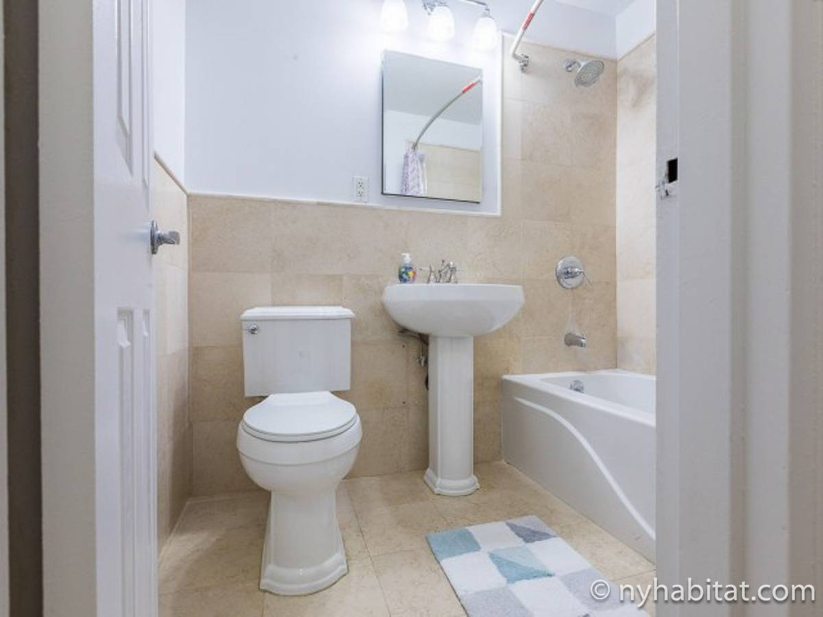 Die Schlafzimmer verfügen über Doppelbetten samt Bettwäsche. Zudem bieten beide Schlafzimmer Klimaanlagen und eines davon einen Fernseher mit Kabelanschluss. Genießen Sie die Aussicht auf die Upper East Side durch die großen Fenster. Das beige Badezimmer ist mit einer Duschbadewanne, Toilette und Handtüchern ausgestattet.