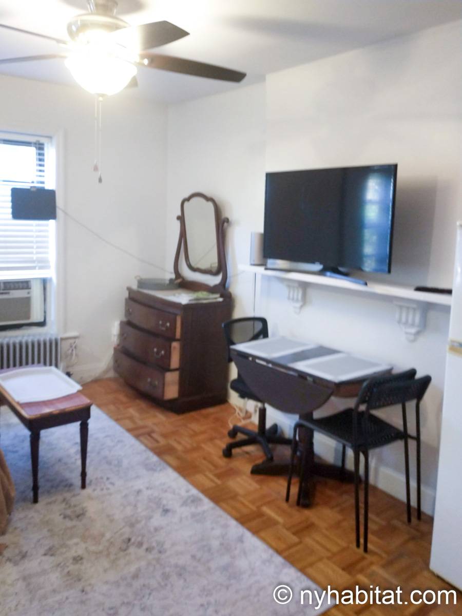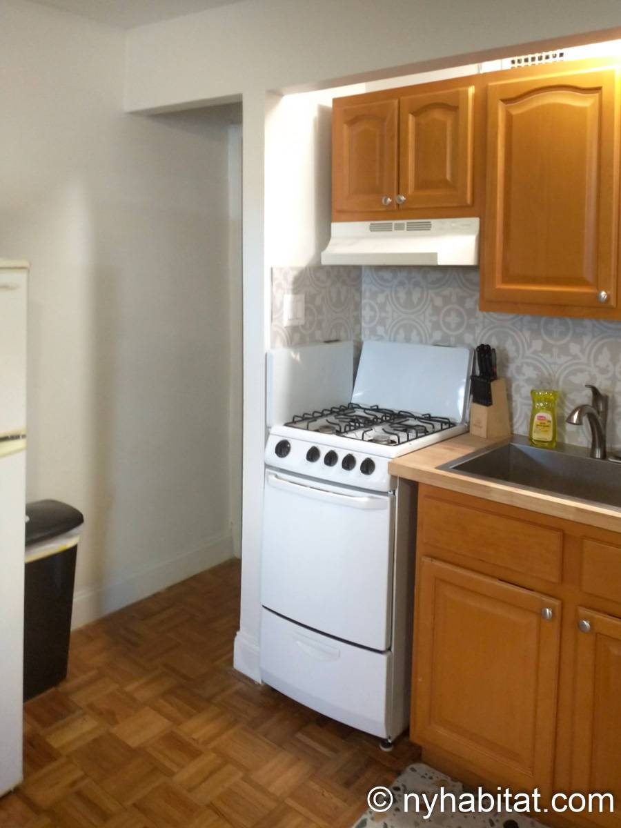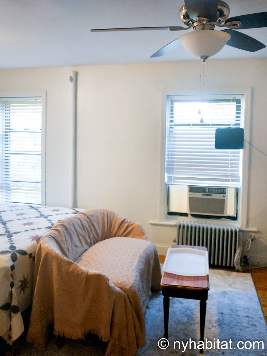 Die möblierte Wohnungsvermietung in New York City bietet alles Notwendige, damit Sie sich sofort in Brooklyn heimisch fühlen. Die Wohnung verfügt über einen Parkettboden und Fenster Richtung Norden mit Blick auf die von Bäumen umgebene Straße. Nutzen Sie das Doppelbett, welches bei zwei Fenstern liegt. Neben dem Bett befinden sich Nachttische und ein Schrank für Stauraum. Eine Kommode mit Spiegel bietet sogar zusätzlichen Stauraum falls benötigt. Entspannen Sie sich dank des Sofas, Couchtisches und Flachbildfernsehers. Nutzen Sie den Esstisch samt Stühlen zum Essen Ihrer Gerichte. Die offene Küche verfügt über helle Holzschränke, Elektrogeräte und alles Notwendige zum Kochen. Das Badezimmer bietet eine Duschbadewanne, Toilette, ein Waschbecken und einen Spiegel.