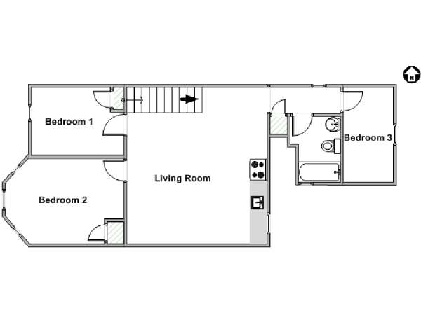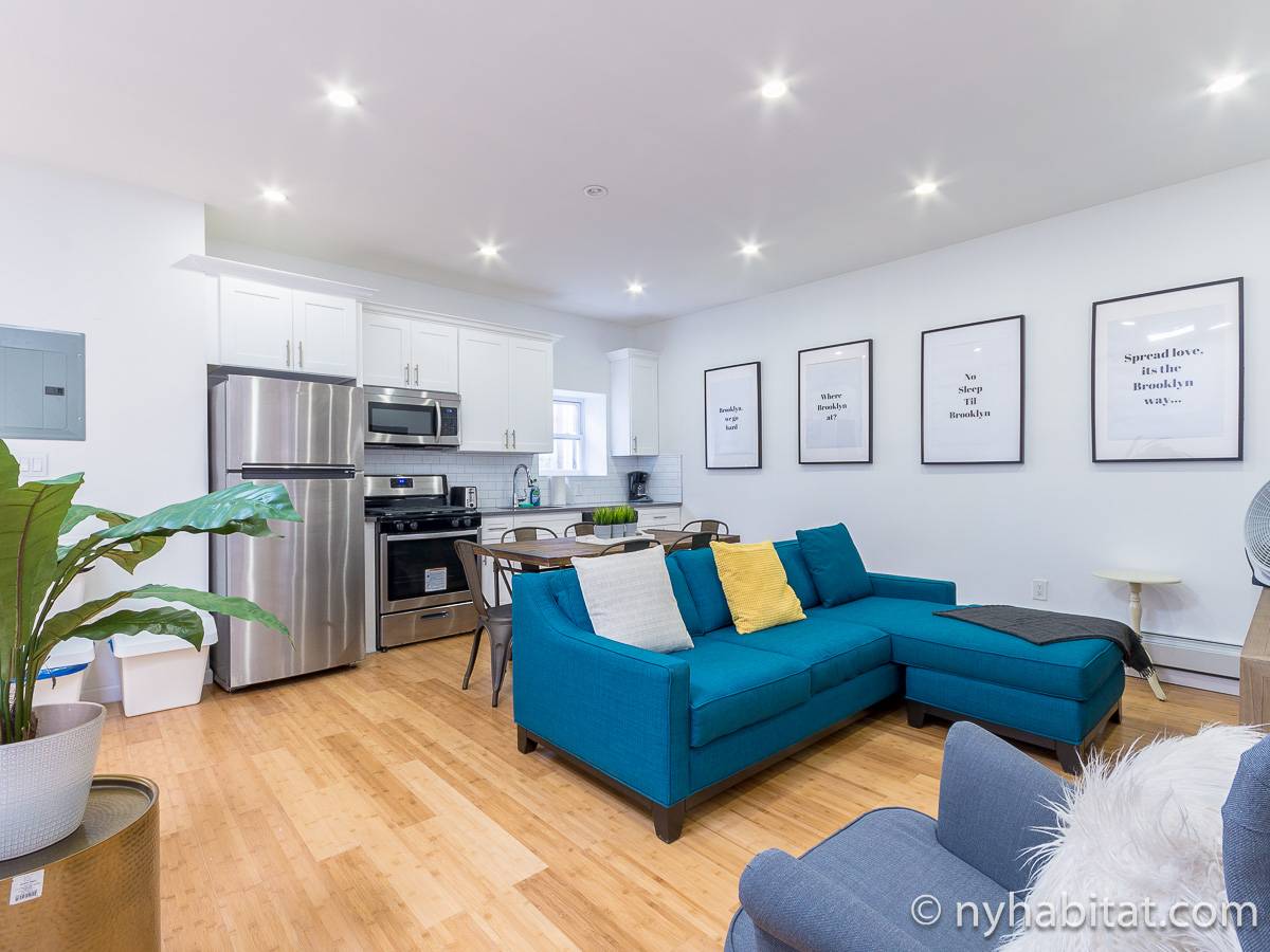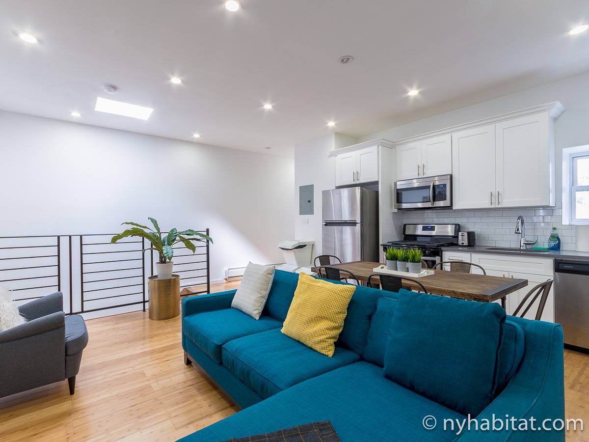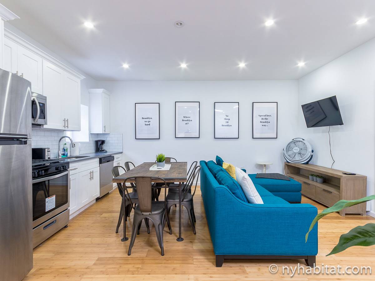 Die Einrichtung weiterer Räume in dieser möblierten Brooklyner 4-Zimmer-Wohnung: