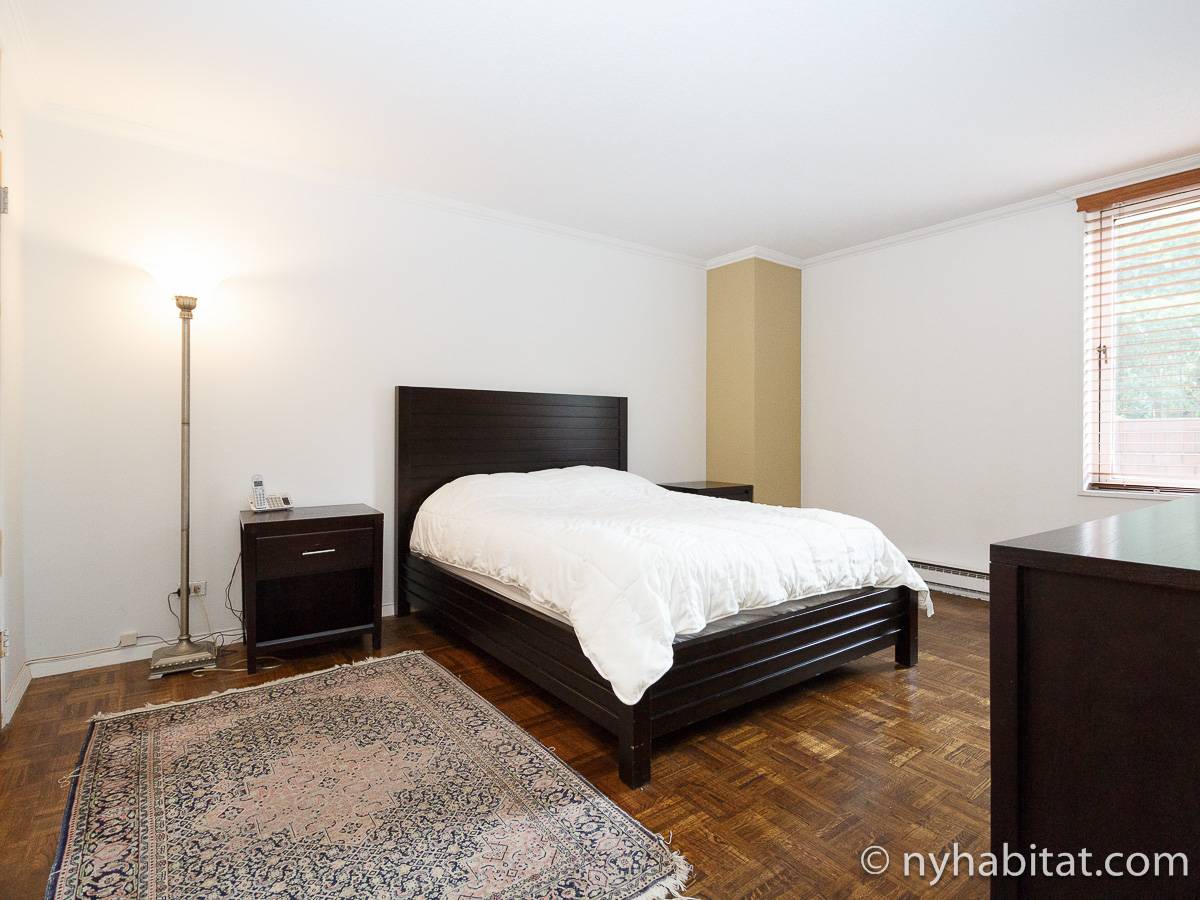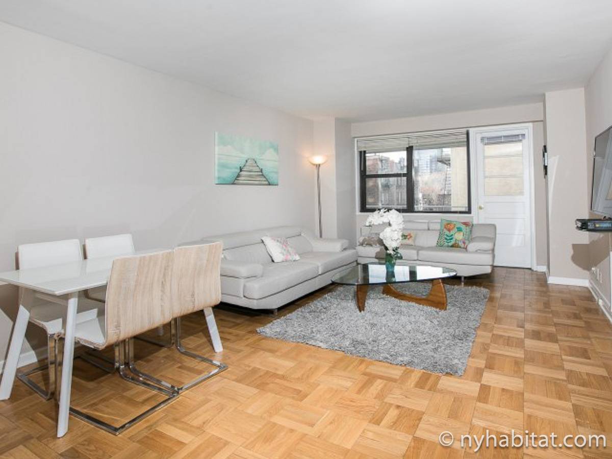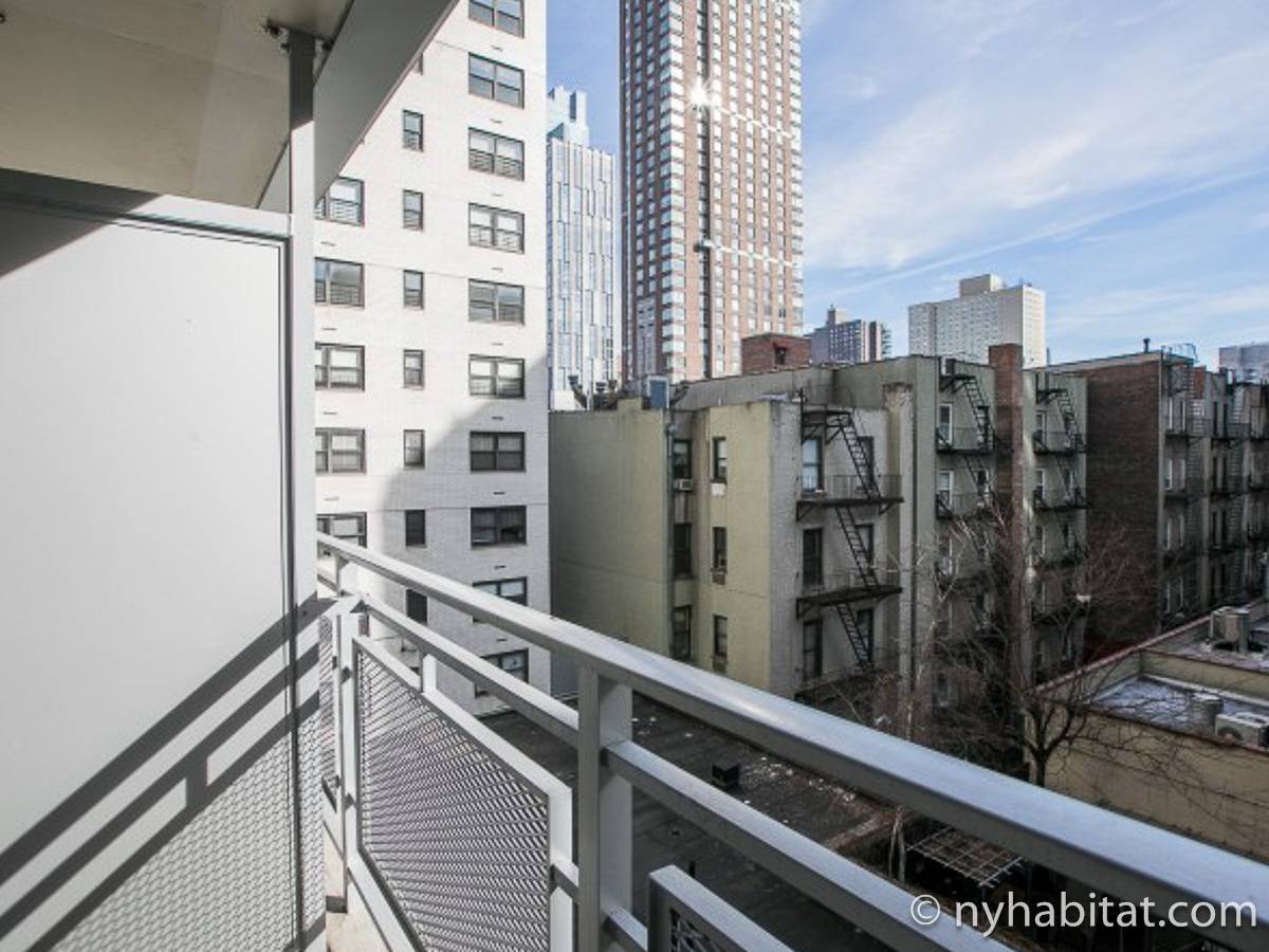Diese möblierte Wohnung mit 2 Schlafzimmern und 2 Badezimmern befindet sich im vierten Stock (entspricht dem dritten Stock in Europa) eines Hochhauses mit Pförtner und Aufzug. In diesem New Yorker Gebäude in der Lower East Side gibt es auch Wascheinrichtungen. Kunstwerke im gesamten Raum, Parkett-Hartholzböden und ein Balkon verleihen der 3-Zimmer-Wohnung Charakter.