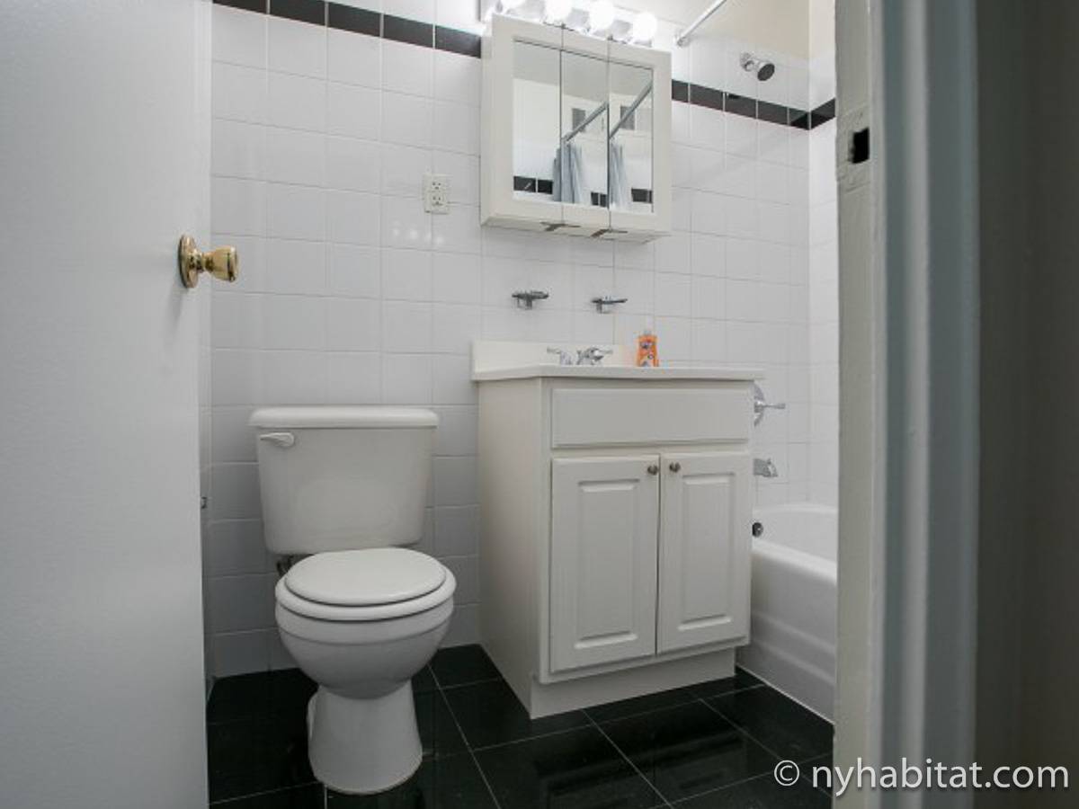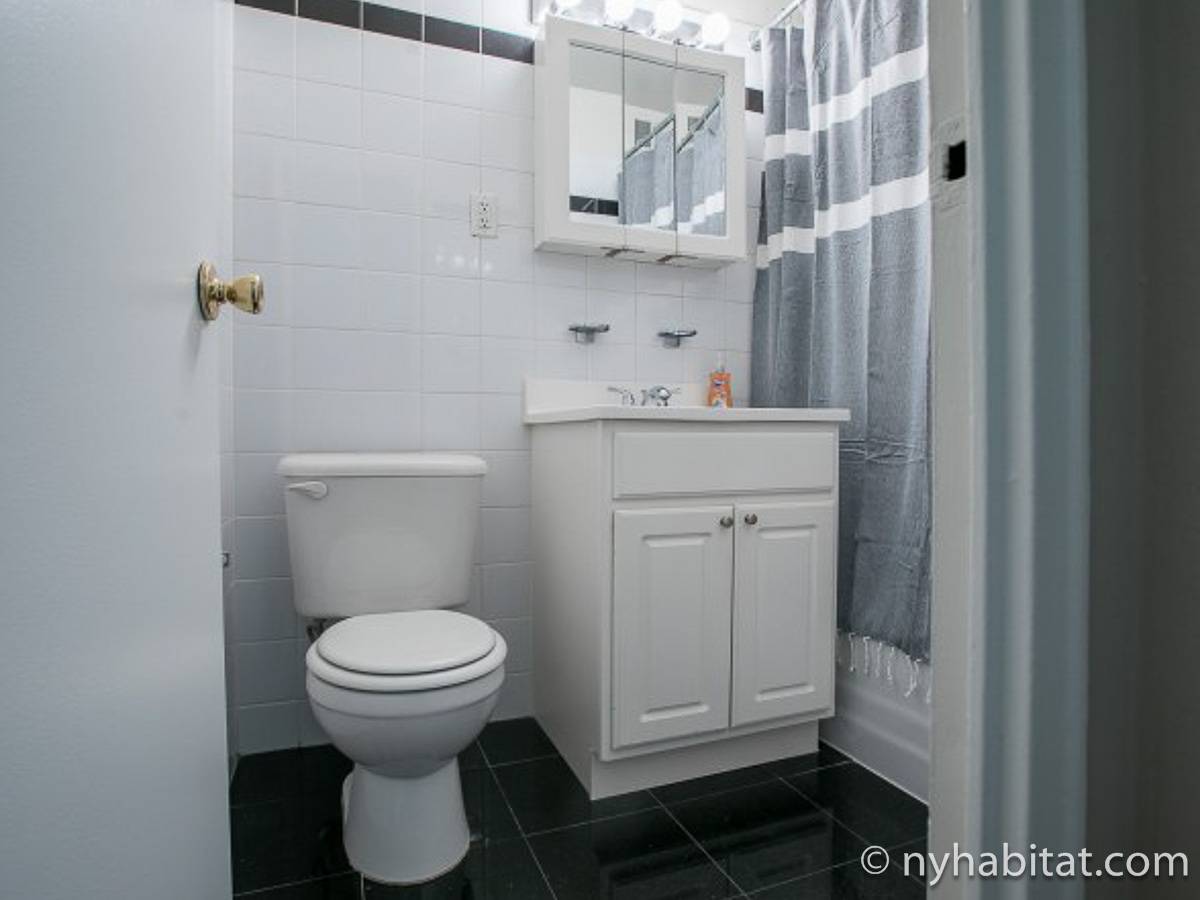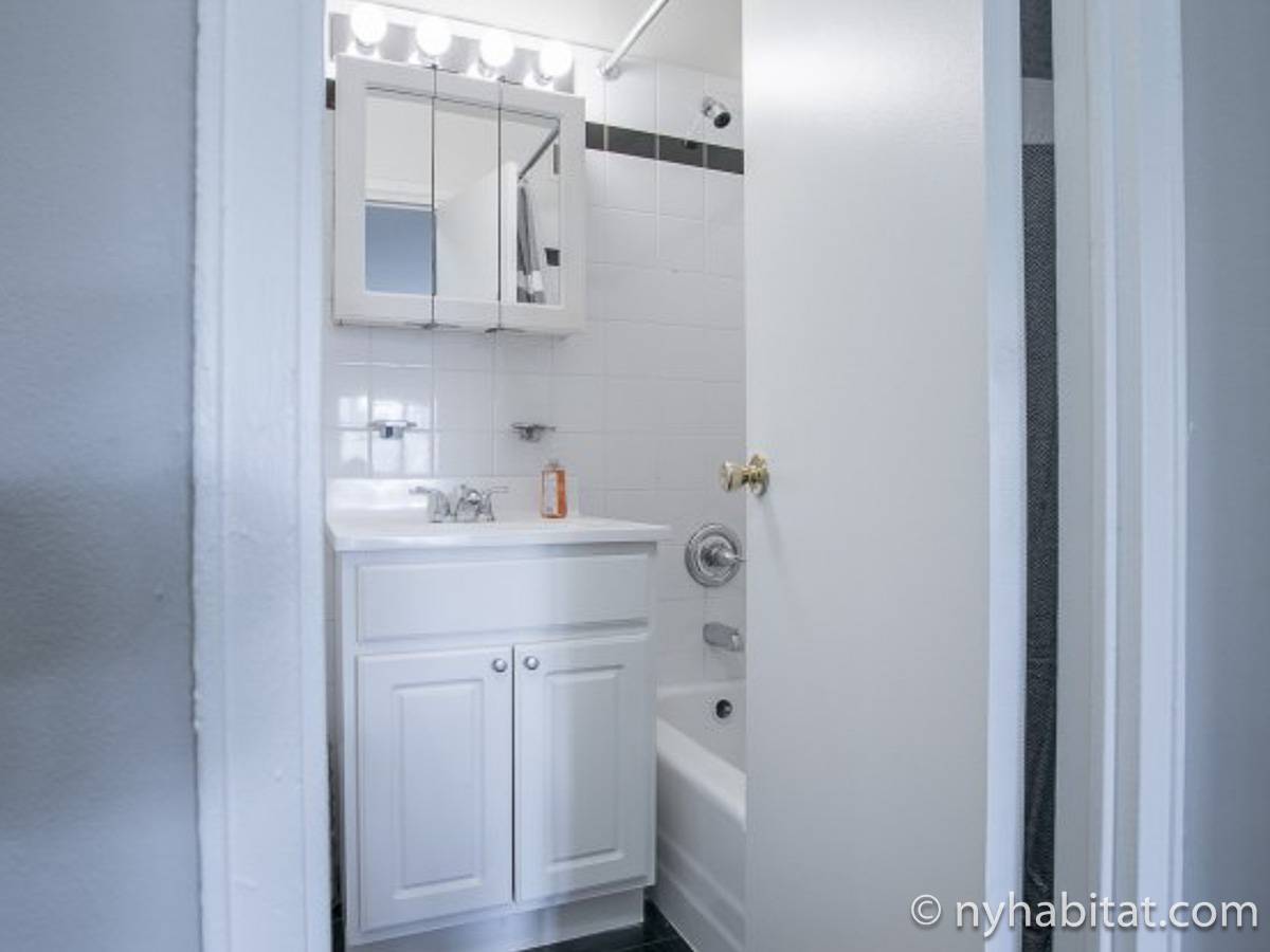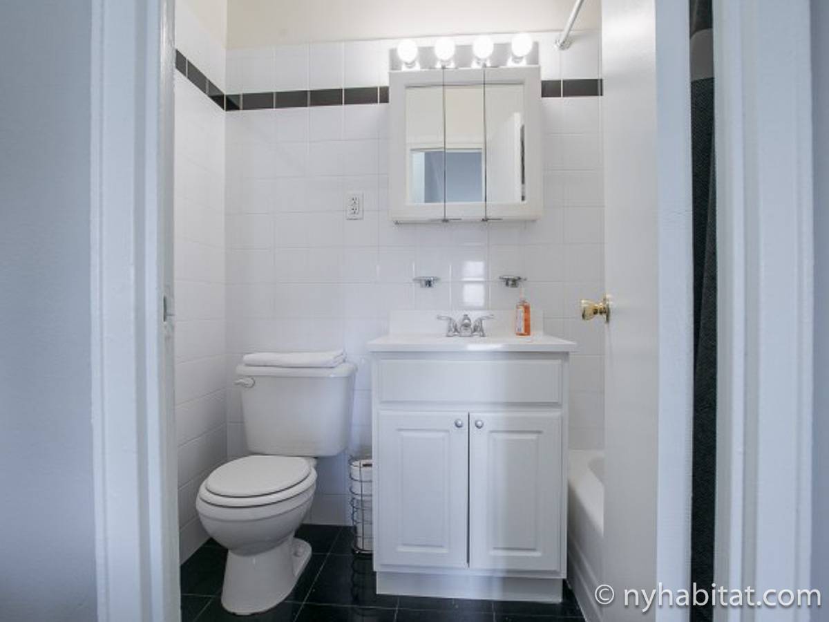 Diese möblierte Wohnung mit 2 Schlafzimmern und 2 Badezimmern befindet sich im vierten Stock (entspricht dem dritten Stock in Europa) eines Hochhauses mit Pförtner und Aufzug. In diesem New Yorker Gebäude in der Lower East Side gibt es auch Wascheinrichtungen. Kunstwerke im gesamten Raum, Parkett-Hartholzböden und ein Balkon verleihen der 3-Zimmer-Wohnung Charakter.
