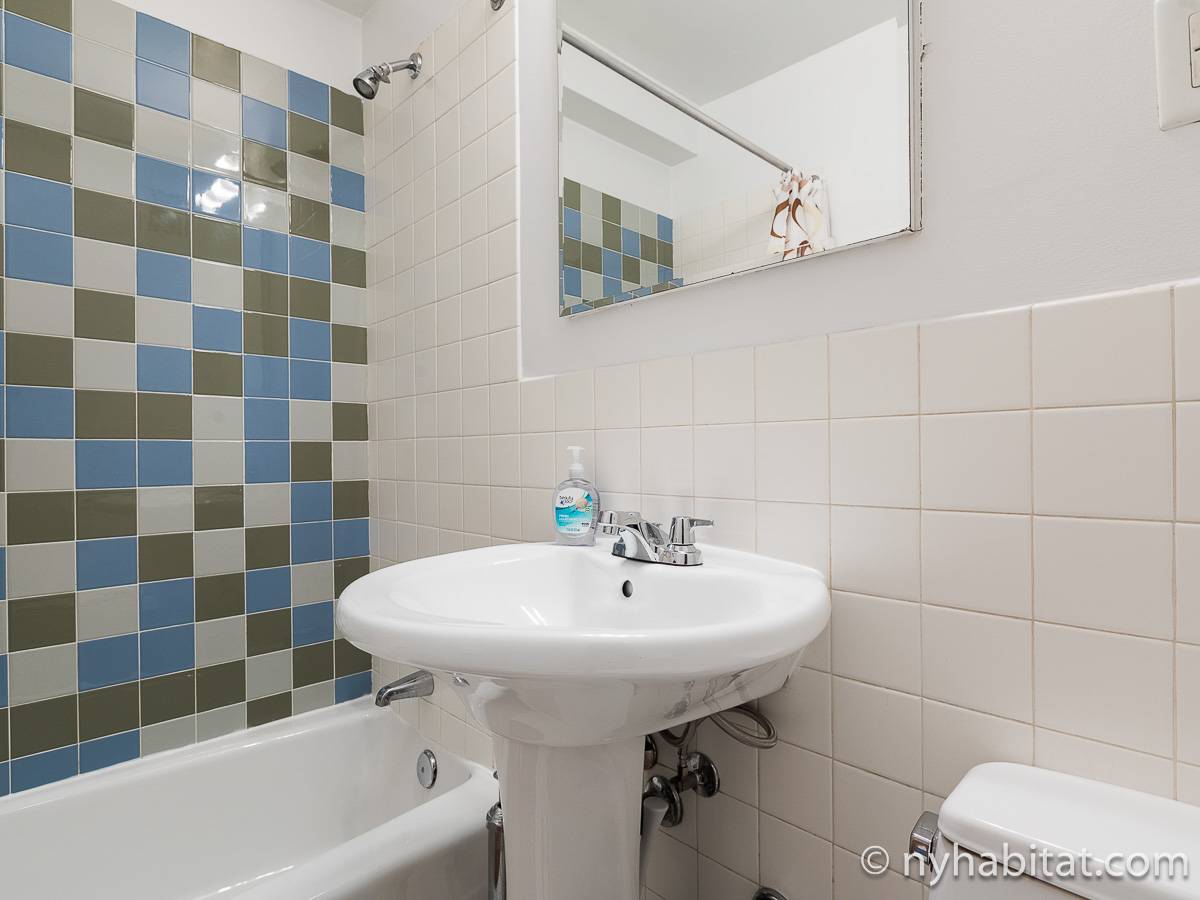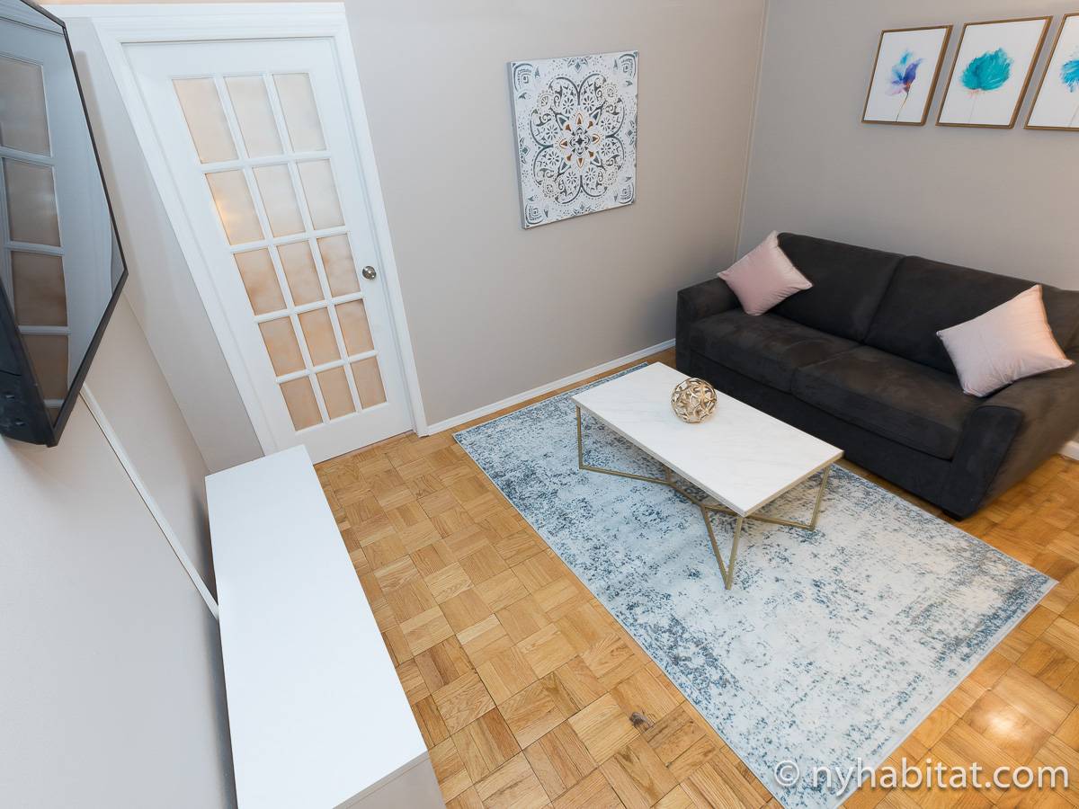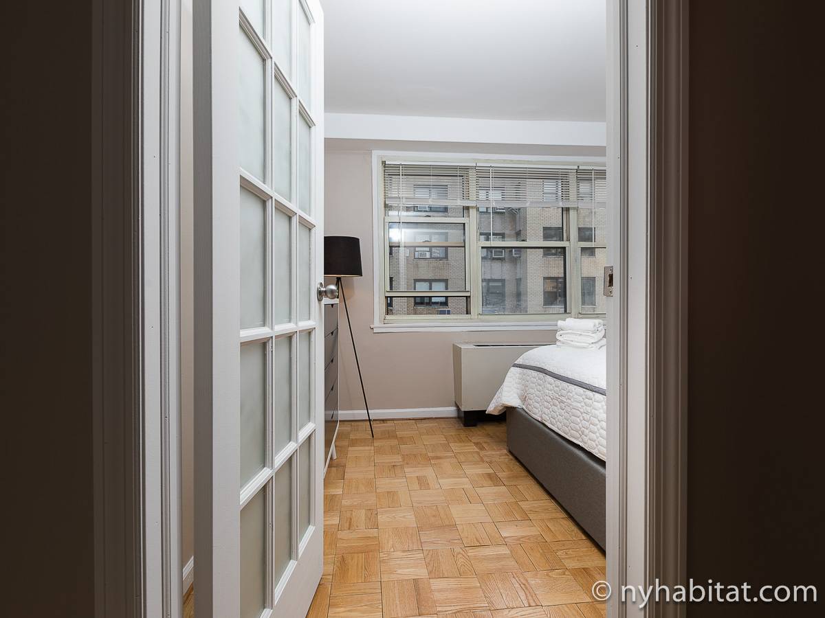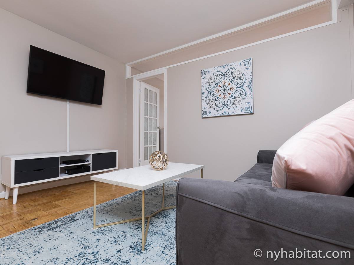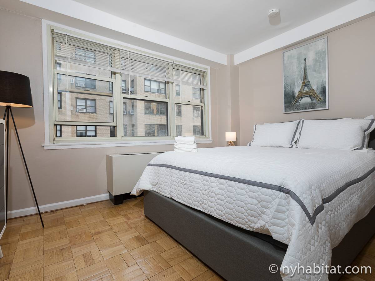 Diese 2-Zimmer-Wohnung befindet sich in der Upper East Side, nicht weit von Museen, Geschäften in der Madison Avenue und vielen Restaurants. Die Mietwohnung ist mit einem Hartholzboden und einer Klimaanlage ausgestattet. Das Wohnzimmer ist mit einem Sofa, das auch als Schlafsofa genutzt werden kann, Couchtisch auf einem Teppich und Flachbildfernseher ausgestattet. Essen Sie etwas am Esstisch mit zwei Stühlen. Die Küche ist mit Holzschränken und Elektrogeräten aus Edelstahl wie ein Kühlschrank, Gasherd und eine Spülmaschine ausgestattet. Das Schlafzimmer befindet sich hinter einer Glastür, wo Sie ein Queensize-Bett, Nachttische und eine Kommode für Stauraum finden. Bettwäsche und Handtücher werden gestellt. Das Badezimmer verfügt über eine Duschbadewanne, Toilette, ein Waschbecken und einen Spiegel.