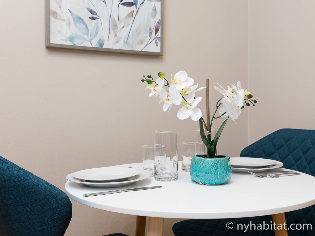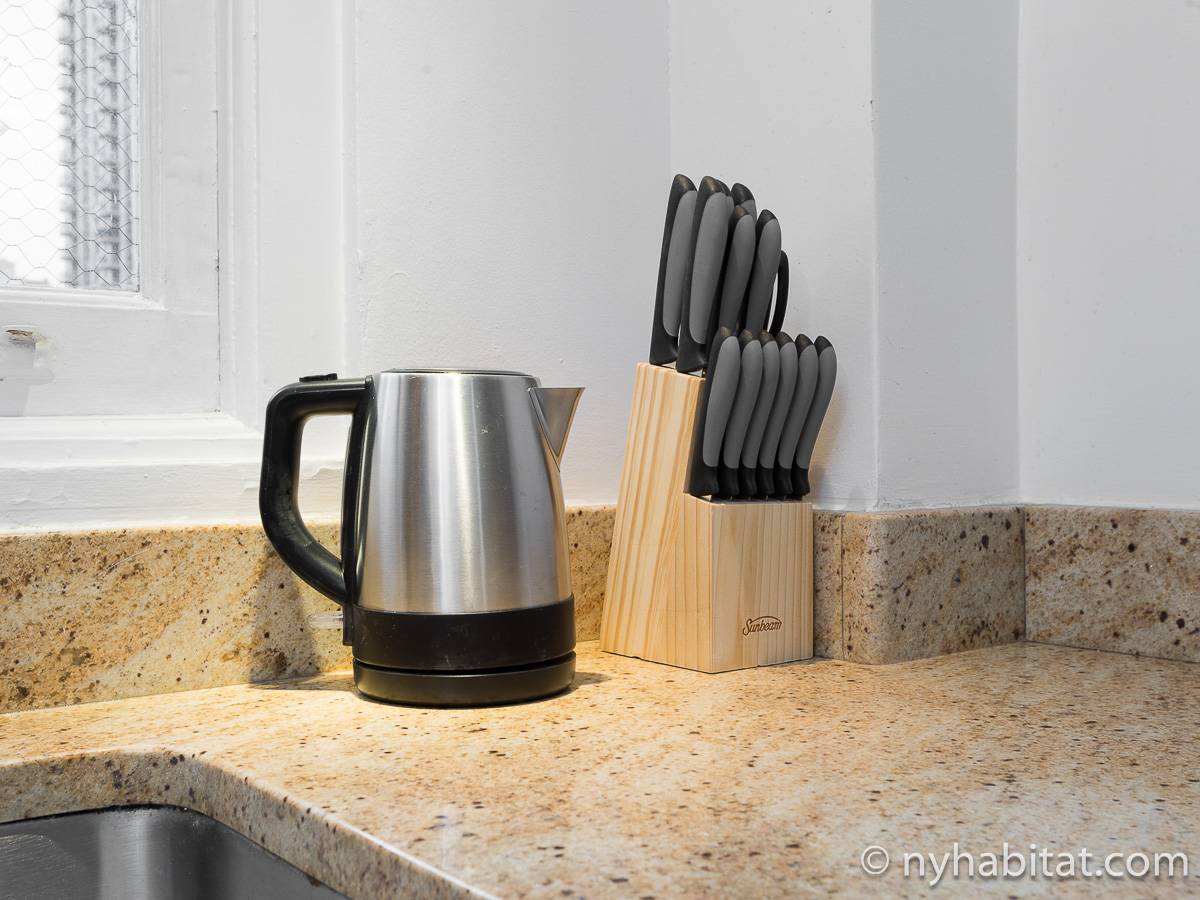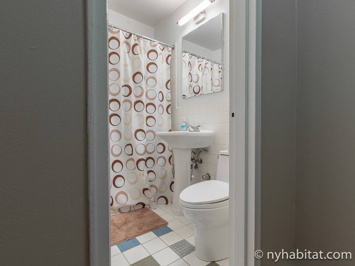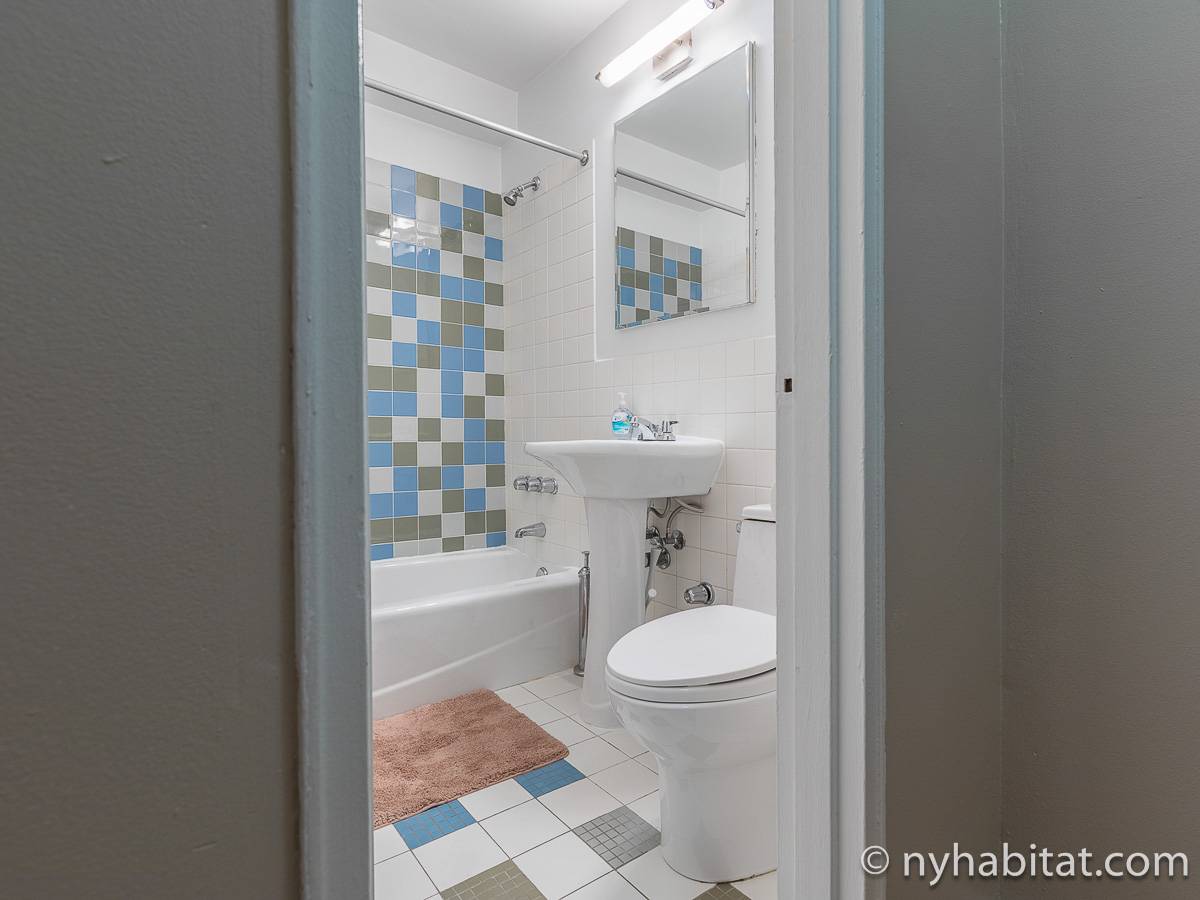 Diese 2-Zimmer-Wohnung befindet sich in der Upper East Side, nicht weit von Museen, Geschäften in der Madison Avenue und vielen Restaurants. Die Mietwohnung ist mit einem Hartholzboden und einer Klimaanlage ausgestattet. Das Wohnzimmer ist mit einem Sofa, das auch als Schlafsofa genutzt werden kann, Couchtisch auf einem Teppich und Flachbildfernseher ausgestattet. Essen Sie etwas am Esstisch mit zwei Stühlen. Die Küche ist mit Holzschränken und Elektrogeräten aus Edelstahl wie ein Kühlschrank, Gasherd und eine Spülmaschine ausgestattet. Das Schlafzimmer befindet sich hinter einer Glastür, wo Sie ein Queensize-Bett, Nachttische und eine Kommode für Stauraum finden. Bettwäsche und Handtücher werden gestellt. Das Badezimmer verfügt über eine Duschbadewanne, Toilette, ein Waschbecken und einen Spiegel.