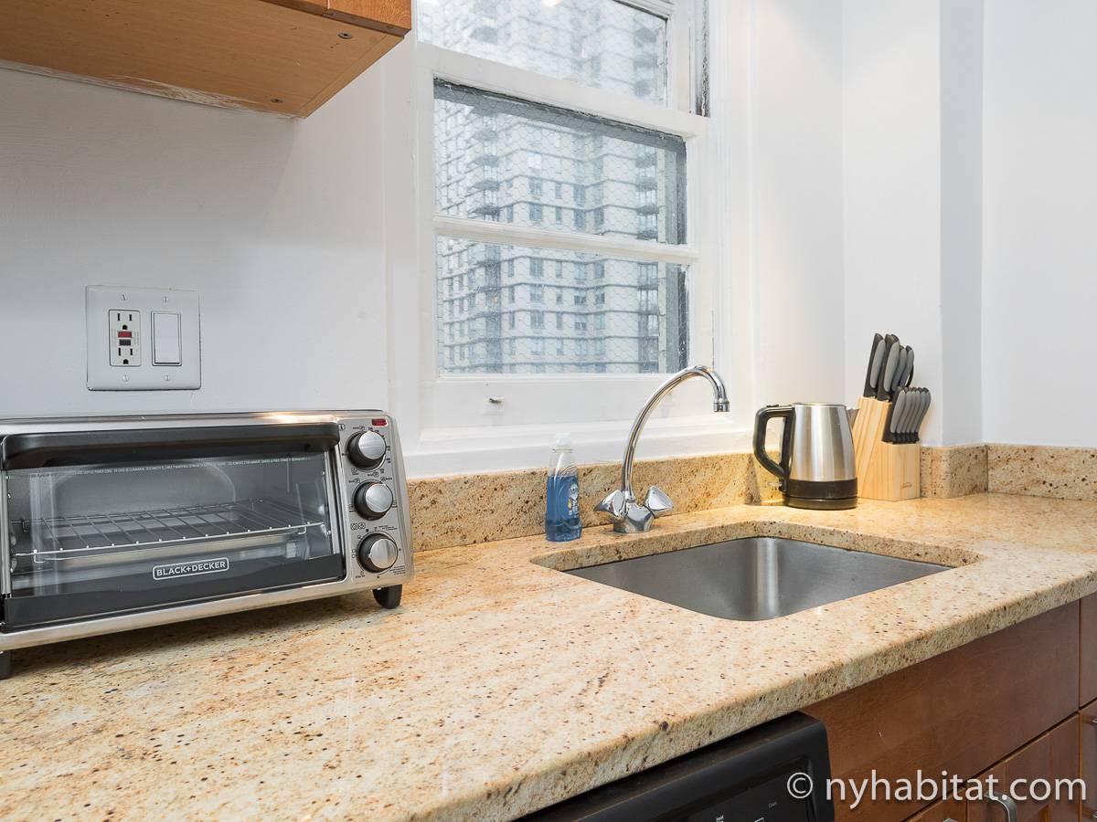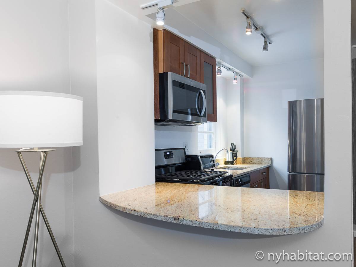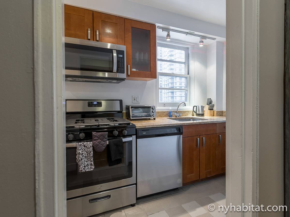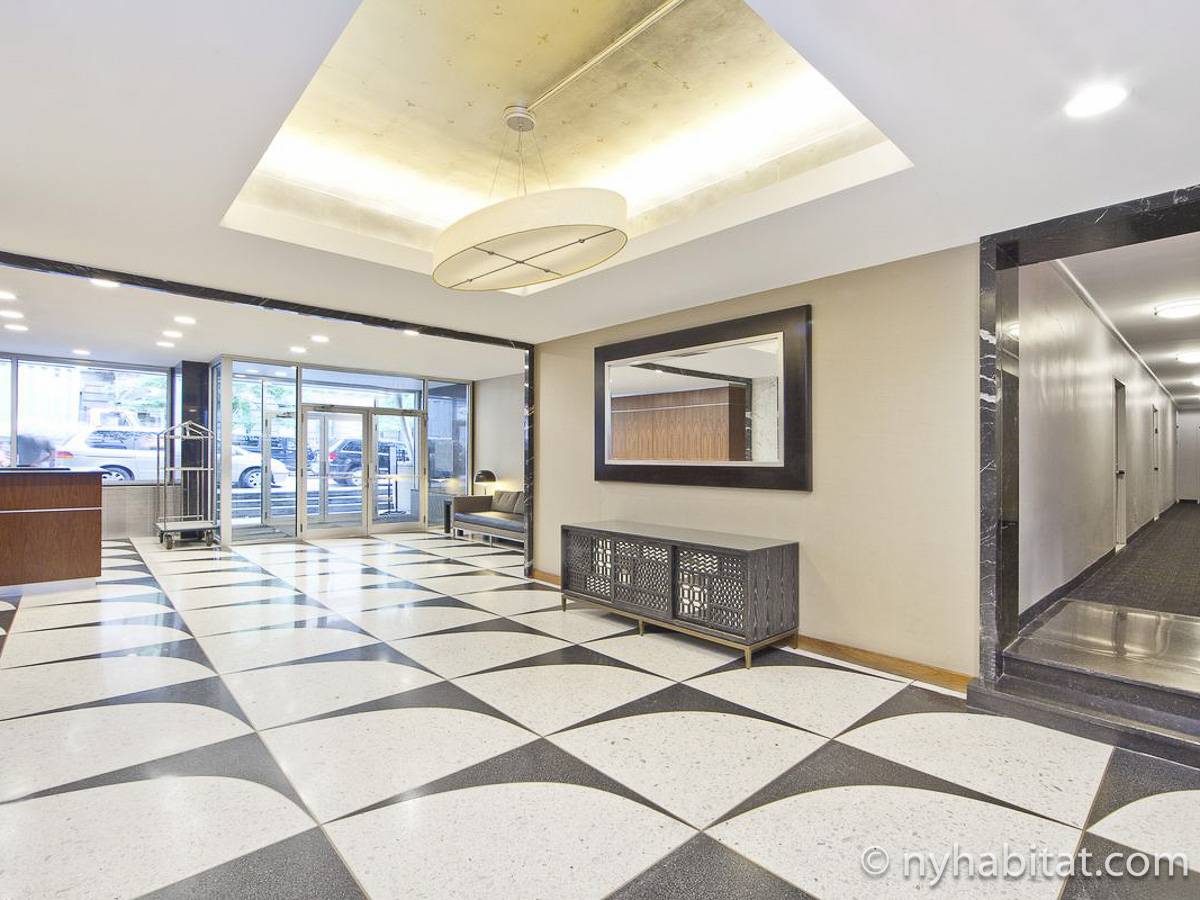 Leben Sie in der Upper East Side im Stadtbezirk Manhattan in dieser möblierten 2-Zimmer-Wohnung. Die möblierte Wohnung befindet sich im 10. Stock (entspricht in Europa dem 9. Stock) in einem Gebäude mit Aufzug, Portier und Möglichkeiten zum Waschen von Kleidung. Das Gebäude liegt nahe der East 80th Street und 1st Avenue in der Nähe des East Rivers und nur einen Spaziergang vom Central Park entfernt.