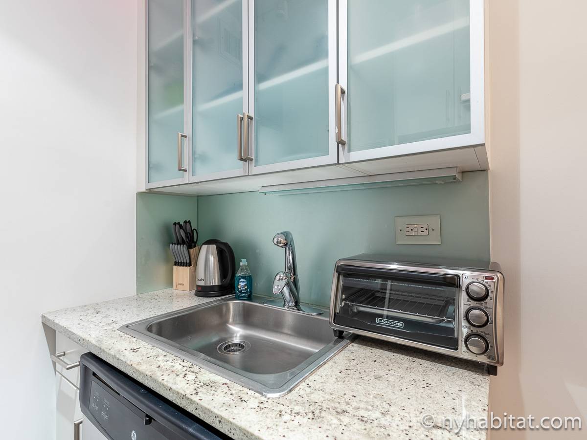 Leben Sie an der Park Avenue in dieser Studiowohnung in einem Hochhaus mit Aufzug und Portier im 6. Stock (entspricht in Europa dem 5. Stock). Die Wohnung liegt in der Nähe der 36th Street und Park Avenue im Stadtviertel Murray Hill in Manhattans Midtown East. Das Hochhaus bietet besondere Leistungen wie ein Fitnessstudio und Möglichkeiten zum Waschen von Kleidung. Zudem sind Haustiere erlaubt.