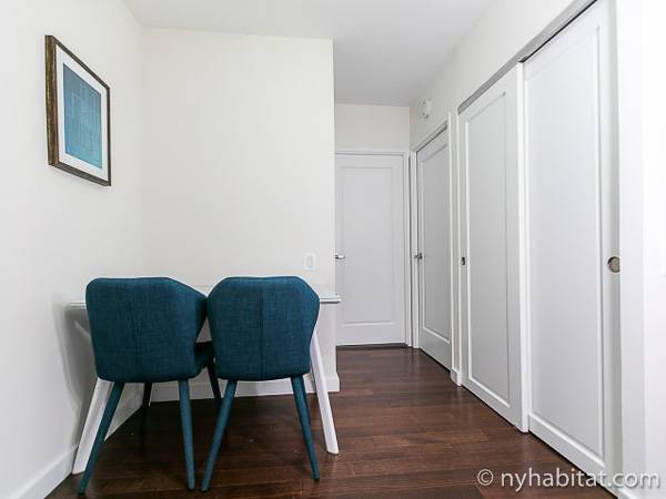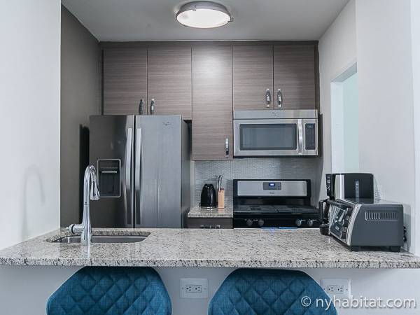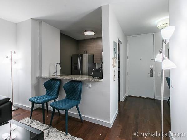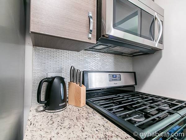 Wohnen Sie in dieser 3-Zimmer-Wohnung im Stadtviertel Murray Hill im 26. Stock (entspricht in Europa dem 25. Stock) mit Blick auf die Stadt. Das Gebäude, in dem sich die möblierte Wohnung befindet, bietet Möglichkeiten zum Waschen von Kleidung, ein Fitnessstudio, Kinderspielzimmer, eine Lounge und WLAN. Zudem sind Haustiere erlaubt.