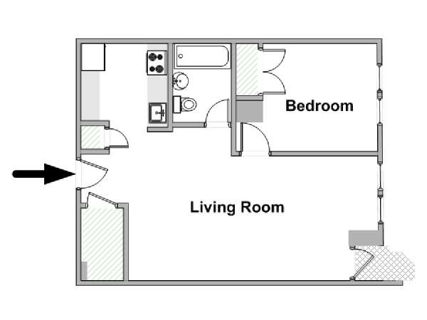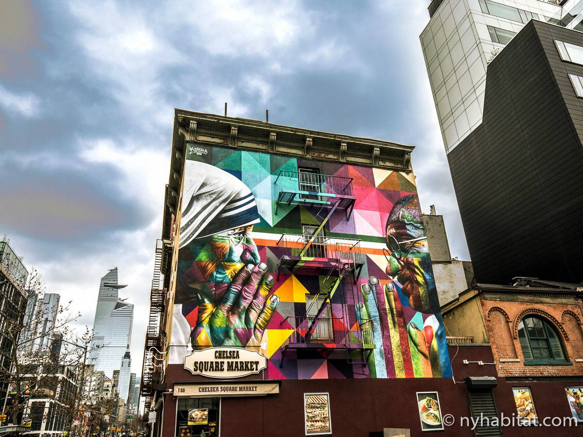 Erleben Sie Manhattans Viertel Chelsea, indem Sie diese möblierte 2-Zimmer-Wohnung mieten. Die Wohnung befindet sich in der West 15th Street zwischen 6th und 7th Avenue und liegt in der Nähe von vielen Sehenswürdigkeiten und Attraktionen in New York.