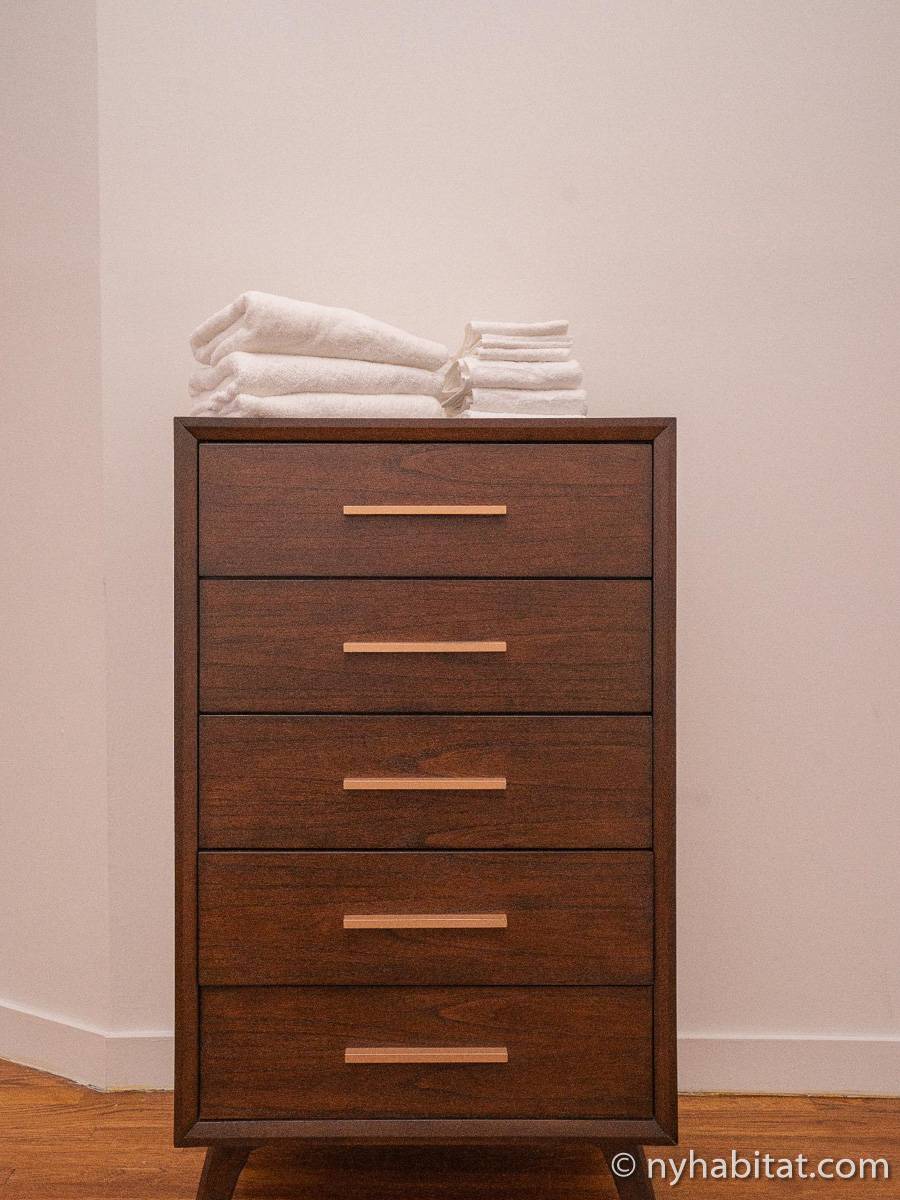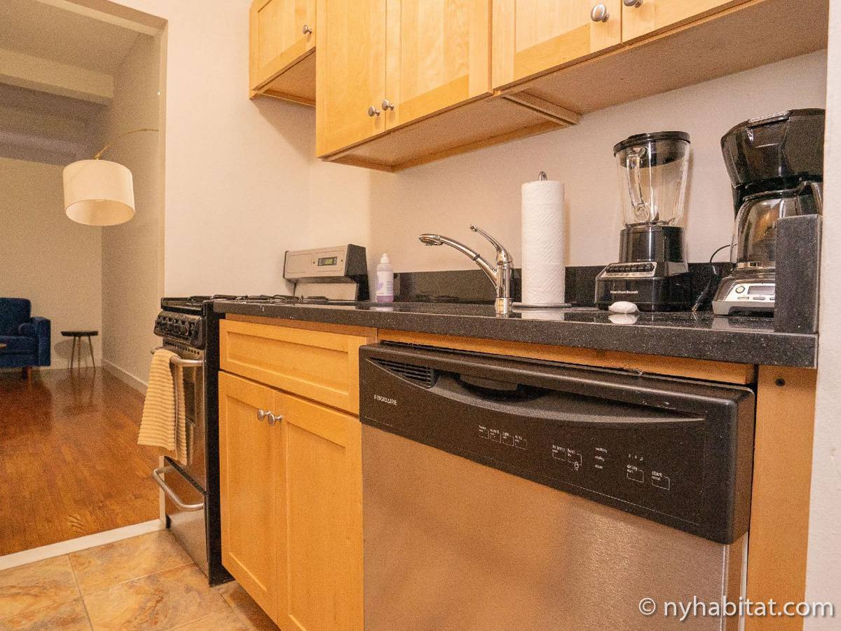 New York ist New York, da hier alles praktischer ist. Die New Yorker lieben Bequemlichkeit, und das kann alles sein. Das Einkaufen von Lebensmitteln oder Kleidung, der Supermarkt an der Ecke des Wohnblocks, das Rufen eines Taxis, sobald Sie aus der Tür treten, oder eine U-Bahnstation, die nur wenige Schritte entfernt ist – alles in New York ist praktisch. Auch diese Wohnung ist praktisch. An der Ecke East 31st Street und Madison Avenue gelegen, bietet diese 2-Zimmer-Wohnung alles, was Sie benötigen, ganz in Ihrer Nähe. Von den 13 Stockwerken befindet sich diese Wohnung im 5. Stock (entspricht in Europa dem 4. Stock). Beim Betreten der Mietwohnung werden Sie mit einem Hauch von Minimalismus begrüßt. Das Wohnzimmer ist modern eingerichtet, mit einem Sofa, einem Esstisch und einem Fernseher mit Kabelanschluss. In der Küche gibt es einen Kühlschrank, eine Kaffeemaschine, einen Geschirrspüler und einen Herd mit Backofen. Auch im Schlafzimmer setzt sich der Minimalismus fort, mit einem Doppelbett, Bettwäsche, Fenstern und einer Klimaanlage. Das Badezimmer ist mit einer Duschbadewanne, Handtüchern, einem WC und einem Waschbecken mit Unterschrank für Pflegeprodukte ausgestattet. Mit Ausnahme der Küche sind alle Räume mit Hartholzböden ausgelegt. Das Wohnhaus verfügt außerdem über eine Waschmaschine und einen Trockner im Keller sowie über einen Aufzug.