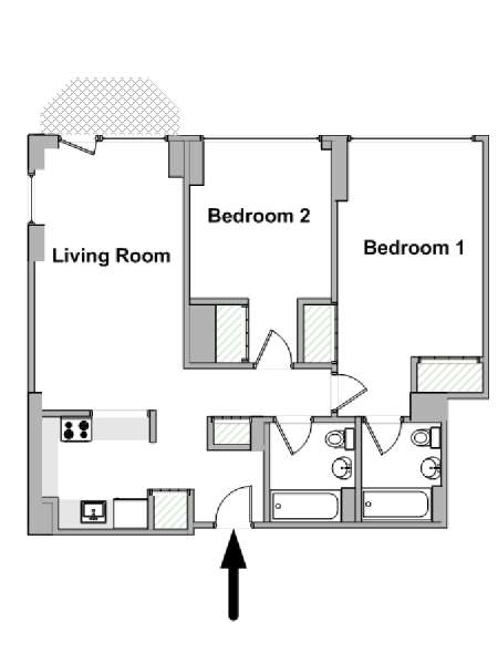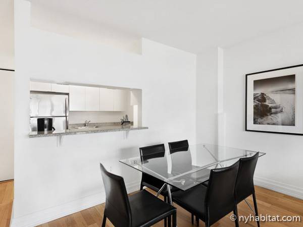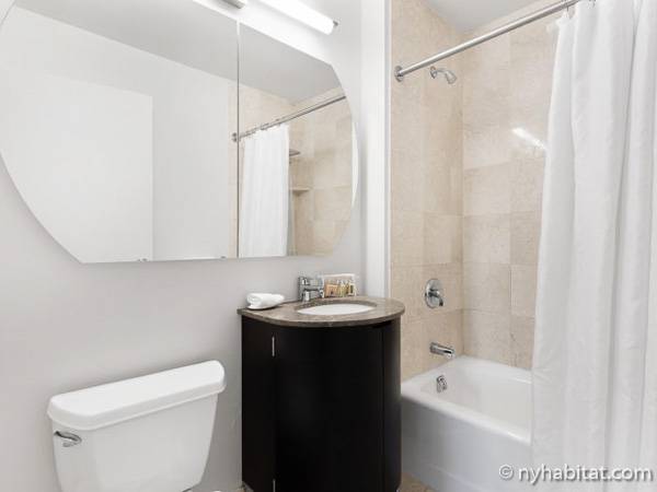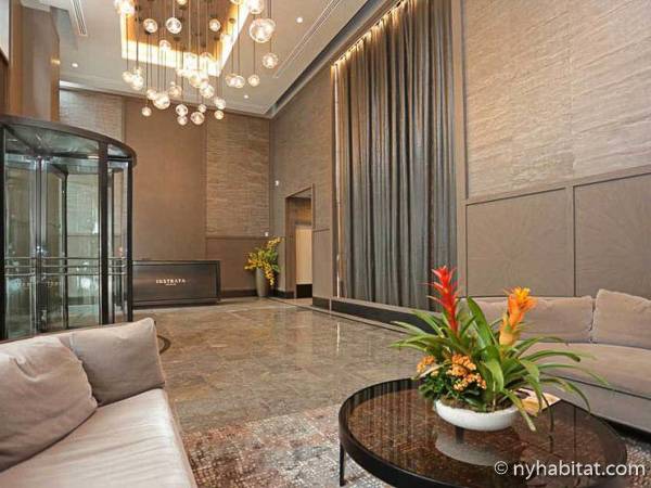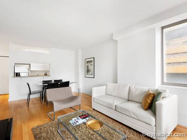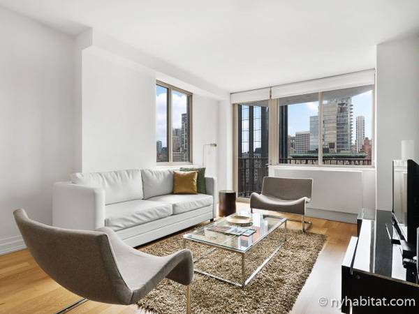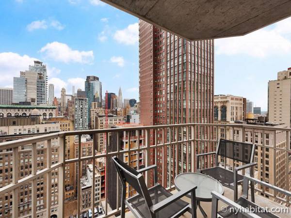 Diese modern eingerichtete möblierte 3-Zimmer-Wohnung liegt an der East 29th Street & 5th Avenue in Midtown East Manhattan in New York! Sie verfügt über einen offenen Wohnraum mit Blick über die Stadt sowie einen privaten Balkon! Das Hochhaus mit insgesamt 50 Etagen (entspricht in Europa 49 Etagen) bietet ein Fitnessstudio, Waschmöglichkeiten und einen Aufzug sowie einen 24-Stunden-Sicherheitsdienst.