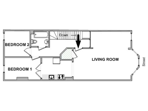 Diese möblierte 3-Zimmer-Wohnung befindet sich im 3. Stock (entspricht in Europa dem 2. Stock) eines historischen Brownstones im Stadtviertel Crown Heights im New Yorker Stadtbezirk Brooklyn. Die möblierte Wohnung liegt in der Nähe der Straßen Saint Francis Place sowie Saint Johns Place und verfügt über ein Sicherheitssystem.