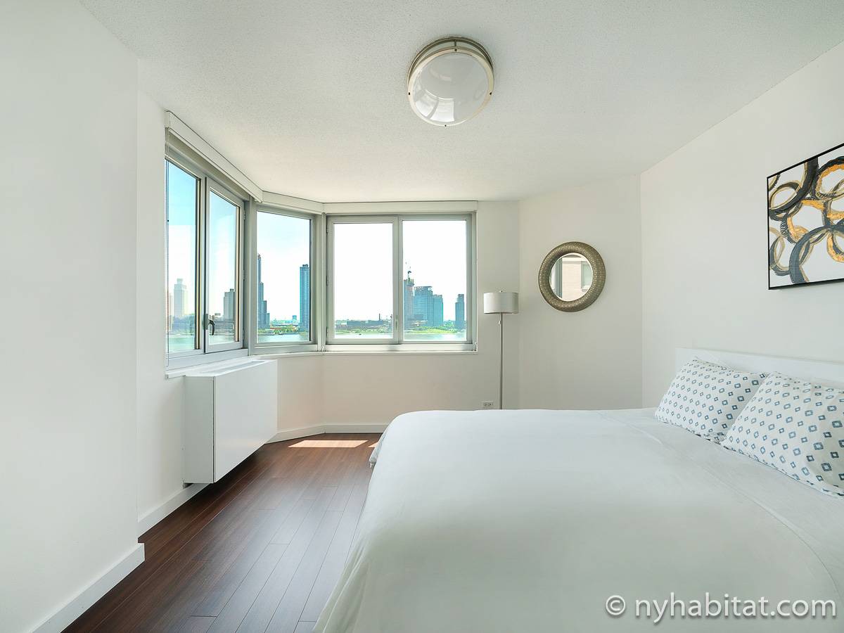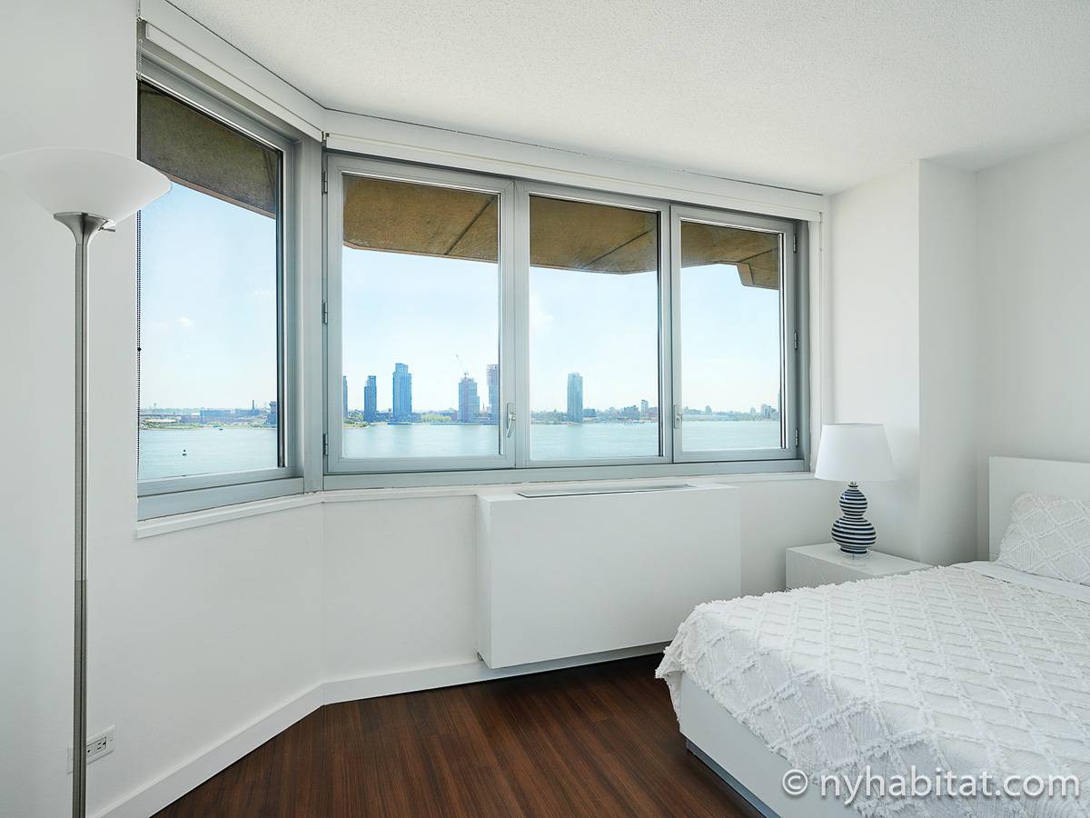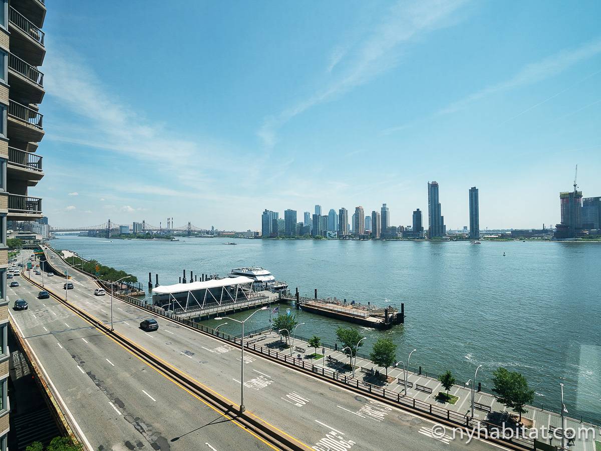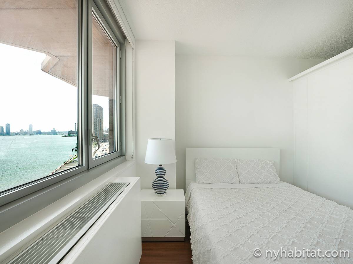 Die Ausstattung der Mietwohnung ist schlicht, aber gleichzeitig elegant und modern, gekoppelt mit Fußböden aus Hartholz. Zusätzlich wird Ihnen ausgehend von zwei der Schlafzimmer eine herrliche Aussicht aufs Wasser geboten. Die Wohnung besteht aus einem Wohnzimmer, einer separaten Küche, drei Schlafzimmern* und zwei Bädern. Im Wohnzimmer werden Sie ein Sofa, einen niedrigen Wohnzimmertisch, einen Fernseher und eine Klimaanlage vorfinden. Die Küche ist von der Wohnstube getrennt und weist mehrere Theken und Schränke mit Holzveredelung auf. Des Weiteren gibt es mehrere Haushaltsgeräte aus rostfreiem Edelstahl, darunter einen Backofen, Kühlschrank mit Tiefkühlfach, eine Mikrowelle, Kaffeemaschine und eine Geschirrspülmaschine. Das erste von den drei Schlafzimmern ist mit einem Kingbett und einem Fernseher eingerichtet. Die anderen beiden Schlafzimmer verfügen über ein Queenbett beziehungsweise über ein Doppelbett und beide bieten Ihnen eine eindrucksvolle Aussicht auf den East River. Die beiden Bäder haben je eine Dusche und eine Badewanne.