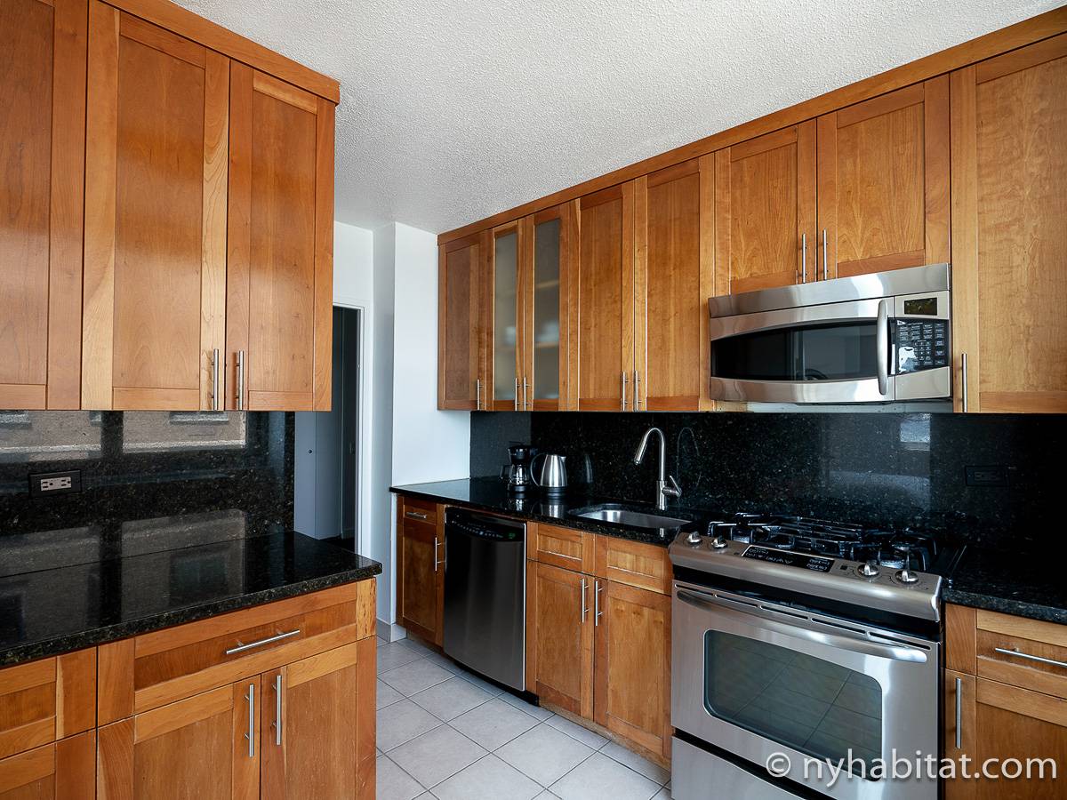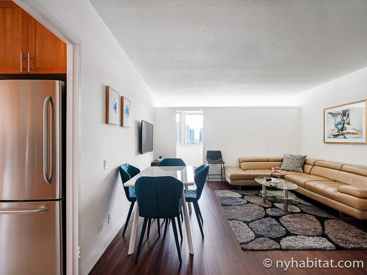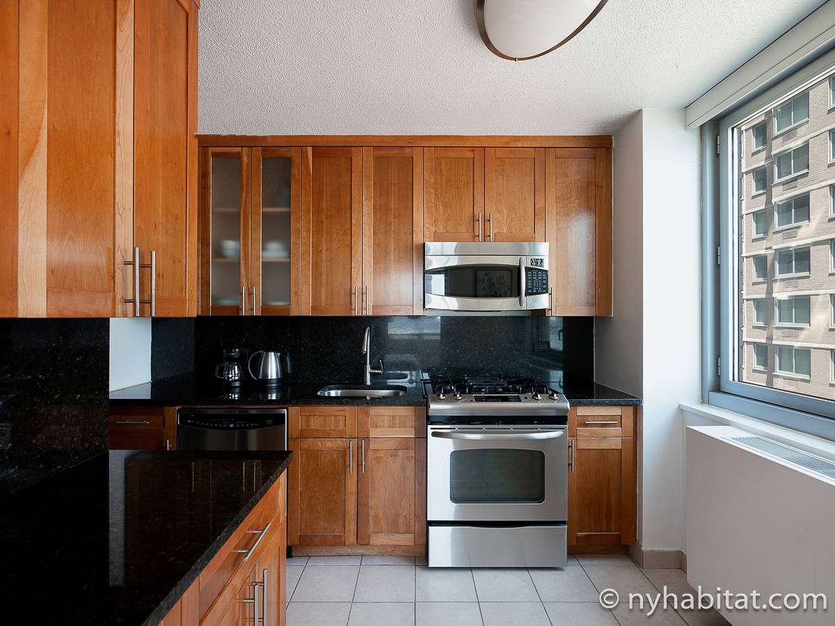 Werfen Sie einen Blick in diese möblierte New Yorker Vierzimmerwohnung mit zwei Badezimmern, die sich im Viertel Murray Hill in Manhattan befindet. Die Wohnung ist Teil eines Hochhauses, das zwischen East 34th Street und FDR Drive steht und Ihnen einen großartigen Blick auf den East River gewährt. Das Gebäude weist ein Fitnessstudio auf, daneben die Möglichkeit, Ihre Wäsche zu waschen; es gibt einen Kinderspielplatz, eine Dachterrasse und einen Aufzug. Auch ein Portier ist angestellt.