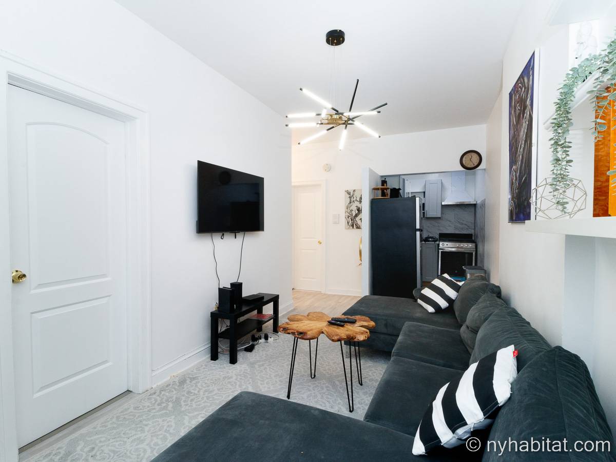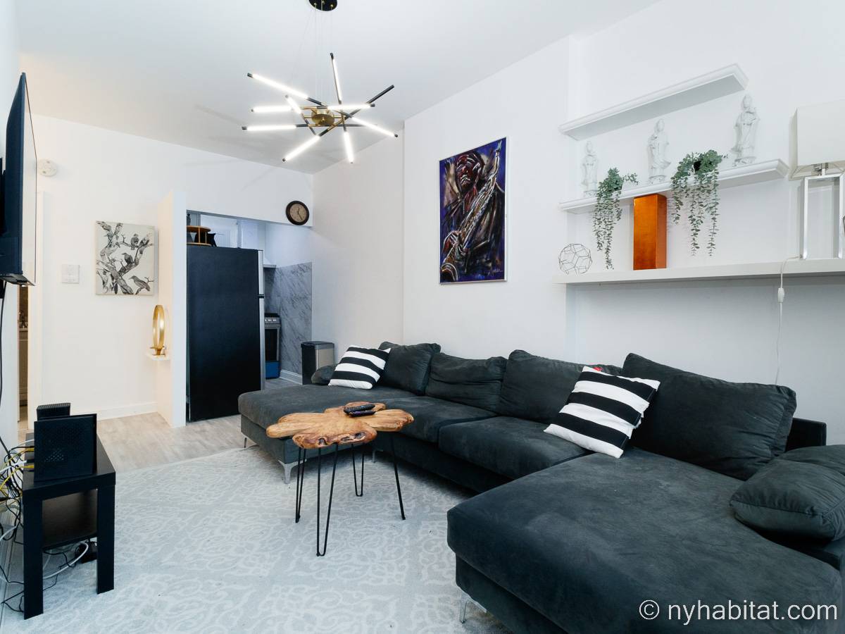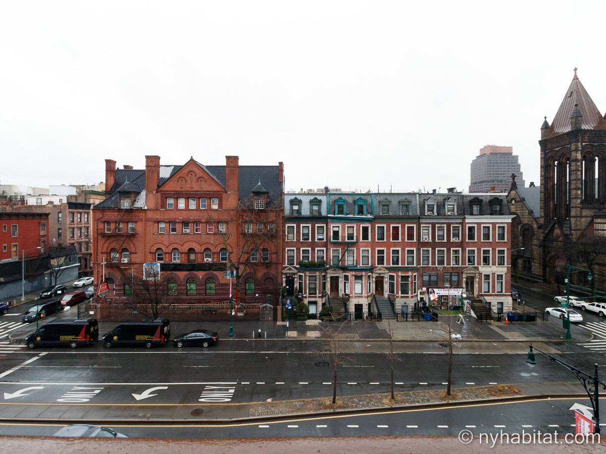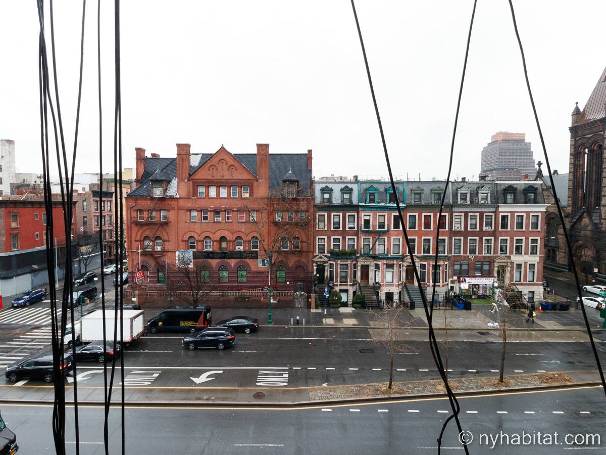 Diese 2-Zimmer-Wohnung in New York befindet sich an der Ecke Lenox Avenue und 123rd Street im Zentrum von Harlem, einem Stadtteil von Upper Manhattan. Die Wohnung liegt im 5. Stock (entspricht in Europa dem 4. Stock) und befindet sich in einem Gebäude mit einem Sicherheitssystem und ohne Aufzug. Die ca. 46 qm große, möblierte Mietwohnung bietet sowohl vom Wohnzimmer als auch vom Schlafzimmer aus einen Blick auf die Straße.
