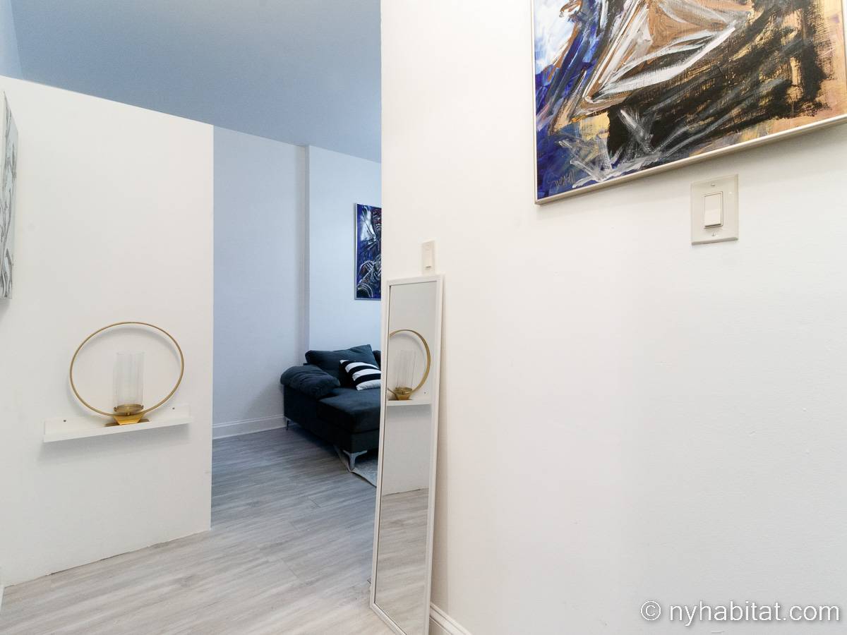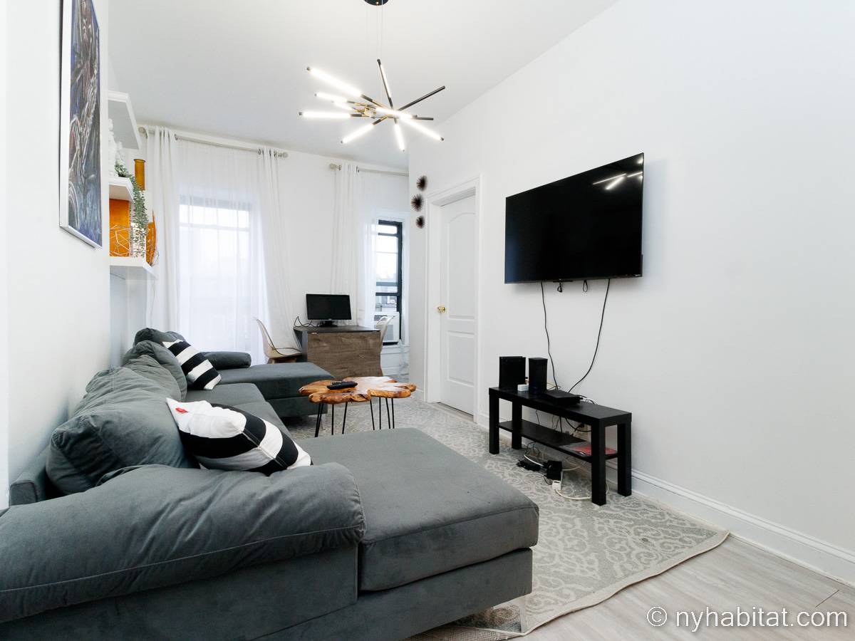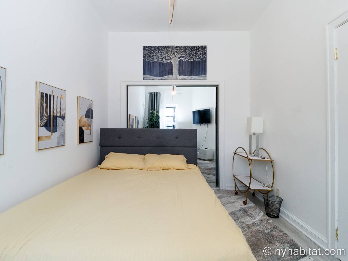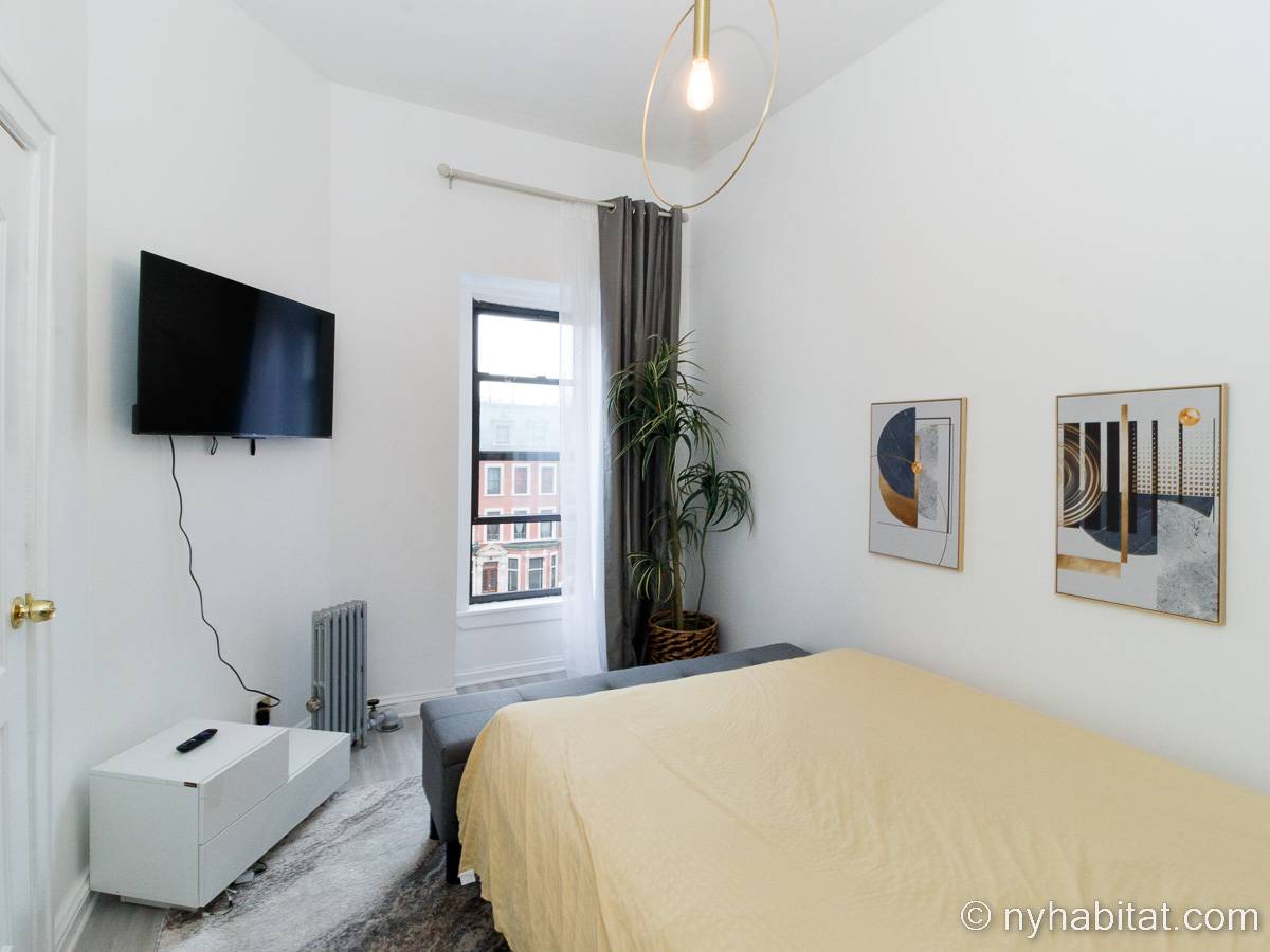 Diese 2-Zimmer-Wohnung in New York befindet sich an der Ecke Lenox Avenue und 123rd Street im Zentrum von Harlem, einem Stadtteil von Upper Manhattan. Die Wohnung liegt im 5. Stock (entspricht in Europa dem 4. Stock) und befindet sich in einem Gebäude mit einem Sicherheitssystem und ohne Aufzug. Die ca. 46 qm große, möblierte Mietwohnung bietet sowohl vom Wohnzimmer als auch vom Schlafzimmer aus einen Blick auf die Straße.