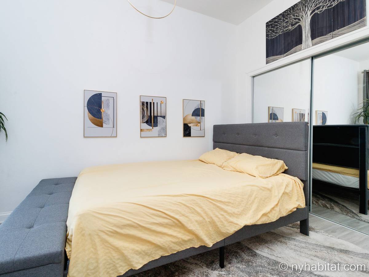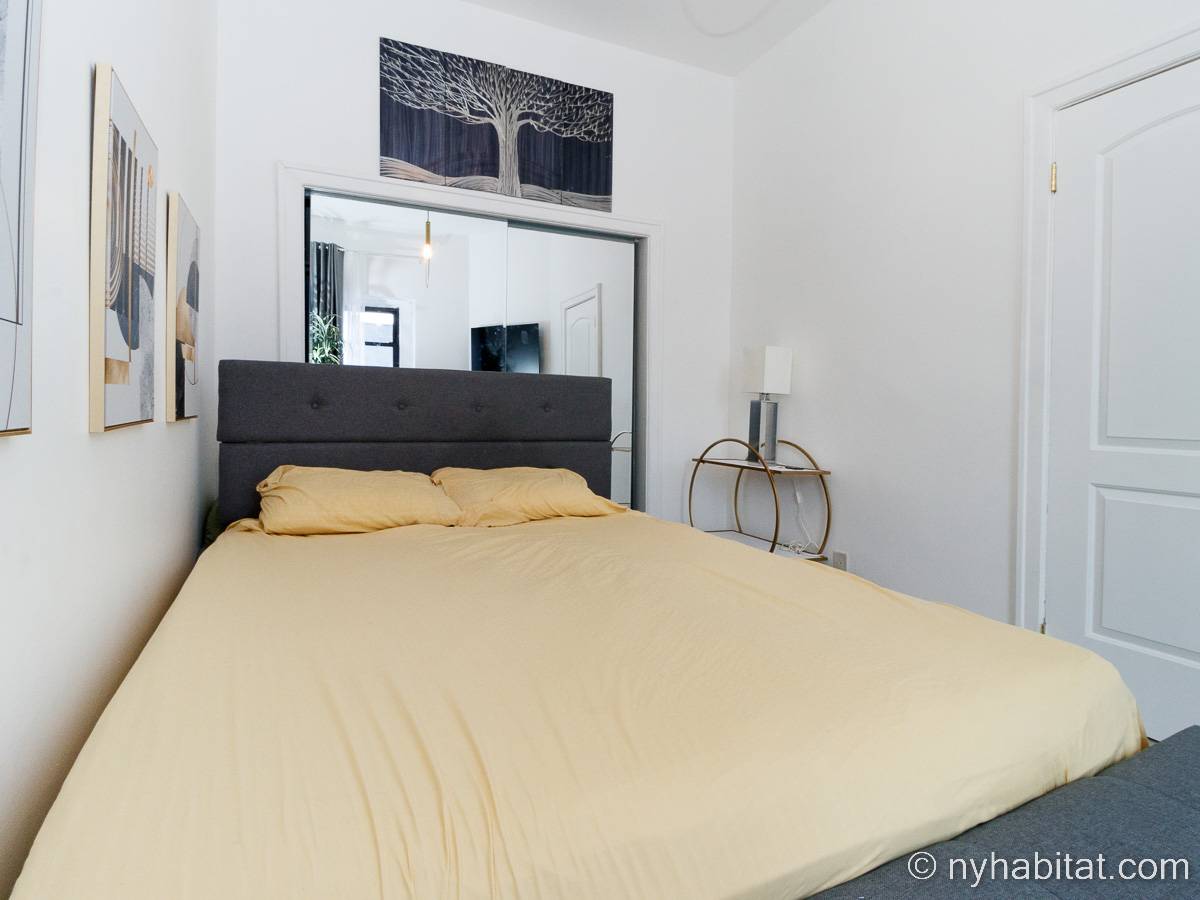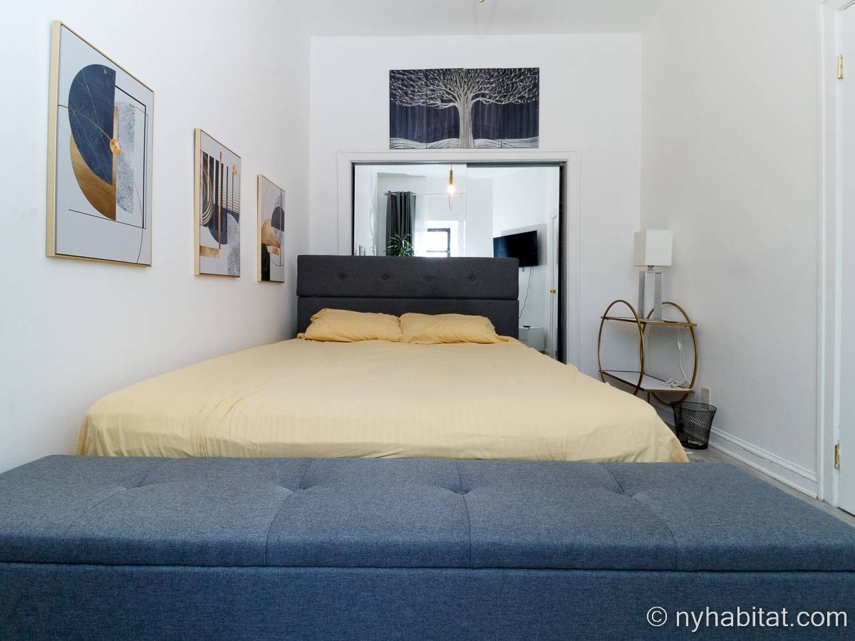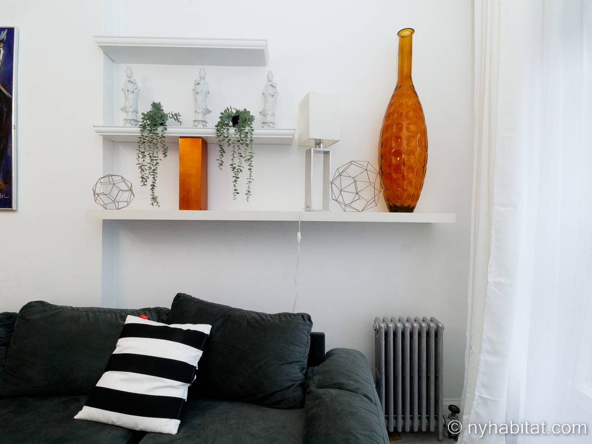 Diese 2-Zimmer-Wohnung in New York befindet sich an der Ecke Lenox Avenue und 123rd Street im Zentrum von Harlem, einem Stadtteil von Upper Manhattan. Die Wohnung liegt im 5. Stock (entspricht in Europa dem 4. Stock) und befindet sich in einem Gebäude mit einem Sicherheitssystem und ohne Aufzug. Die ca. 46 qm große, möblierte Mietwohnung bietet sowohl vom Wohnzimmer als auch vom Schlafzimmer aus einen Blick auf die Straße.