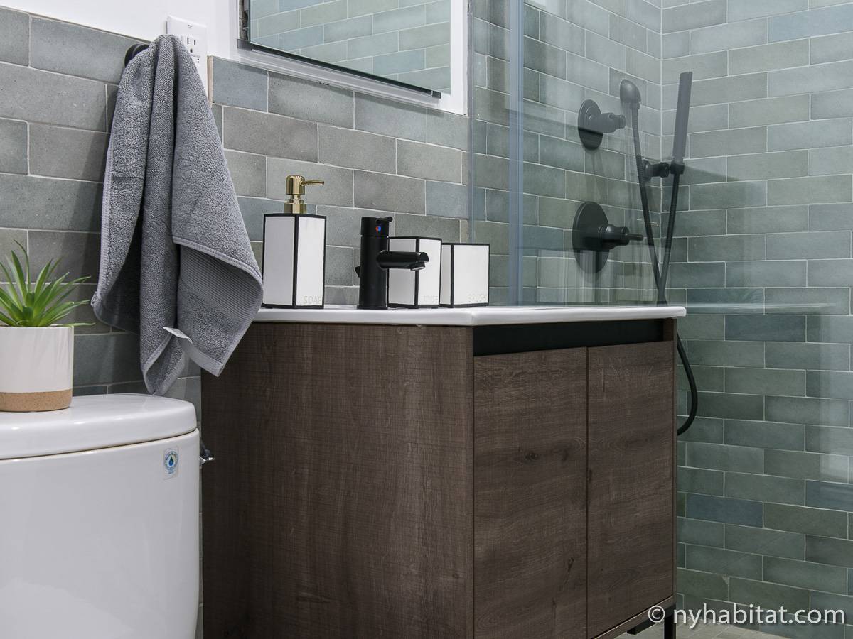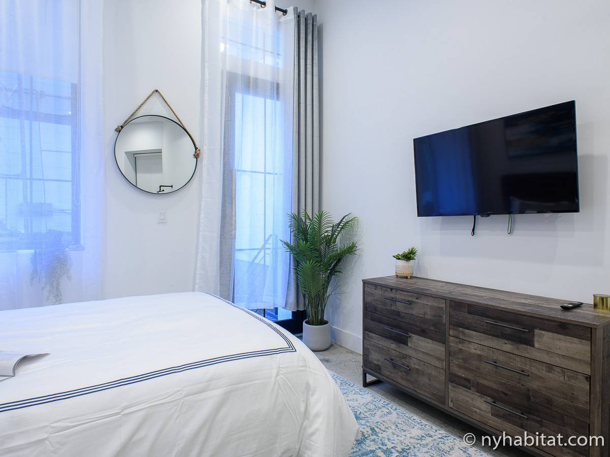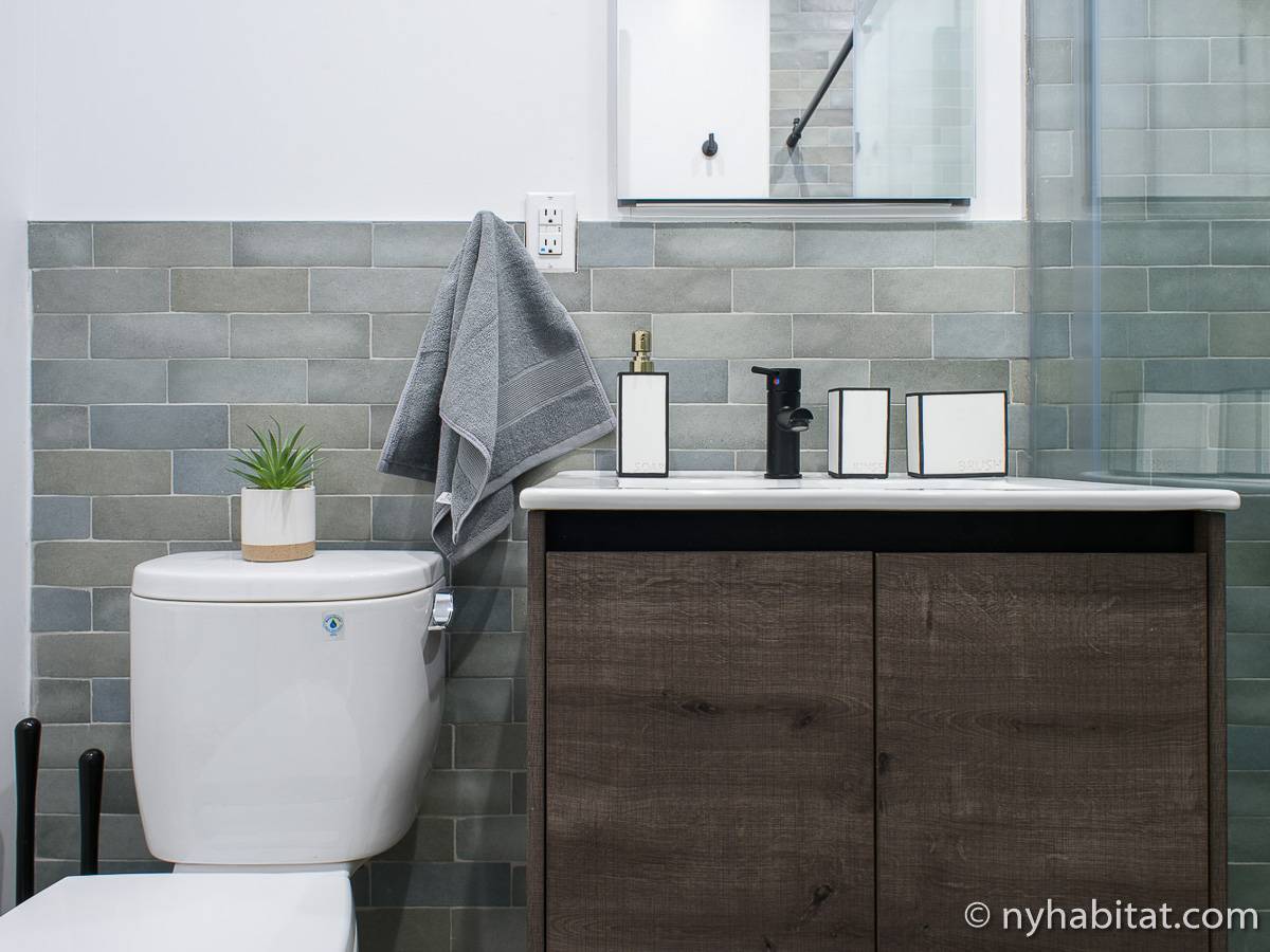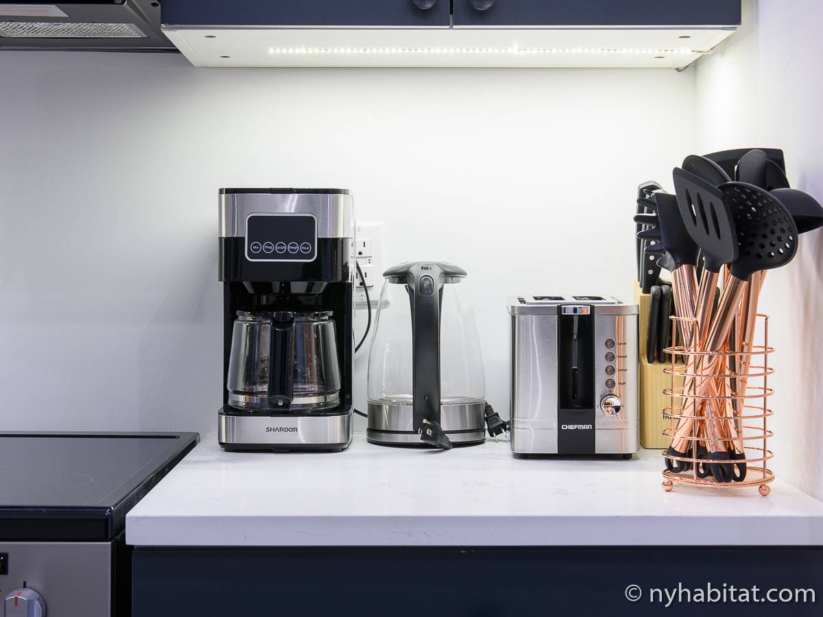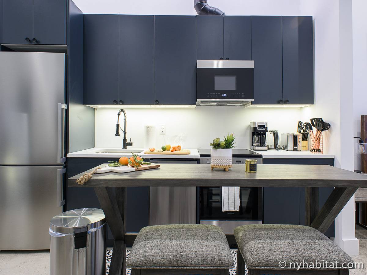 Erleben Sie das Leben in Downtown Manhattan in dieser Studiowohnung mit einer Fläche von rund 39 m2. Diese möblierte Mietwohnung befindet sich in einem Gebäude ohne Aufzug in der Nähe der Kreuzung East 3rd Street und 1st Avenue im East Village von New York City und verfügt über hohe Decken, Einbauleuchten und eine Terrasse.