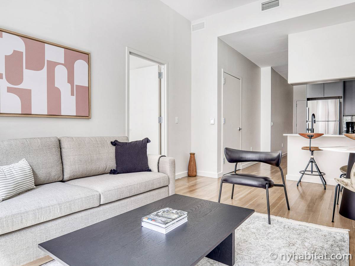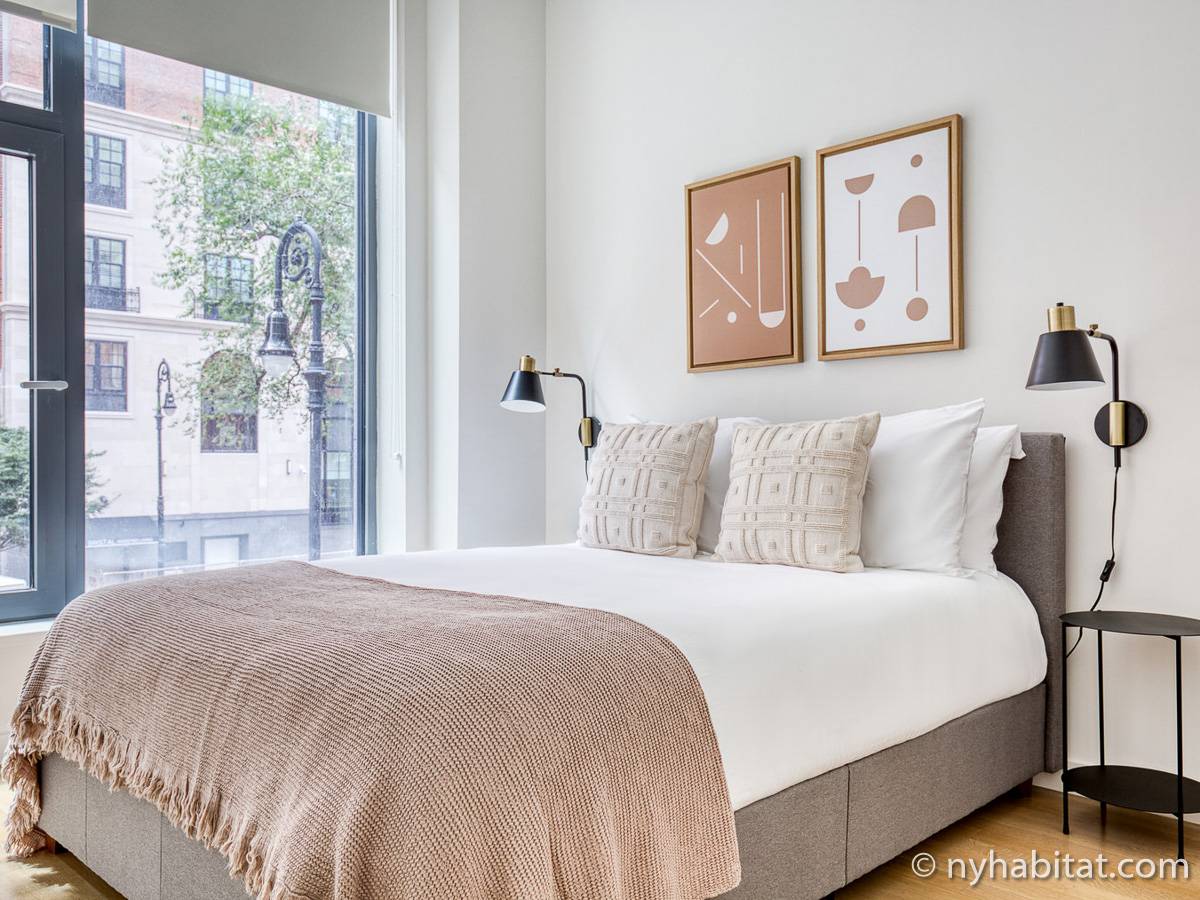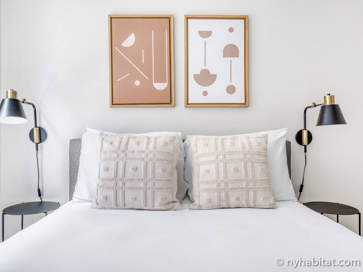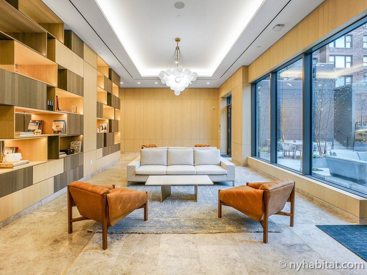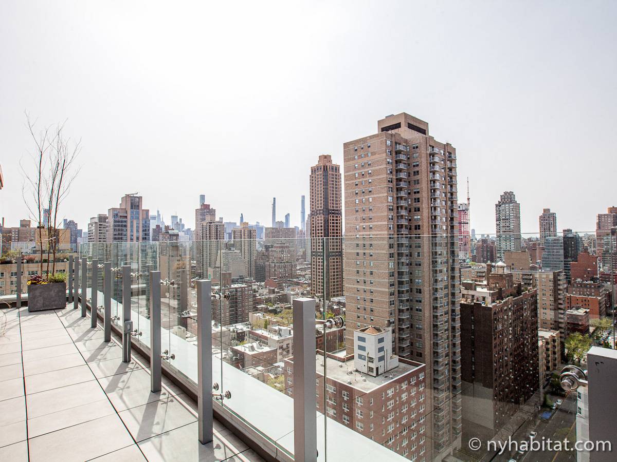 Die Wohnung ist 65 m² groß und liegt im 2. Stock (entspricht in Europa dem 1. Stock) eines Gebäudes mit Portier, das sich in der Nähe der Kreuzung East 86th Street und York Avenue befindet. Diese möblierte Mietwohnung ist mit einer Waschmaschine, einem Trockner, einer Klimaanlage und Parkettböden ausgestattet. Das Gebäude verfügt über ein Fitnessstudio, einen Aufzug und eine Dachterrasse.