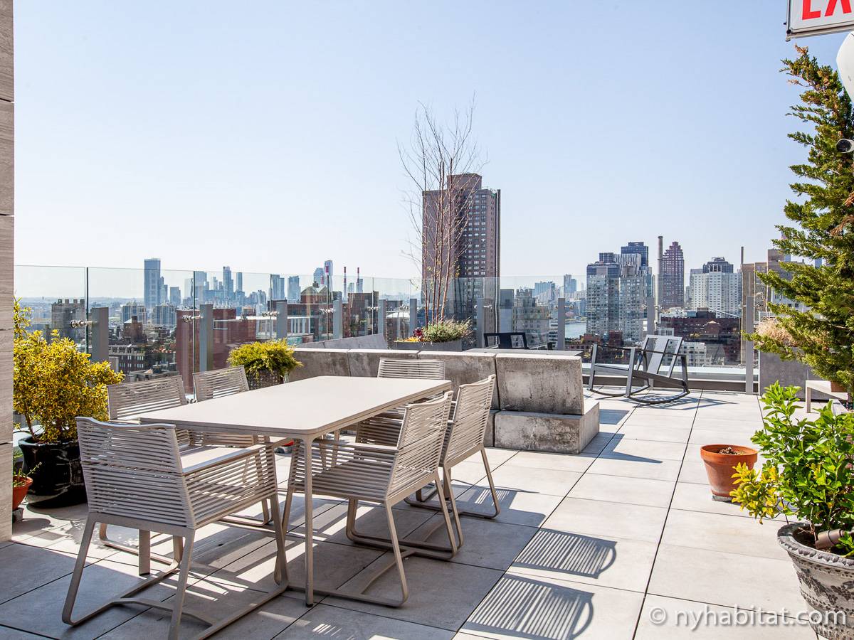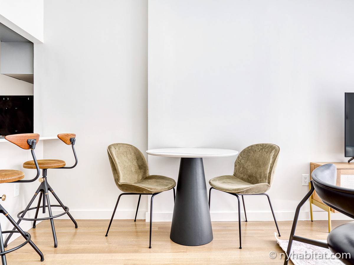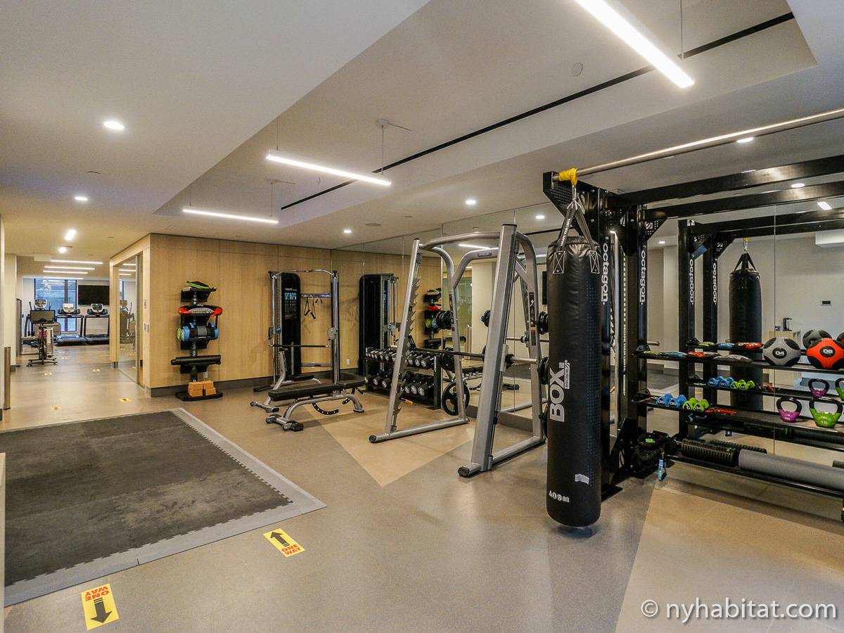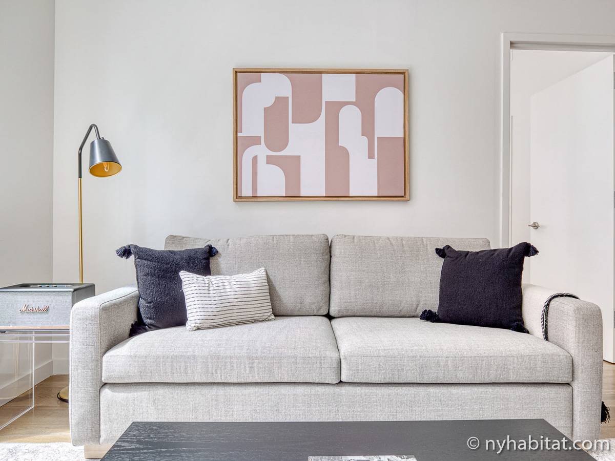 Die Wohnung ist 65 m² groß und liegt im 2. Stock (entspricht in Europa dem 1. Stock) eines Gebäudes mit Portier, das sich in der Nähe der Kreuzung East 86th Street und York Avenue befindet. Diese möblierte Mietwohnung ist mit einer Waschmaschine, einem Trockner, einer Klimaanlage und Parkettböden ausgestattet. Das Gebäude verfügt über ein Fitnessstudio, einen Aufzug und eine Dachterrasse.