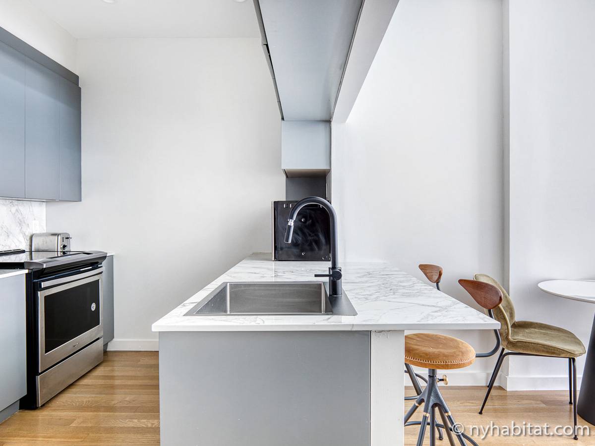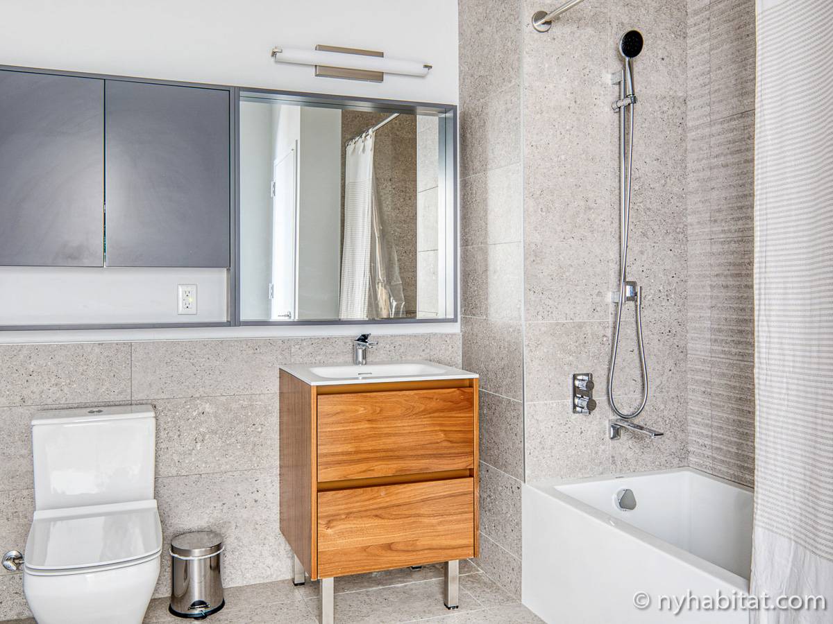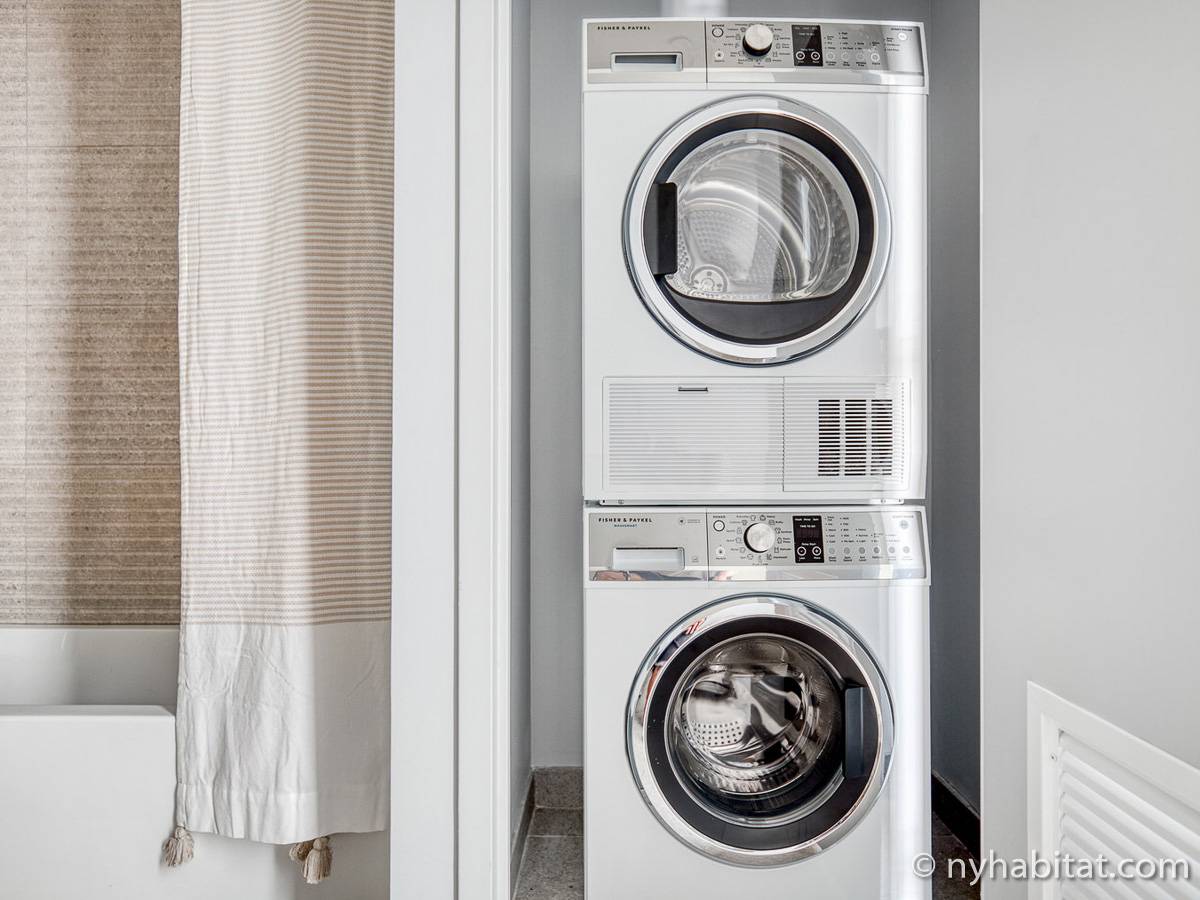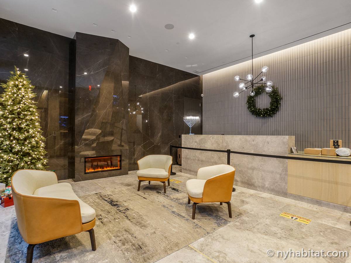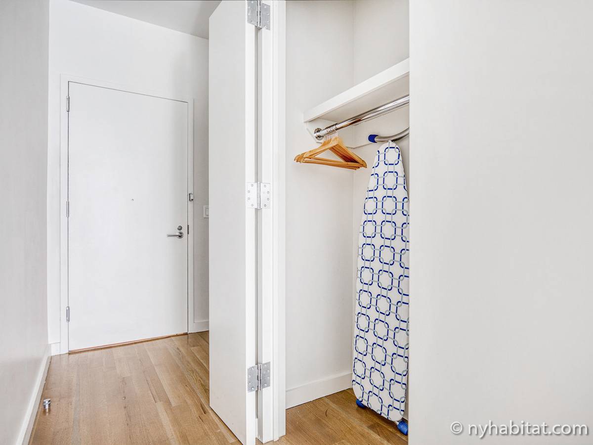 Die Wohnung ist 65 m² groß und liegt im 2. Stock (entspricht in Europa dem 1. Stock) eines Gebäudes mit Portier, das sich in der Nähe der Kreuzung East 86th Street und York Avenue befindet. Diese möblierte Mietwohnung ist mit einer Waschmaschine, einem Trockner, einer Klimaanlage und Parkettböden ausgestattet. Das Gebäude verfügt über ein Fitnessstudio, einen Aufzug und eine Dachterrasse.