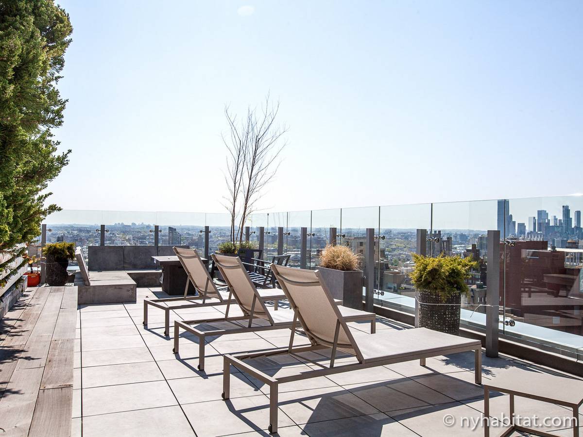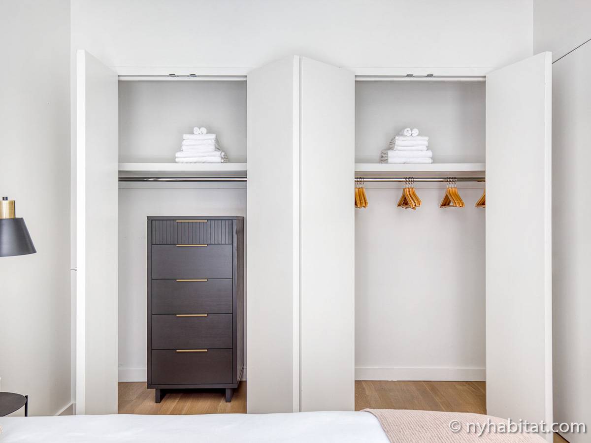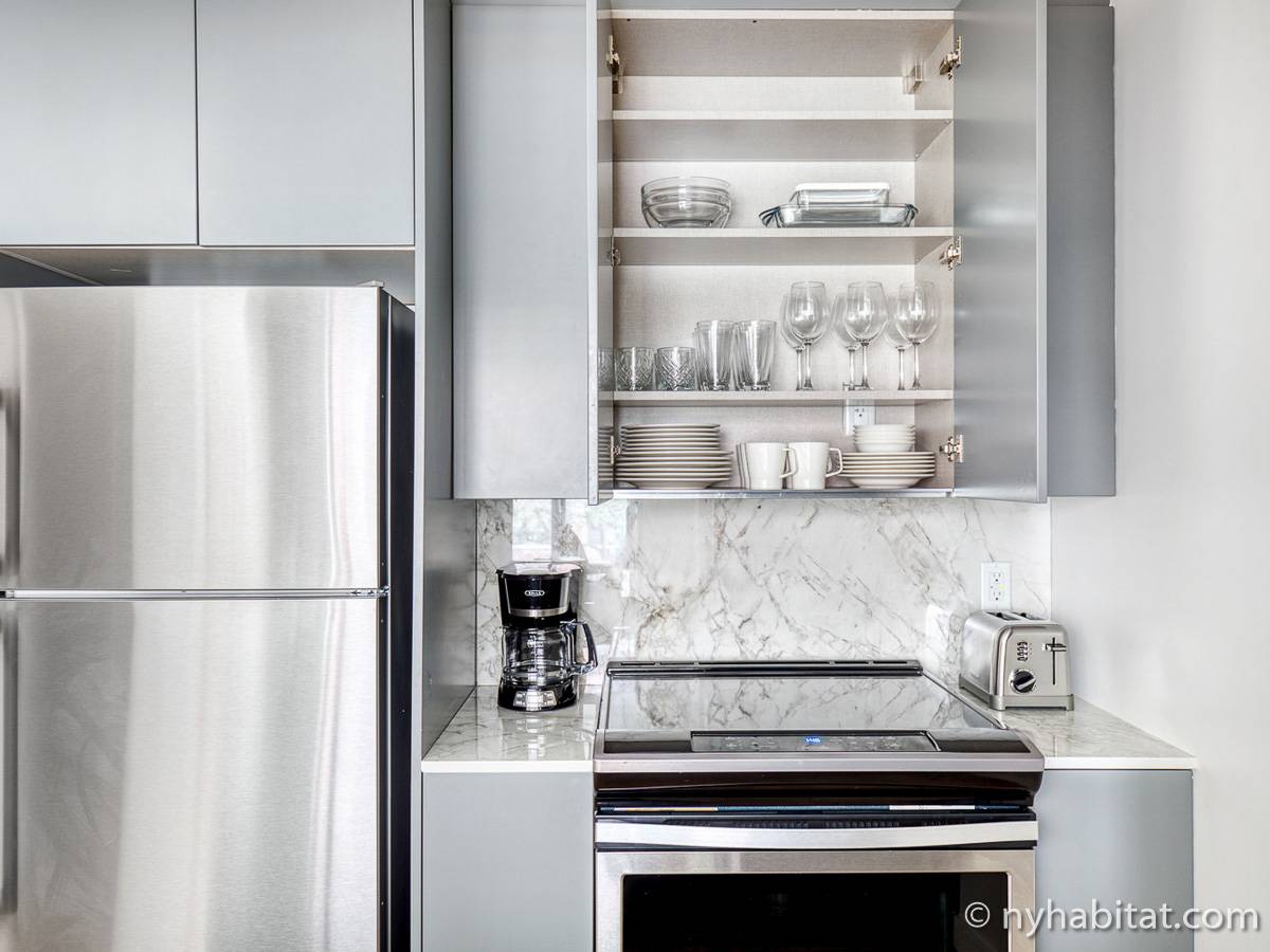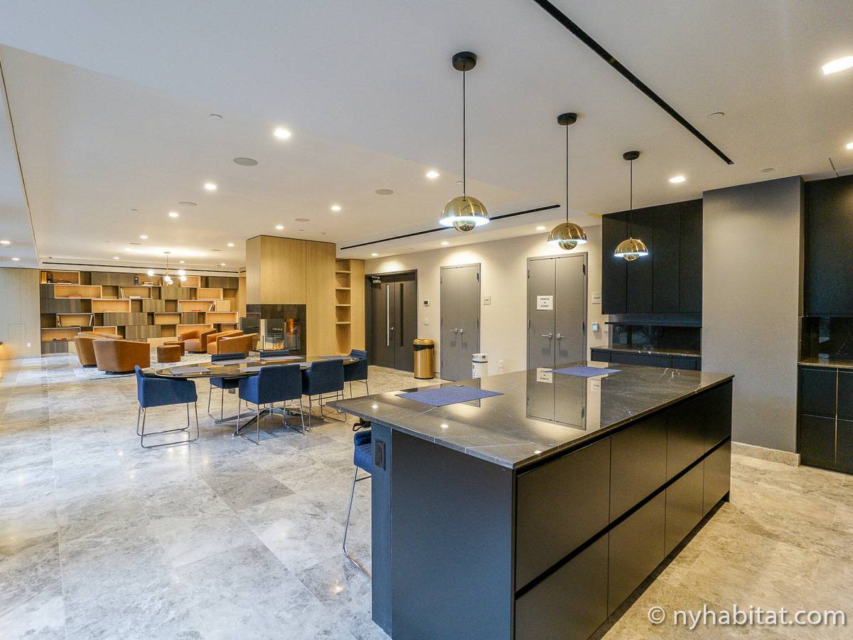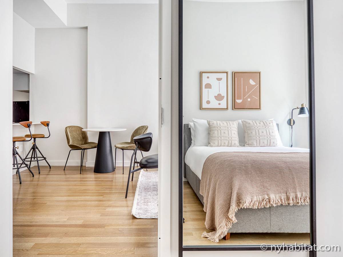 Die Wohnung ist 65 m² groß und liegt im 2. Stock (entspricht in Europa dem 1. Stock) eines Gebäudes mit Portier, das sich in der Nähe der Kreuzung East 86th Street und York Avenue befindet. Diese möblierte Mietwohnung ist mit einer Waschmaschine, einem Trockner, einer Klimaanlage und Parkettböden ausgestattet. Das Gebäude verfügt über ein Fitnessstudio, einen Aufzug und eine Dachterrasse.