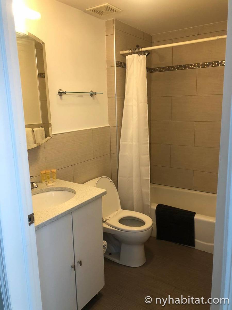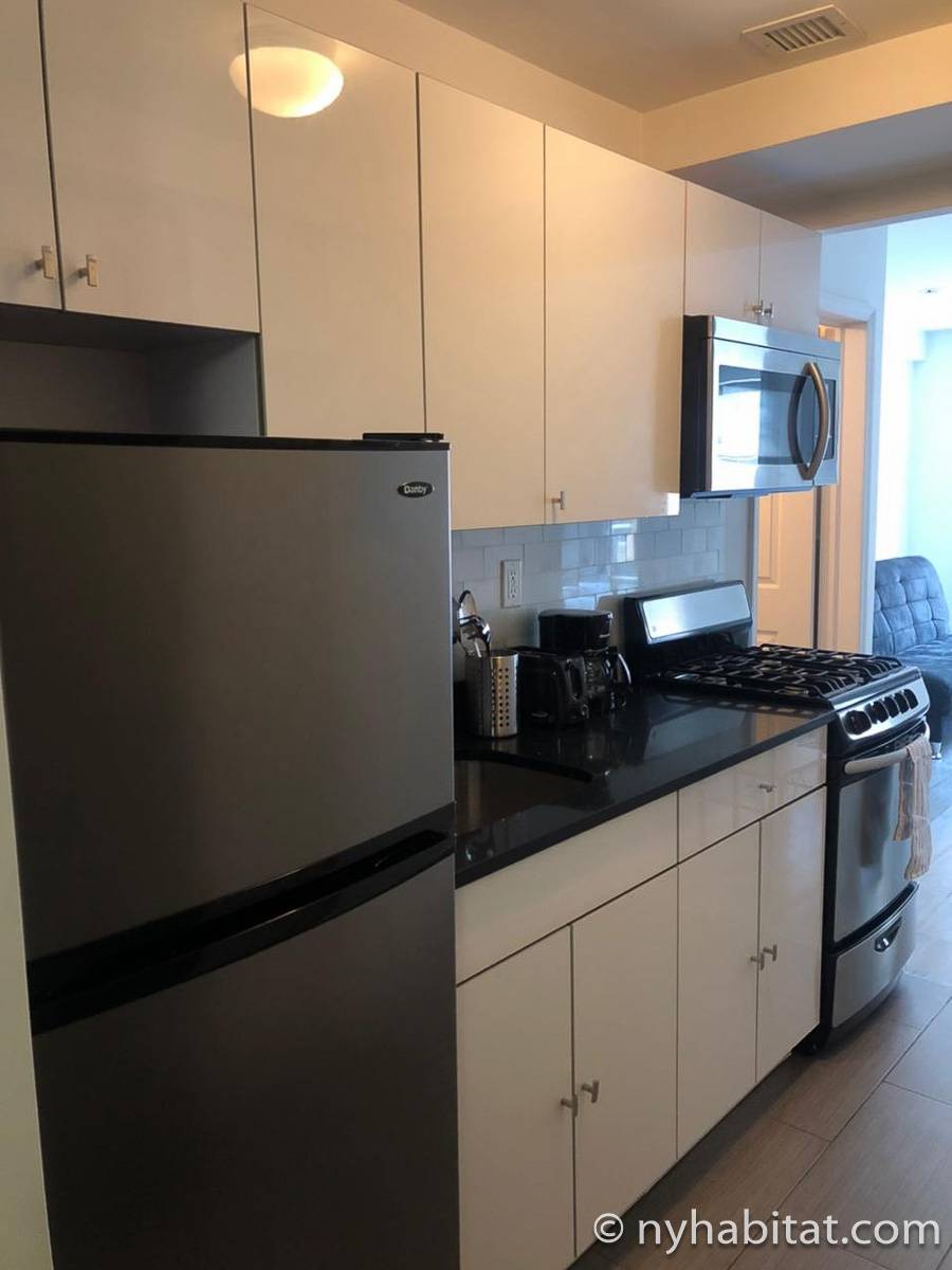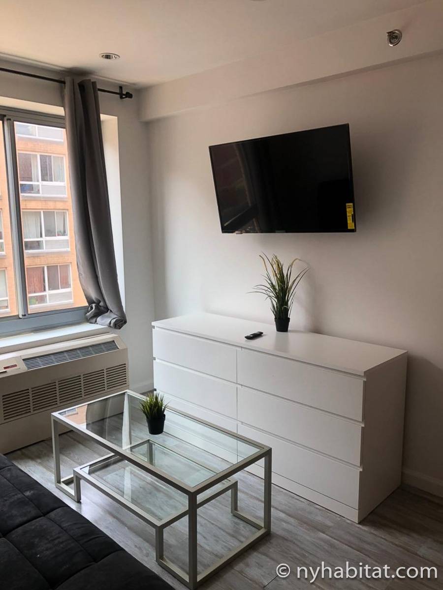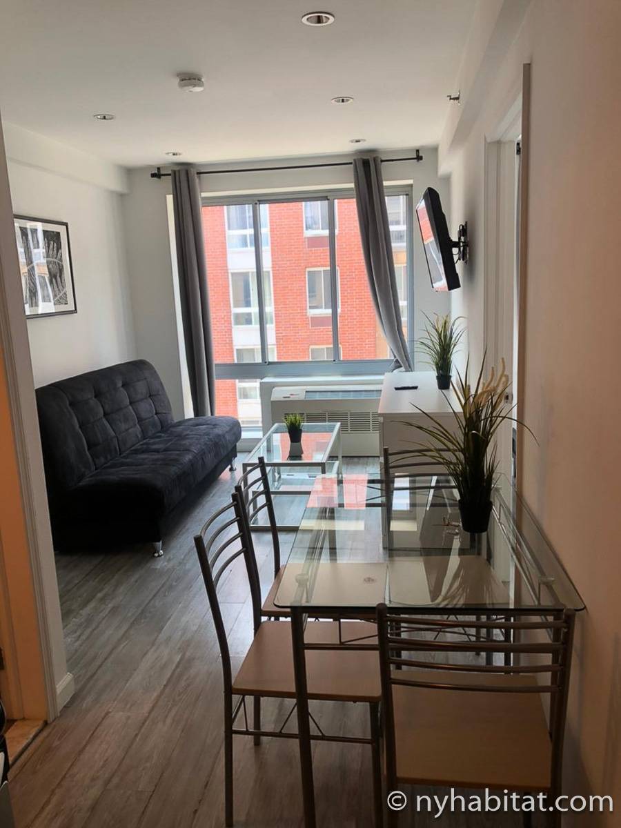 Werfen sie einen Blick auf diese moderne 2-Zimmerwohnung im Viertel Midtown West, Manhattan, New York.Diese möblierte Wohnung befindet sich nahe der Kreuzung West 48th Street und 10th Avenue und liegt im zweiten Stock (entspricht in Europa dem ersten Stock) eines Gebäudes, das über einen Aufzug und einen Wäscheraum verfügt.