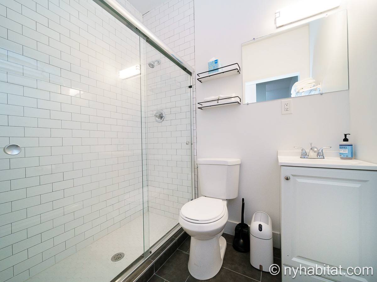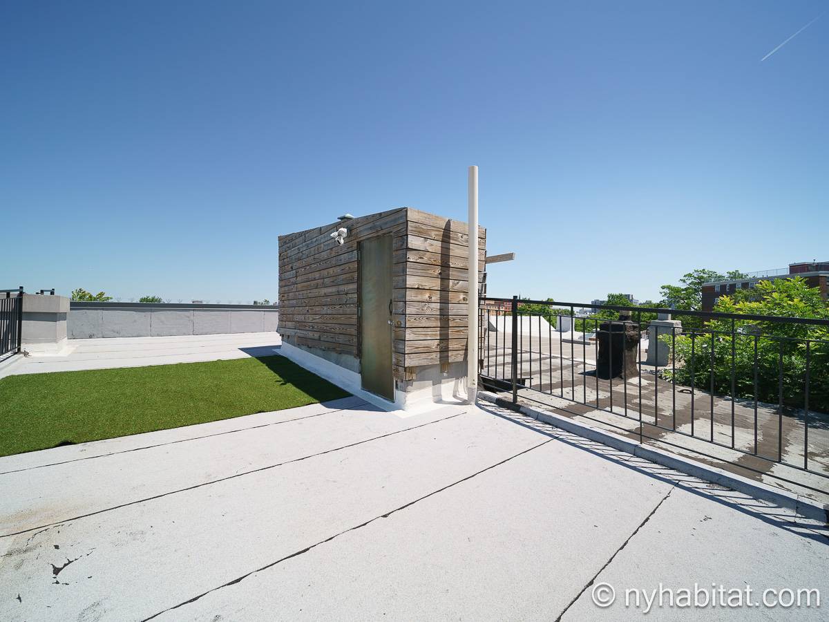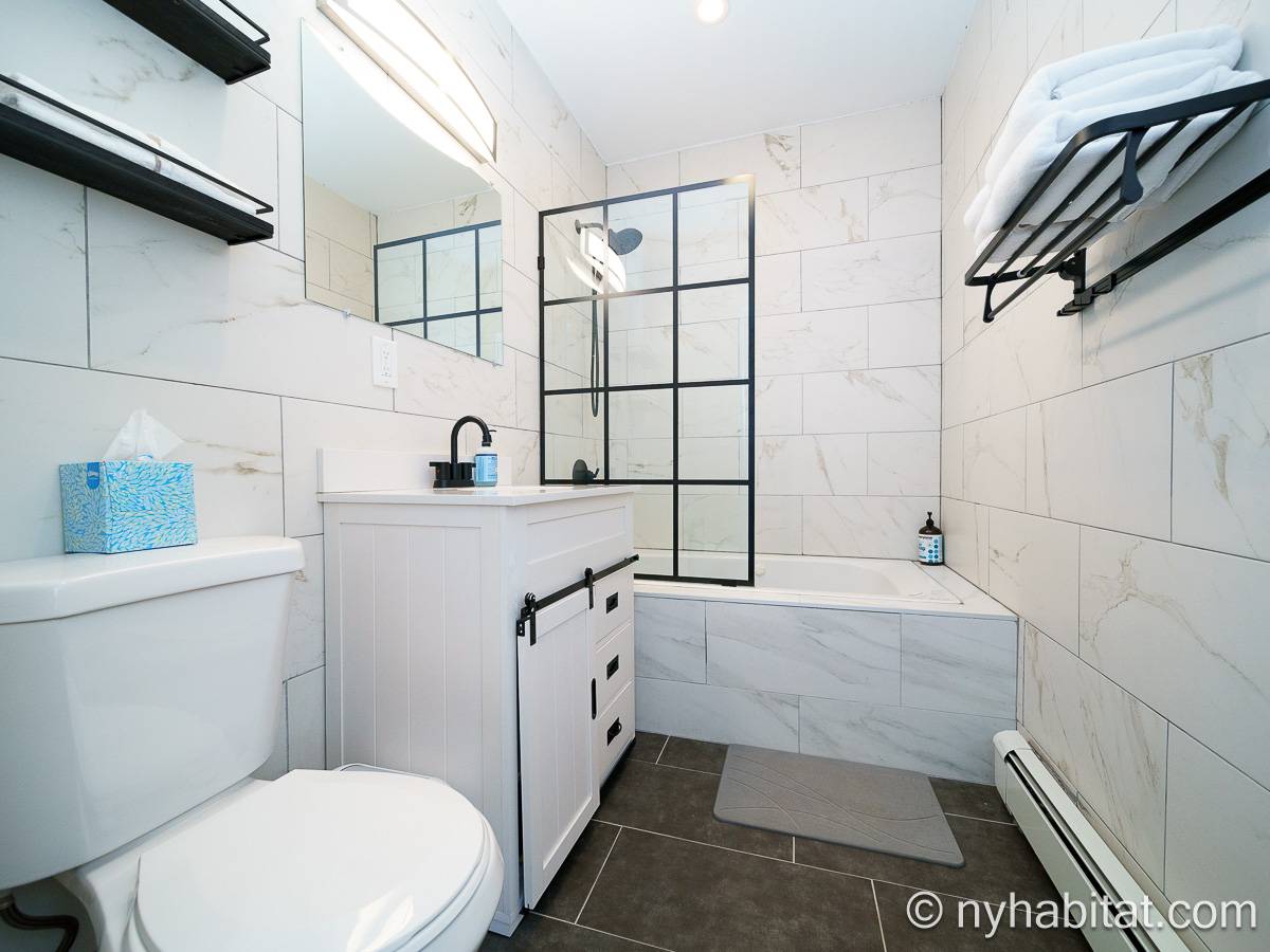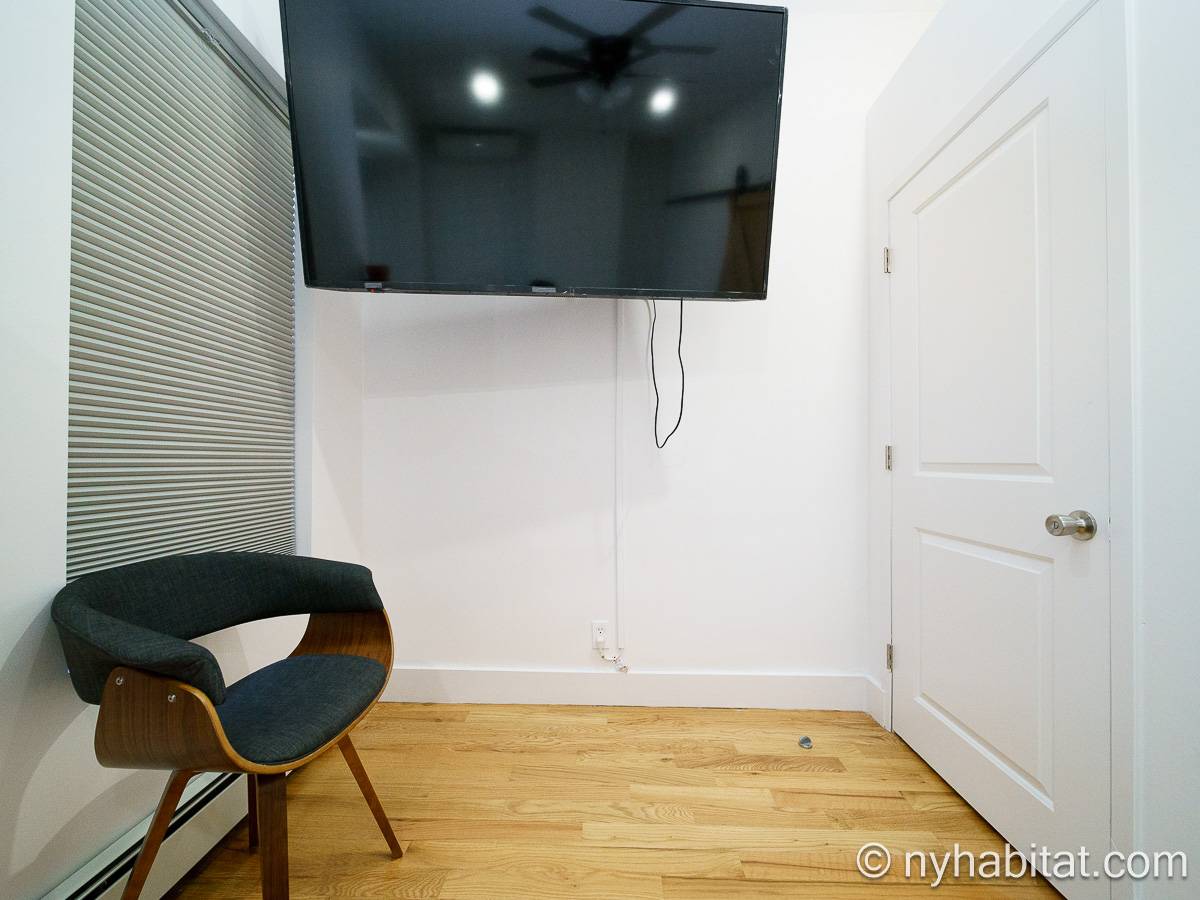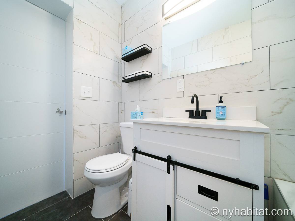 Diese 63 m2 große, möblierte Wohnung befindet sich in Crown Heights, Brooklyn, New York. Sie liegt in der 2. Etage (entspricht in Europa dem 1. Stock) und somit im obersten Stockwerk des Gebäudes und ist durchgehend mit Hartholzboden ausgestattet. In diesem Gebäude geringer Höhe gibt es keinen Aufzug.