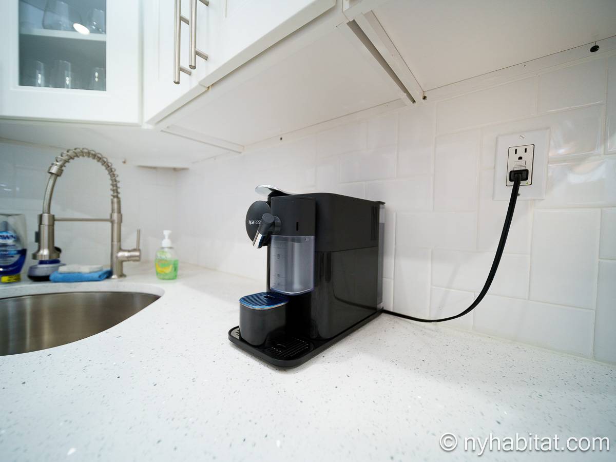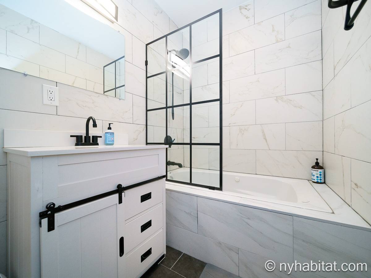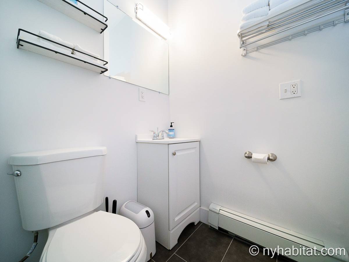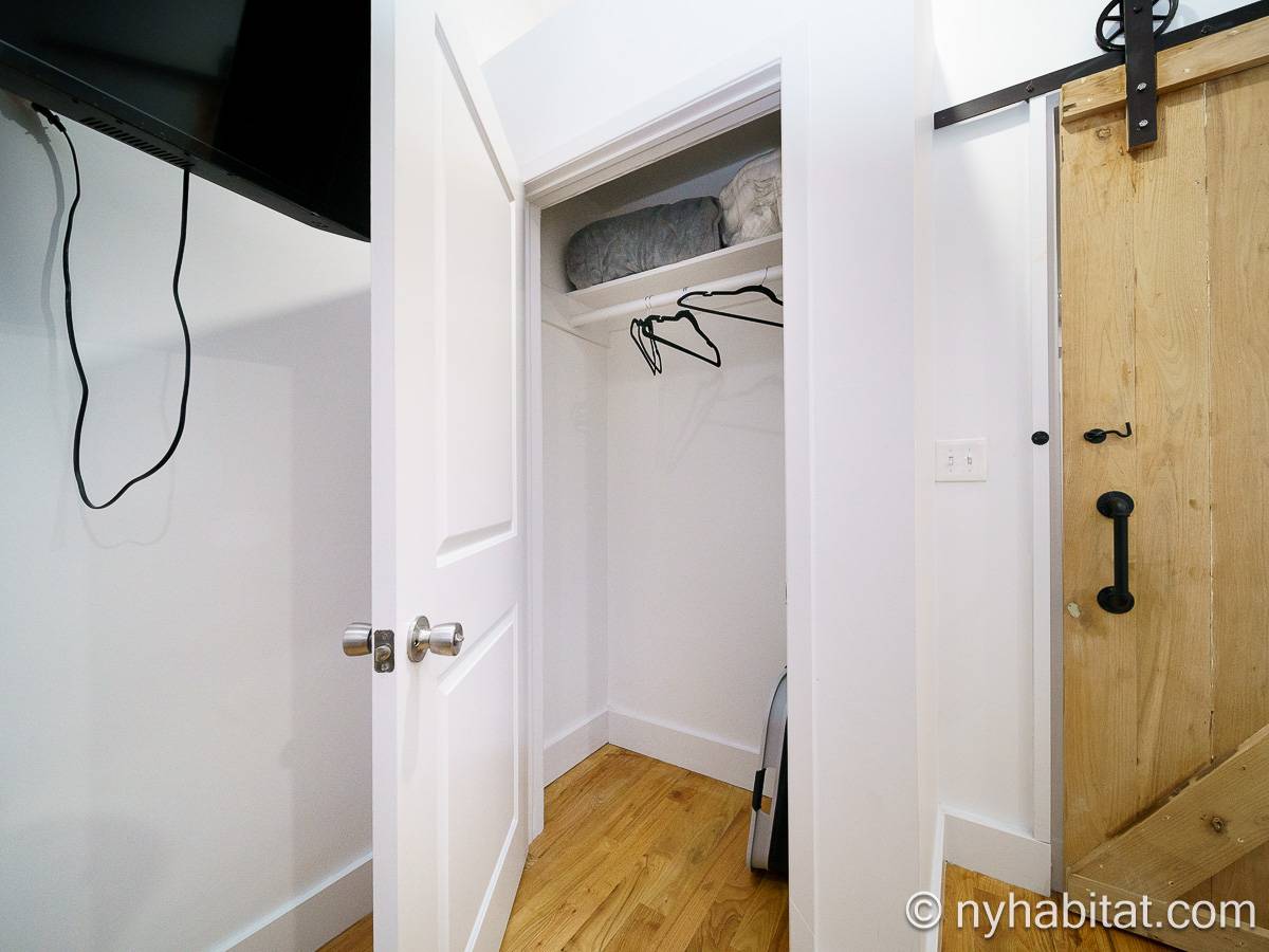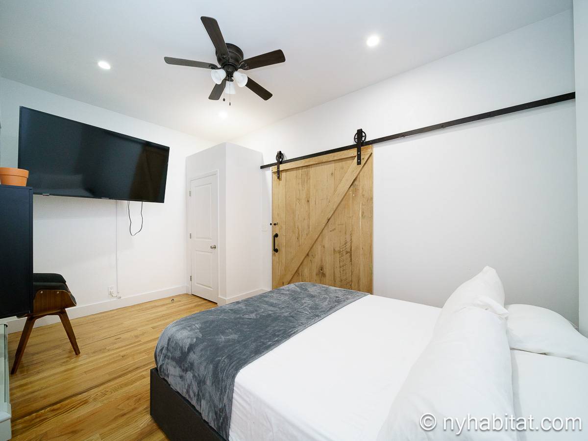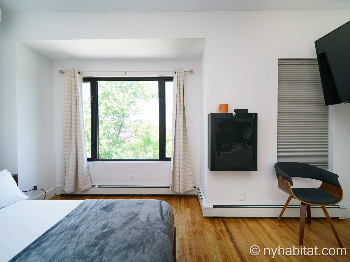 Diese 63 m2 große, möblierte Wohnung befindet sich in Crown Heights, Brooklyn, New York. Sie liegt in der 2. Etage (entspricht in Europa dem 1. Stock) und somit im obersten Stockwerk des Gebäudes und ist durchgehend mit Hartholzboden ausgestattet. In diesem Gebäude geringer Höhe gibt es keinen Aufzug.