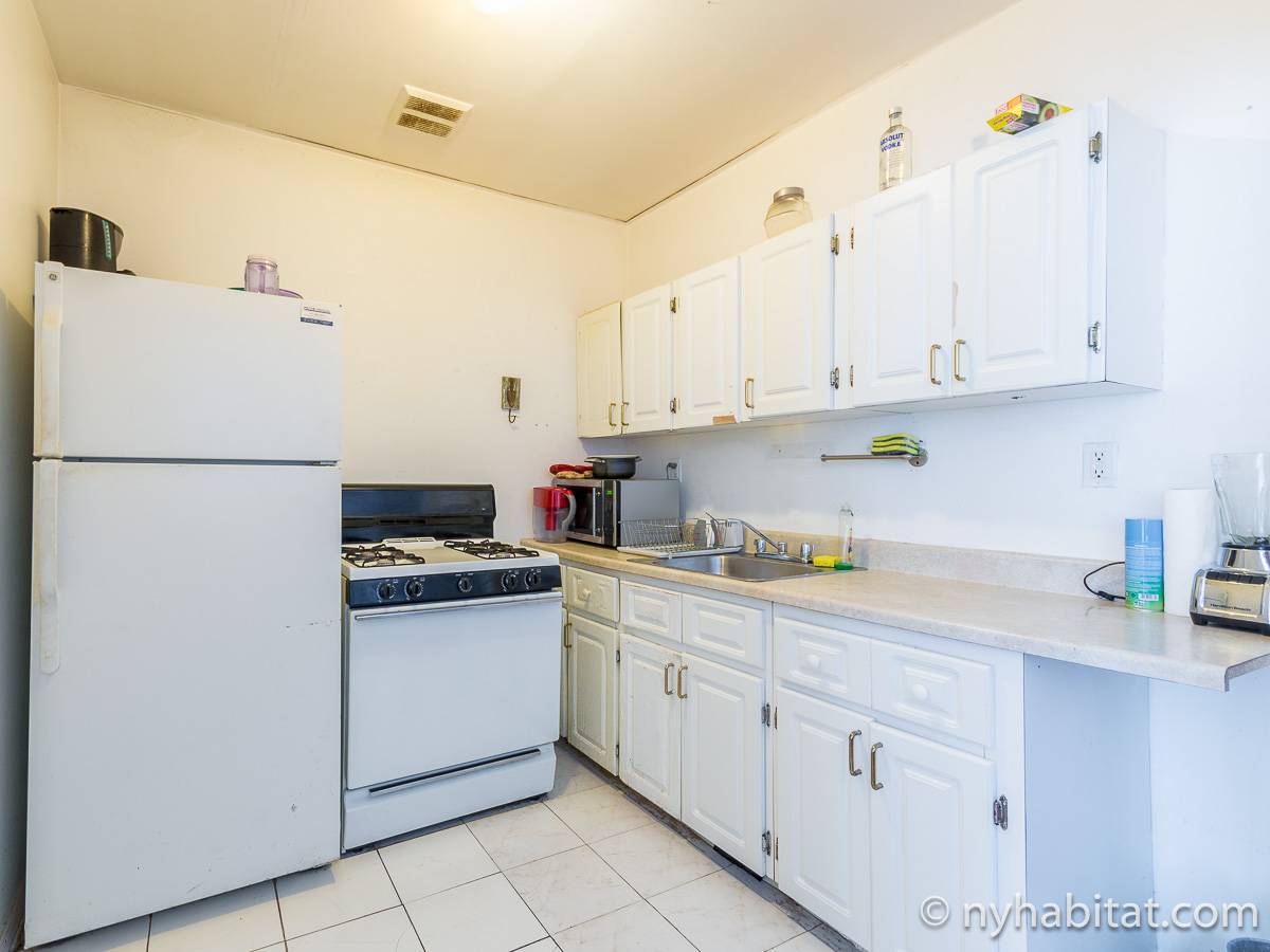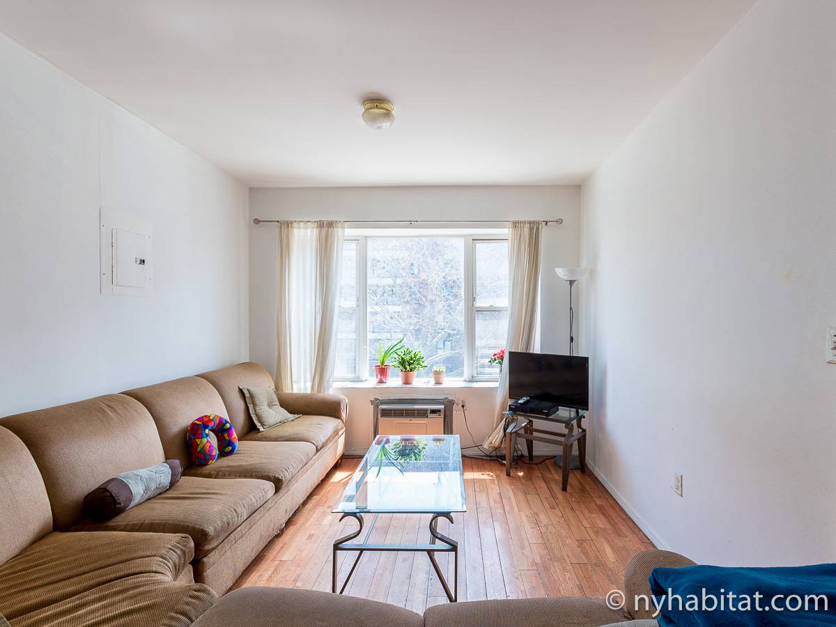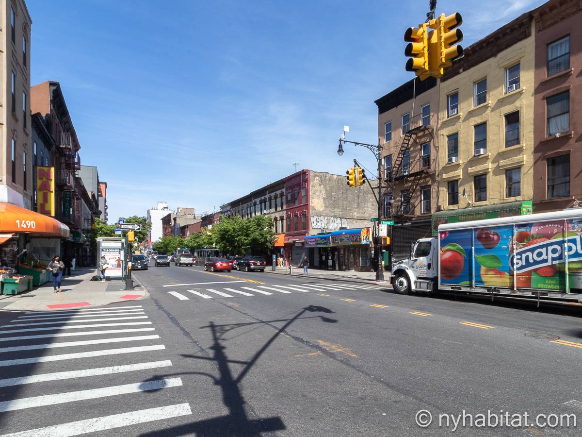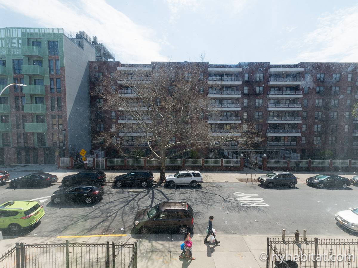 Diese 4-Zimmer-Wohnung befindet sich im zweiten und obersten Stockwerk eines Stadthauses in Bedford Stuyvesant im Stadtbezirk Brooklyn in New York. Dieses Haus wurde 2005 erbaut und bietet daher eine komplett klimatisierte Wohnung. Beachten Sie, dass dieses neue Haus mit dünnen Wänden gebaut wurde, sodass man manchmal Mitbewohner oder Nachbarn hören kann. Diese 102 m² große Wohnung hat ziemlich viel Platz, der vom Licht durchflutet wird, das durch die südlich und nördlich ausgerichteten Fenster in der ganzen Wohnung fällt.