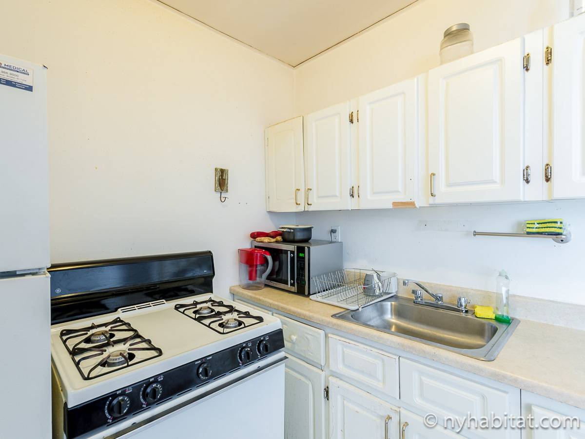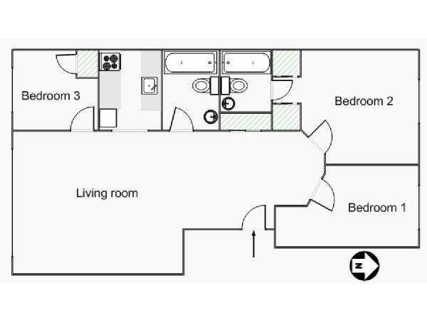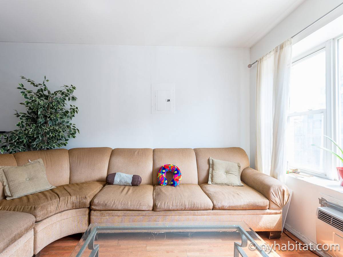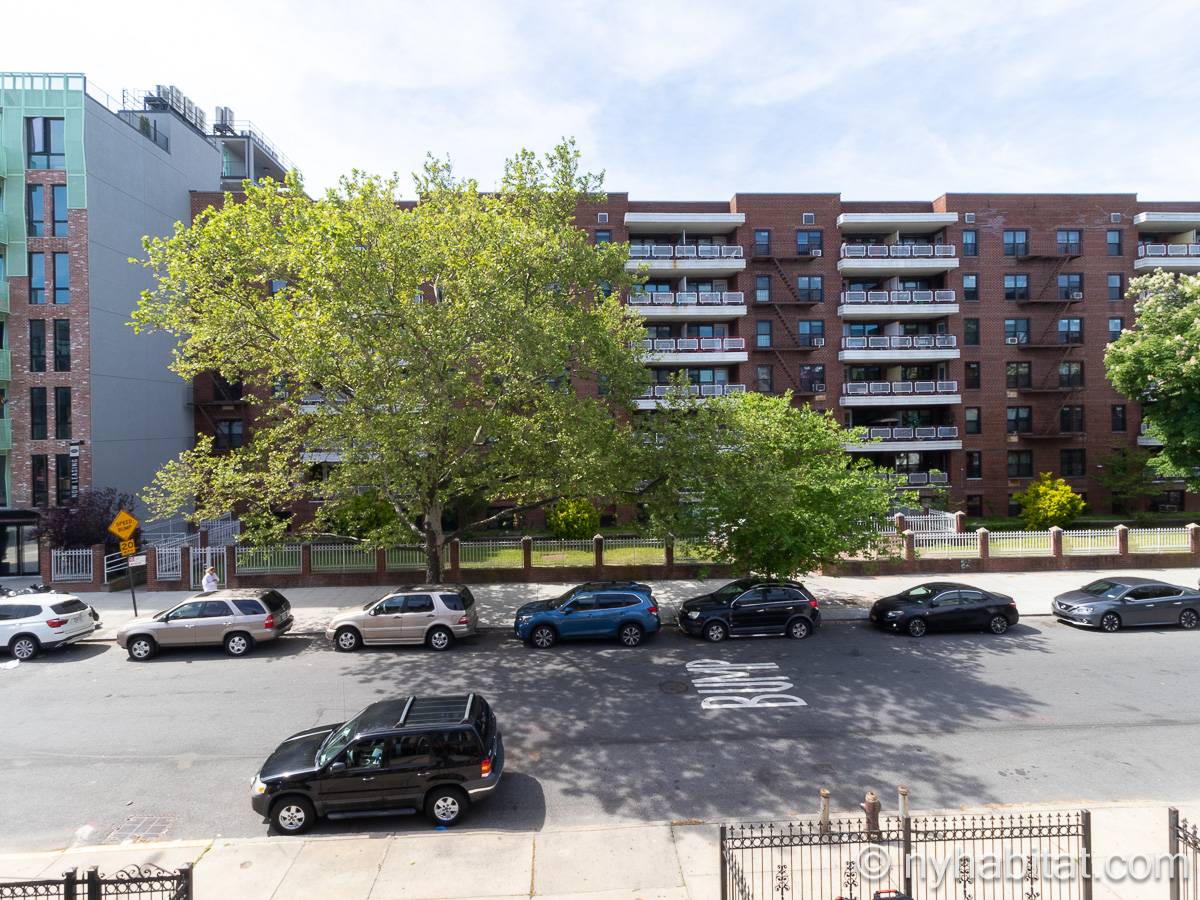 Diese 4-Zimmer-Wohnung befindet sich im zweiten und obersten Stockwerk eines Stadthauses in Bedford Stuyvesant im Stadtbezirk Brooklyn in New York. Dieses Haus wurde 2005 erbaut und bietet daher eine komplett klimatisierte Wohnung. Beachten Sie, dass dieses neue Haus mit dünnen Wänden gebaut wurde, sodass man manchmal Mitbewohner oder Nachbarn hören kann. Diese 102 m² große Wohnung hat ziemlich viel Platz, der vom Licht durchflutet wird, das durch die südlich und nördlich ausgerichteten Fenster in der ganzen Wohnung fällt.