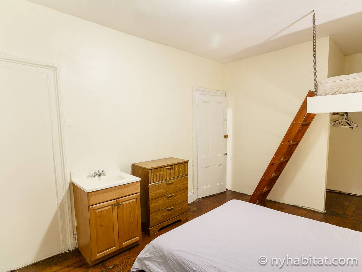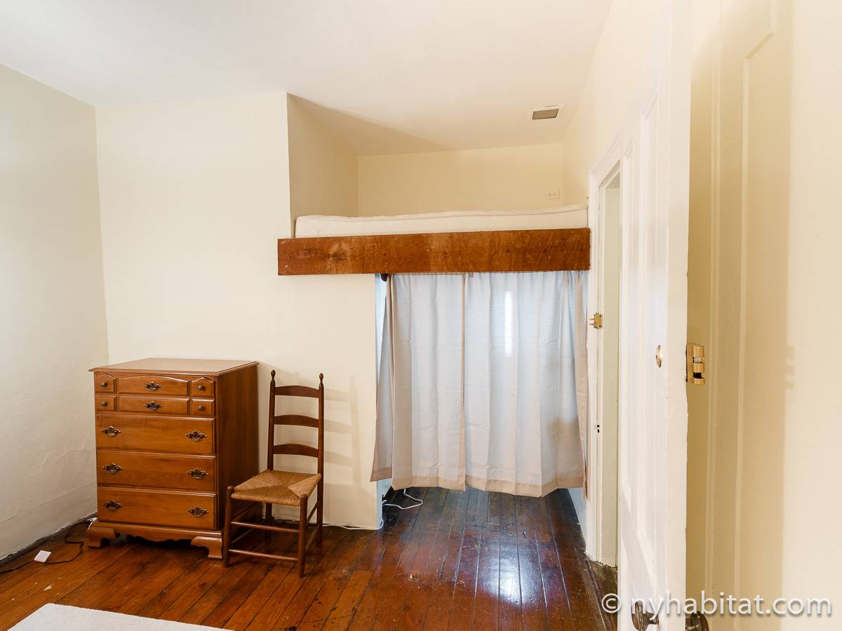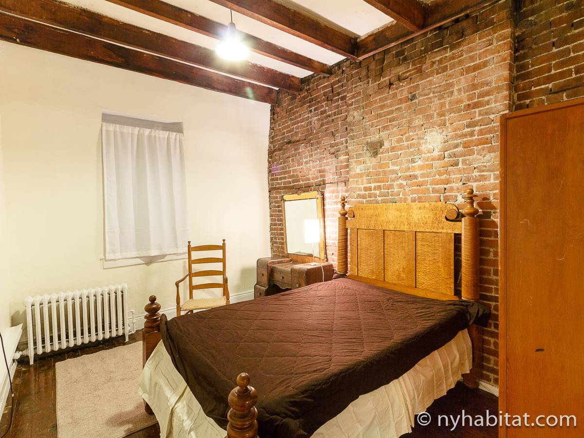 Die WG liegt in den oberen beiden Stockwerken des 3-stöckigen Sandsteinhauses (entspricht einem 2-stöckigen Haus in Europa) an der 3rd Street und Smith Street und besitzt als 6-Zimmer-Wohnung genug Schlafmöglichkeiten. Die Schlafzimmer der unteren Etage (Schlafzimmer 1 und 2 auf Fotos und Grundriss) haben beide Loft-Bereiche mit Matratzen, die über eine Leiter zu erreichen sind. Obwohl diese Bereiche niedrige Decken haben und offen zu dem Rest des Schlafzimmers hin sind, bieten sie Flexibilität für größere Gruppen. Unter diesen Loft-Bereichen finden Sie Stauraum, in dem Sie Ihre Kleidung aufhängen oder andere Dinge verstauen können. Die Schlafzimmer im oberen Bereich der Wohngemeinschaft sind einzigartig: das größere Schlafzimmer (Schlafzimmer 2) besitzt eine rustikale Schiebetür, ein Doppelbett und Kleiderschrank, während das kleinere Schlafzimmer (Schlafzimmer 4) ein Doppelbett zur Verfügung stellt.