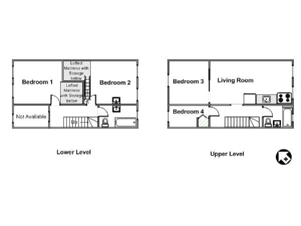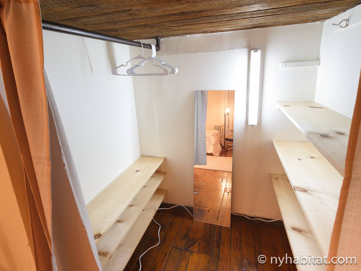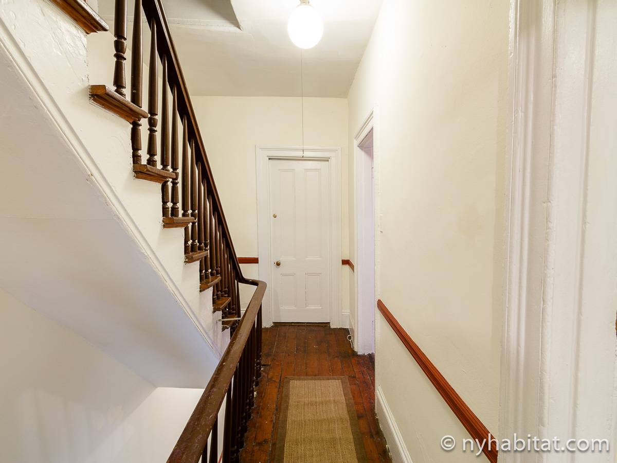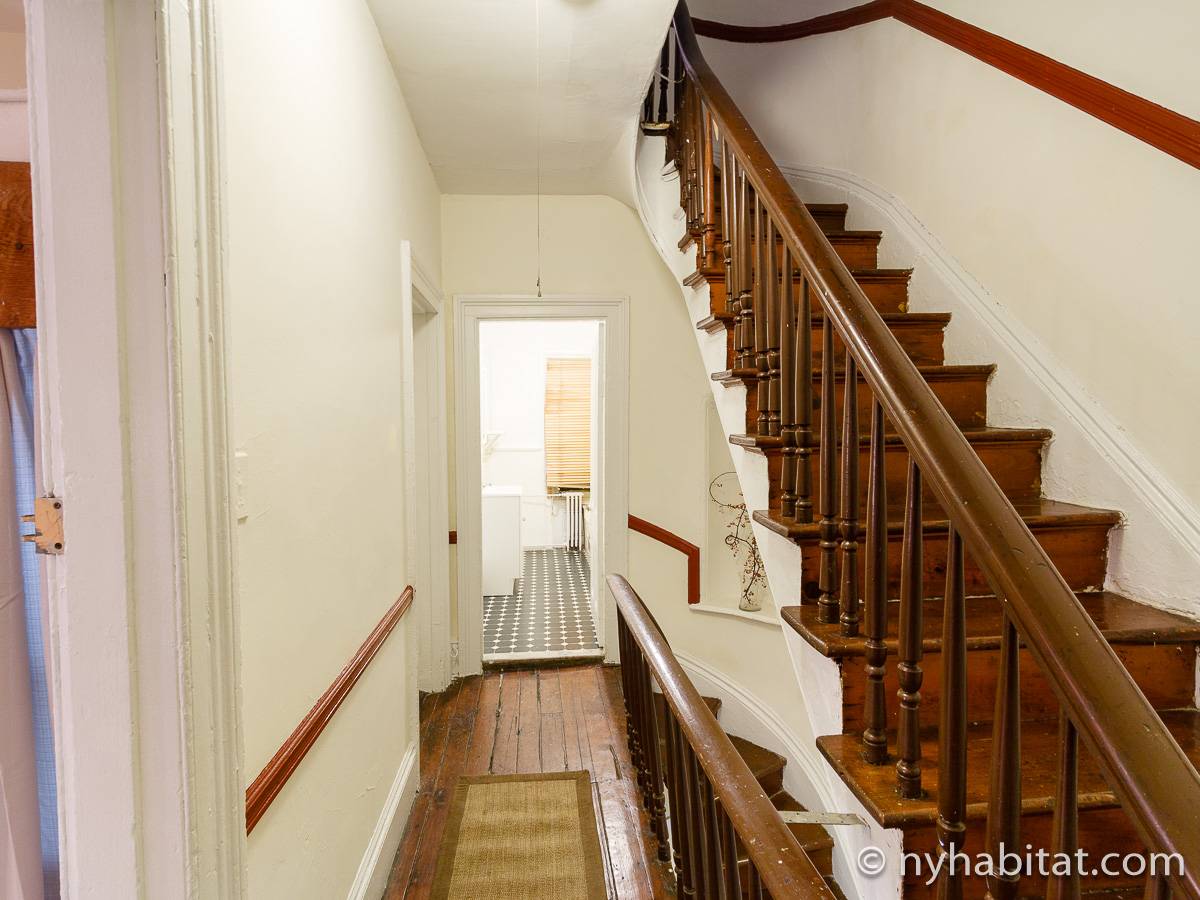 Die WG liegt in den oberen beiden Stockwerken des 3-stöckigen Sandsteinhauses (entspricht einem 2-stöckigen Haus in Europa) an der 3rd Street und Smith Street und besitzt als 6-Zimmer-Wohnung genug Schlafmöglichkeiten. Die Schlafzimmer der unteren Etage (Schlafzimmer 1 und 2 auf Fotos und Grundriss) haben beide Loft-Bereiche mit Matratzen, die über eine Leiter zu erreichen sind. Obwohl diese Bereiche niedrige Decken haben und offen zu dem Rest des Schlafzimmers hin sind, bieten sie Flexibilität für größere Gruppen. Unter diesen Loft-Bereichen finden Sie Stauraum, in dem Sie Ihre Kleidung aufhängen oder andere Dinge verstauen können. Die Schlafzimmer im oberen Bereich der Wohngemeinschaft sind einzigartig: das größere Schlafzimmer (Schlafzimmer 2) besitzt eine rustikale Schiebetür, ein Doppelbett und Kleiderschrank, während das kleinere Schlafzimmer (Schlafzimmer 4) ein Doppelbett zur Verfügung stellt.