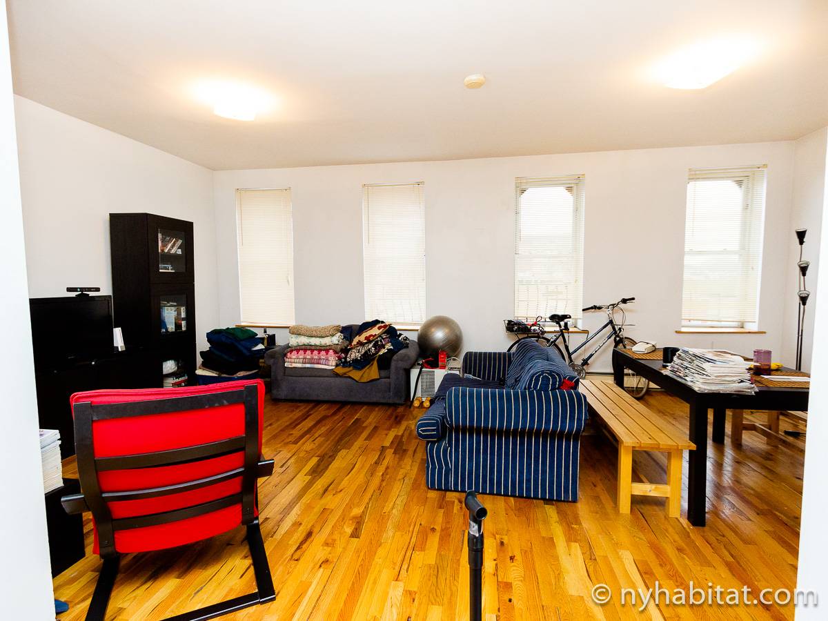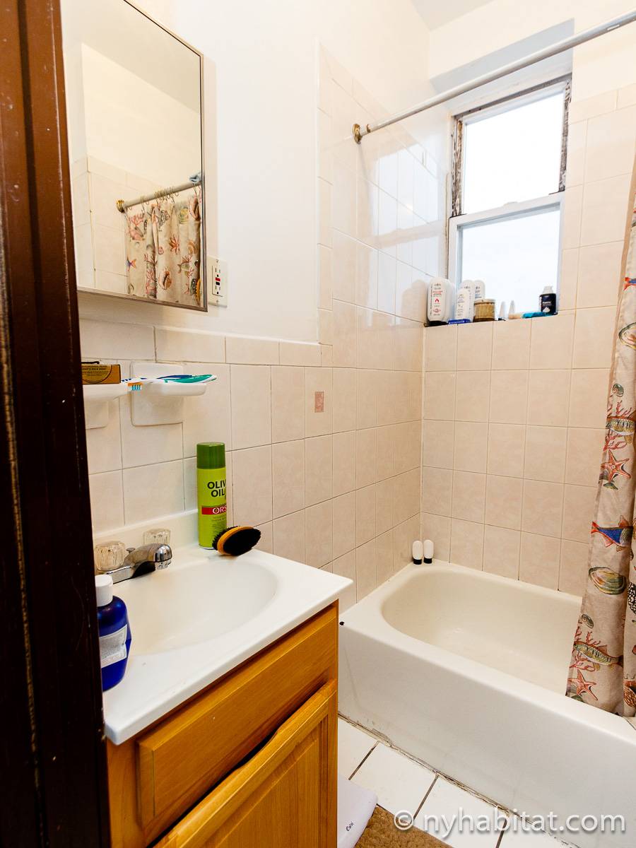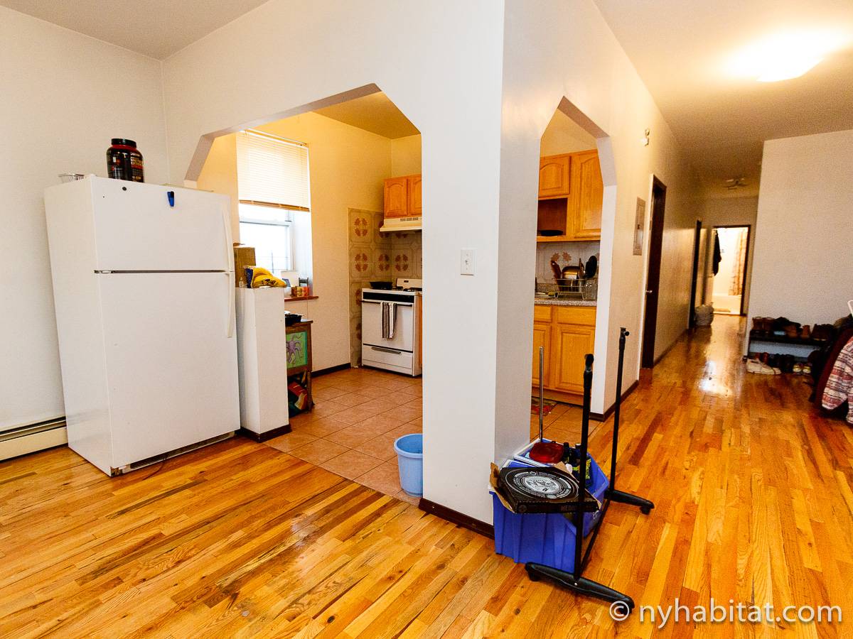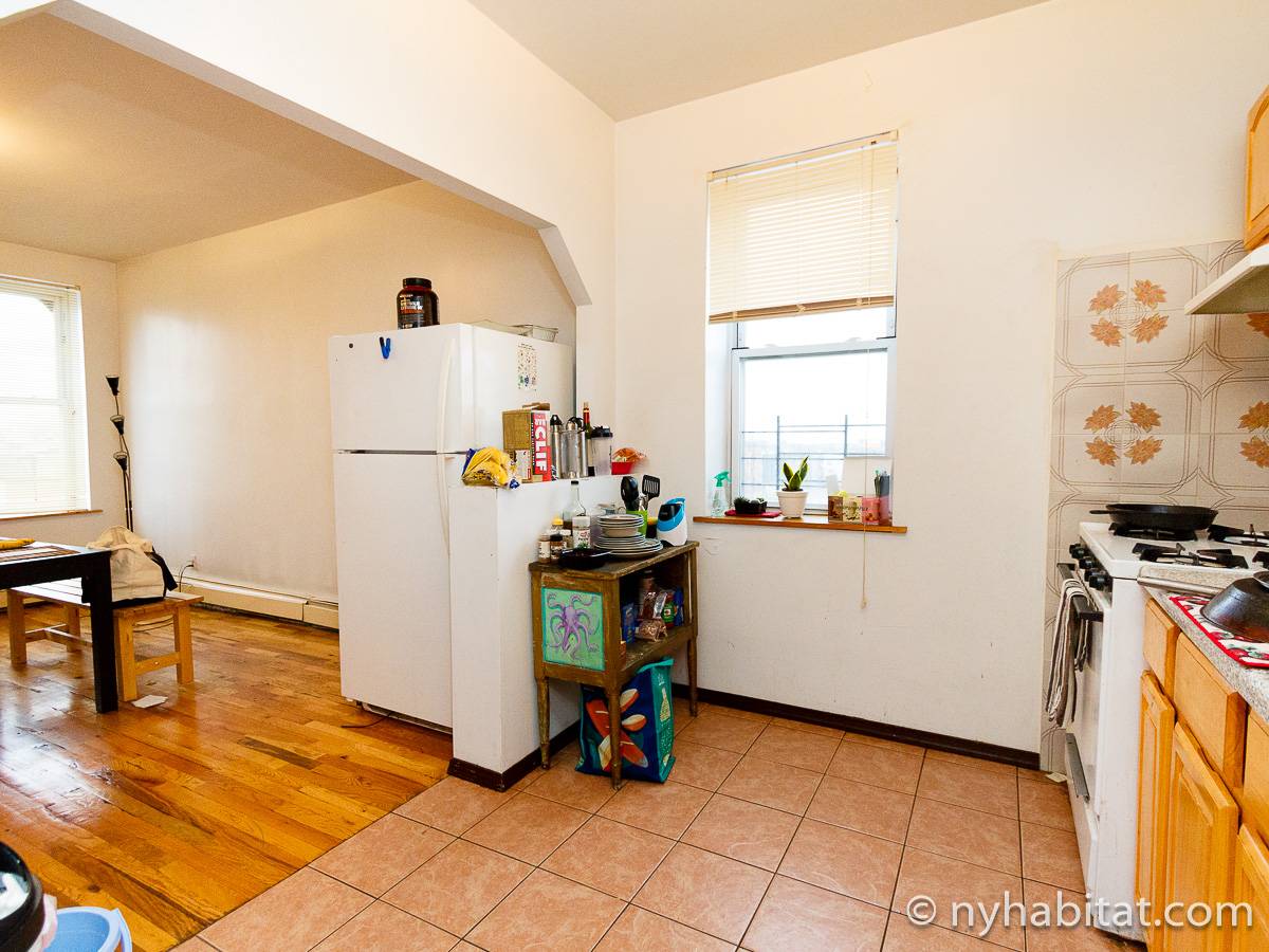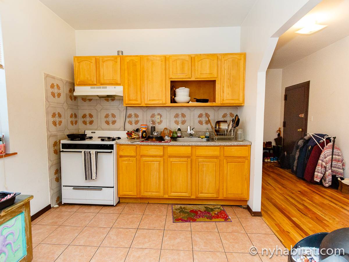 Diese New Yorker 4-Zimmer-Wohnung ist zeitgenössisch eingerichtet und ist durchweg mit Parkettfußboden ausgelegt. Das Zimmer zur Miete beinhaltet zwei Einzelbetten und einen Schrank für maximalen Stauraum, während das Badezimmer Ihnen eine Dusche, Badewanne, ein WC und ein Waschbecken mit Waschtisch bietet. Die offene Küche ist mit einem Ofen und einem großen Kühlschrank voll ausgestattet, sodass Sie Ihre Mahlzeiten zuhause zubereiten können. Das Wohnzimmer beinhaltet ein Sofa, einen Esstisch, an dem vier Personen Platz finden, sowie einen Kabelfernseher.