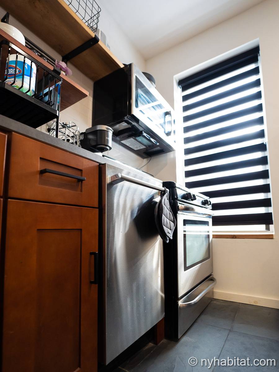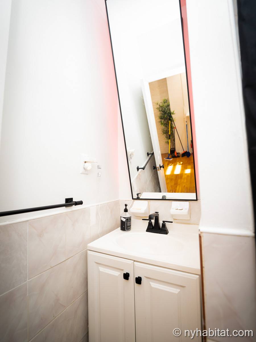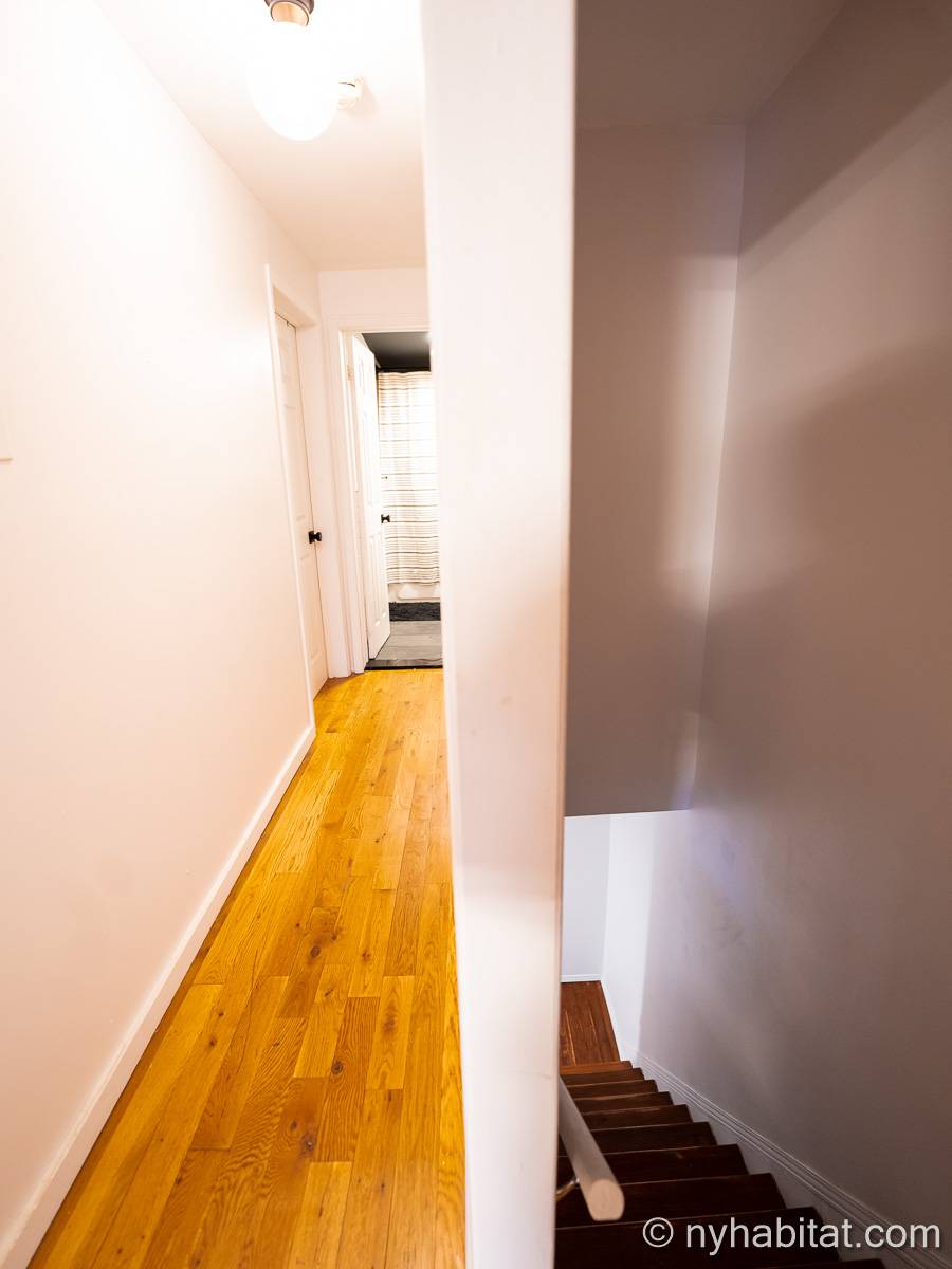 Die Bilder sind ziemlich veraltet und es sieht so aus, als hätte der Maler einen sehr schlechten Job gemacht. Die Spritzer auf dem Boden lassen ihn immer so aussehen, als wäre er dreckig. Es gab einen starken Wasserschaden in der Küche an der Stelle, wo das Wasserdampfrohr in den dritten Stock geht, und es wurde nie repariert. Eine der Duschen war bereits kaputt, als ich einzog, und wurde bis ich auszog auch nicht repariert. Bei dem Bett handelte es sich um ein Gitterbett und nicht um ein richtiges Boxspringbett. |