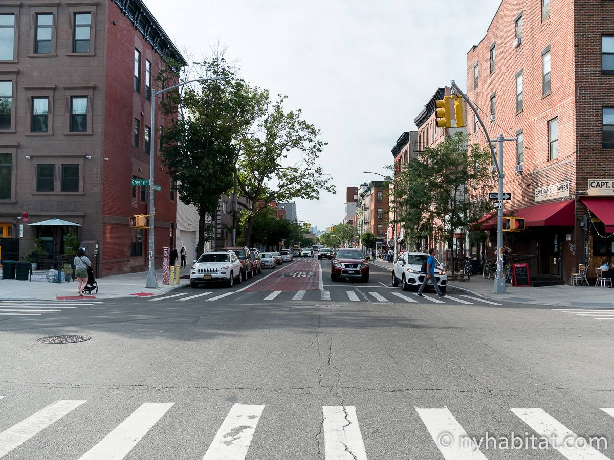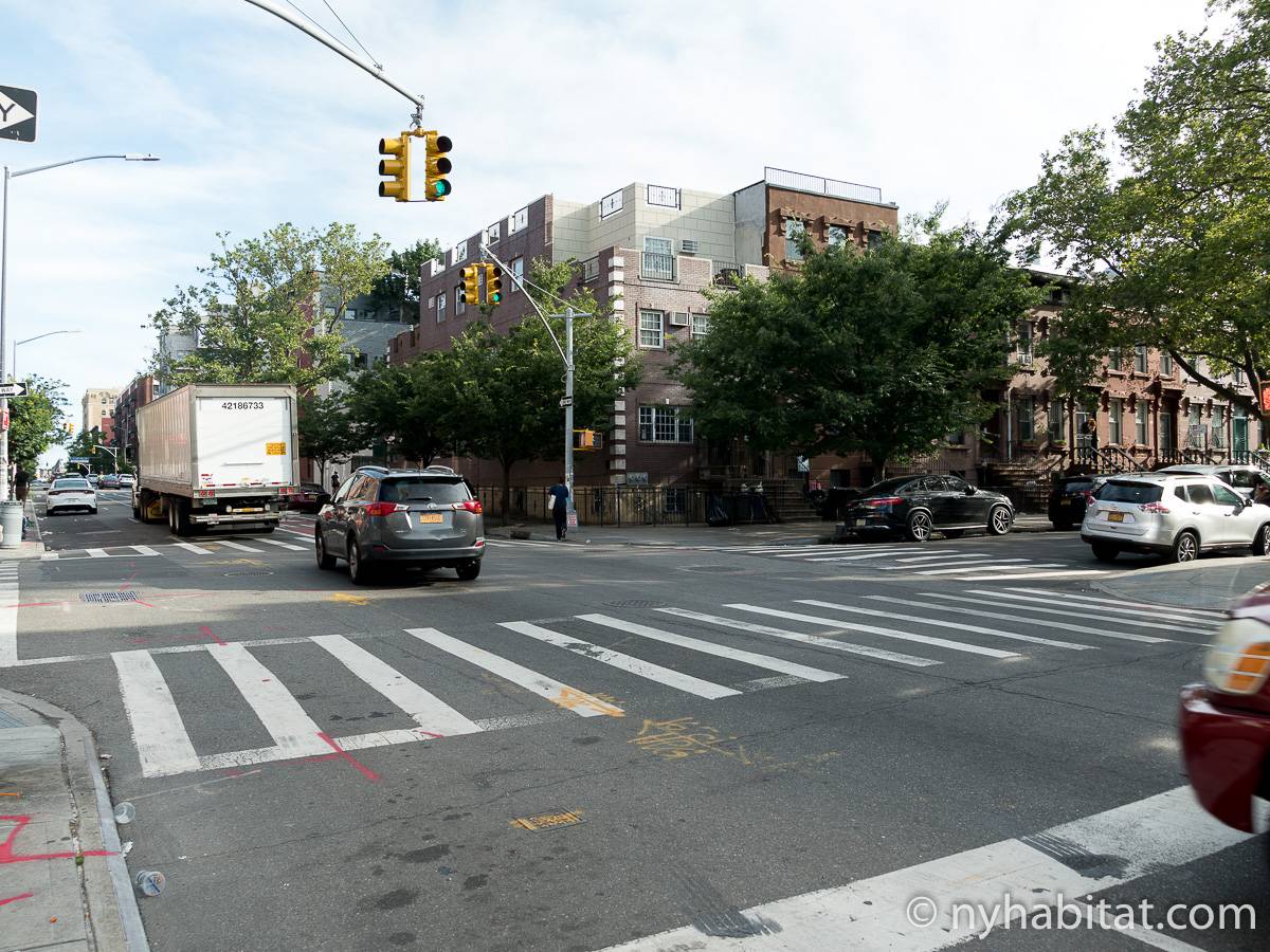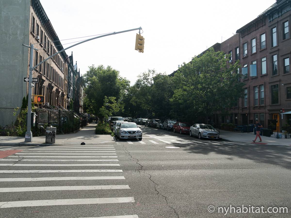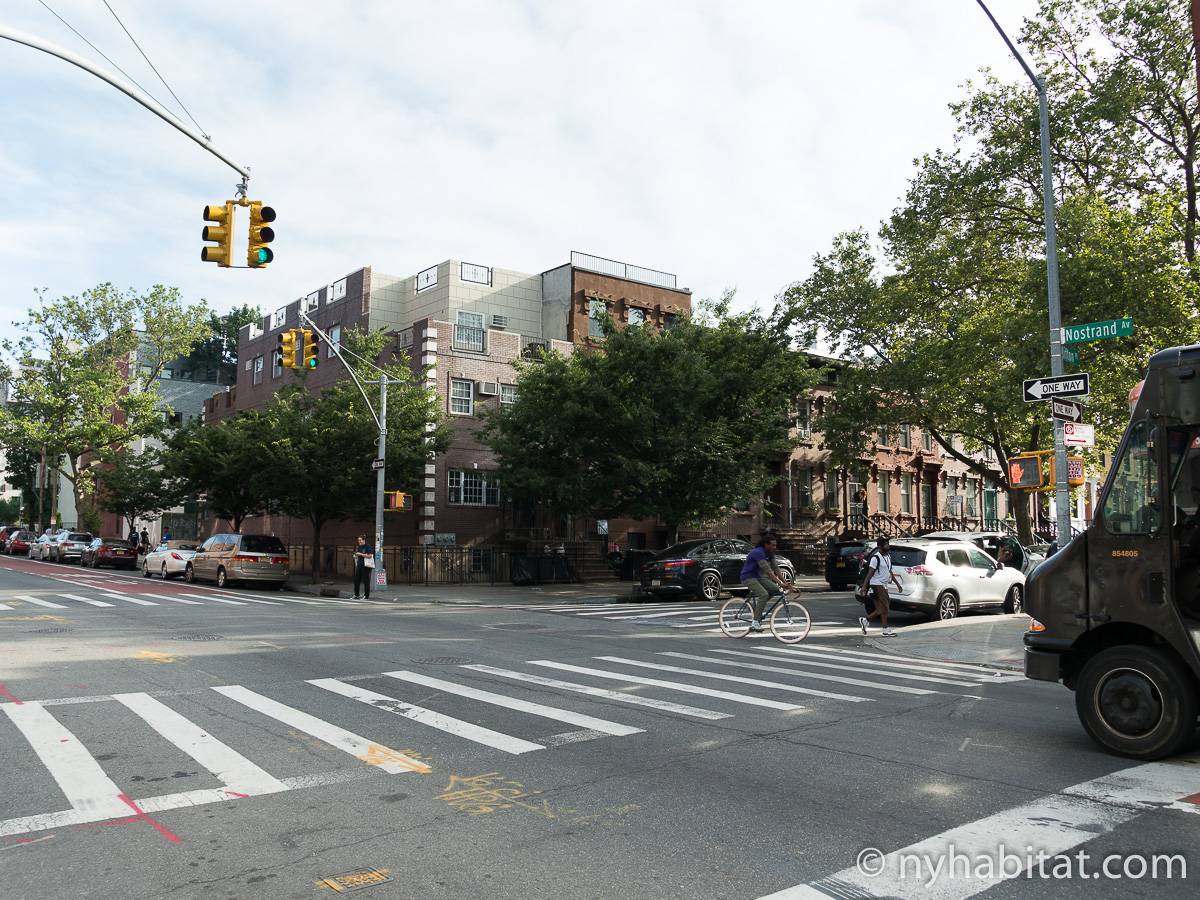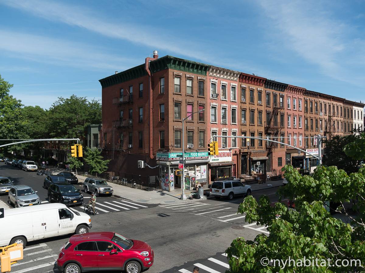 Inmitten von Williamsburg, Bushwick Crown Heights und Clinton Hill, an der Ecke Lexington Avenue/Nordstrand Avenue befindet sich diese vielversprechende 5-Zimmer-Wohnung in Bedford Stuyvesant, New York. Die Maisonette-Wohnung liegt im ersten und zweiten Stock (entspricht in Europa dem Erdgeschoss und dem ersten Stock) eines Mehrfamilienhauses.