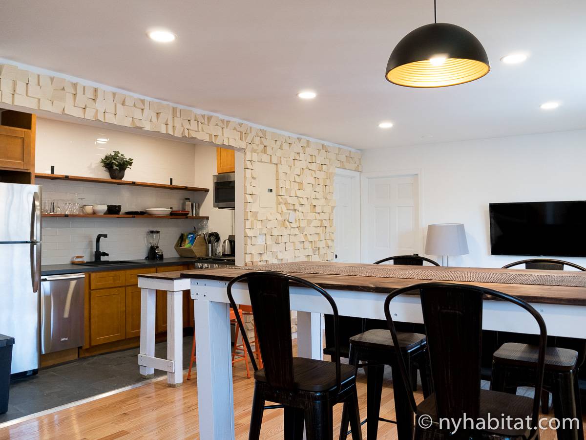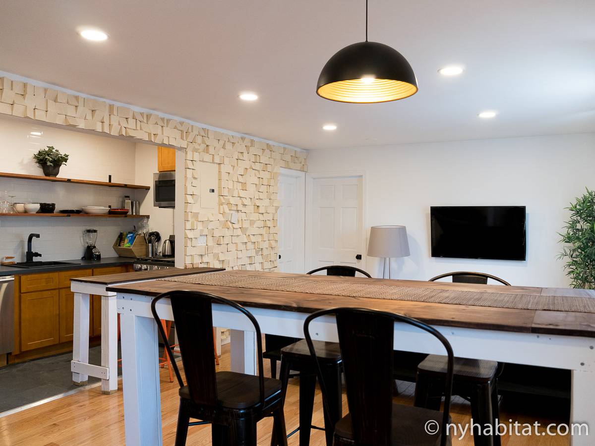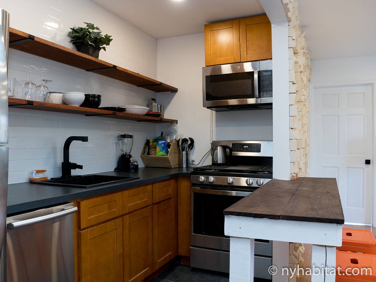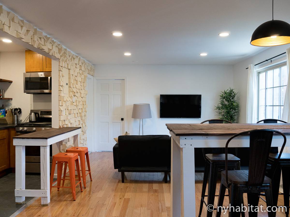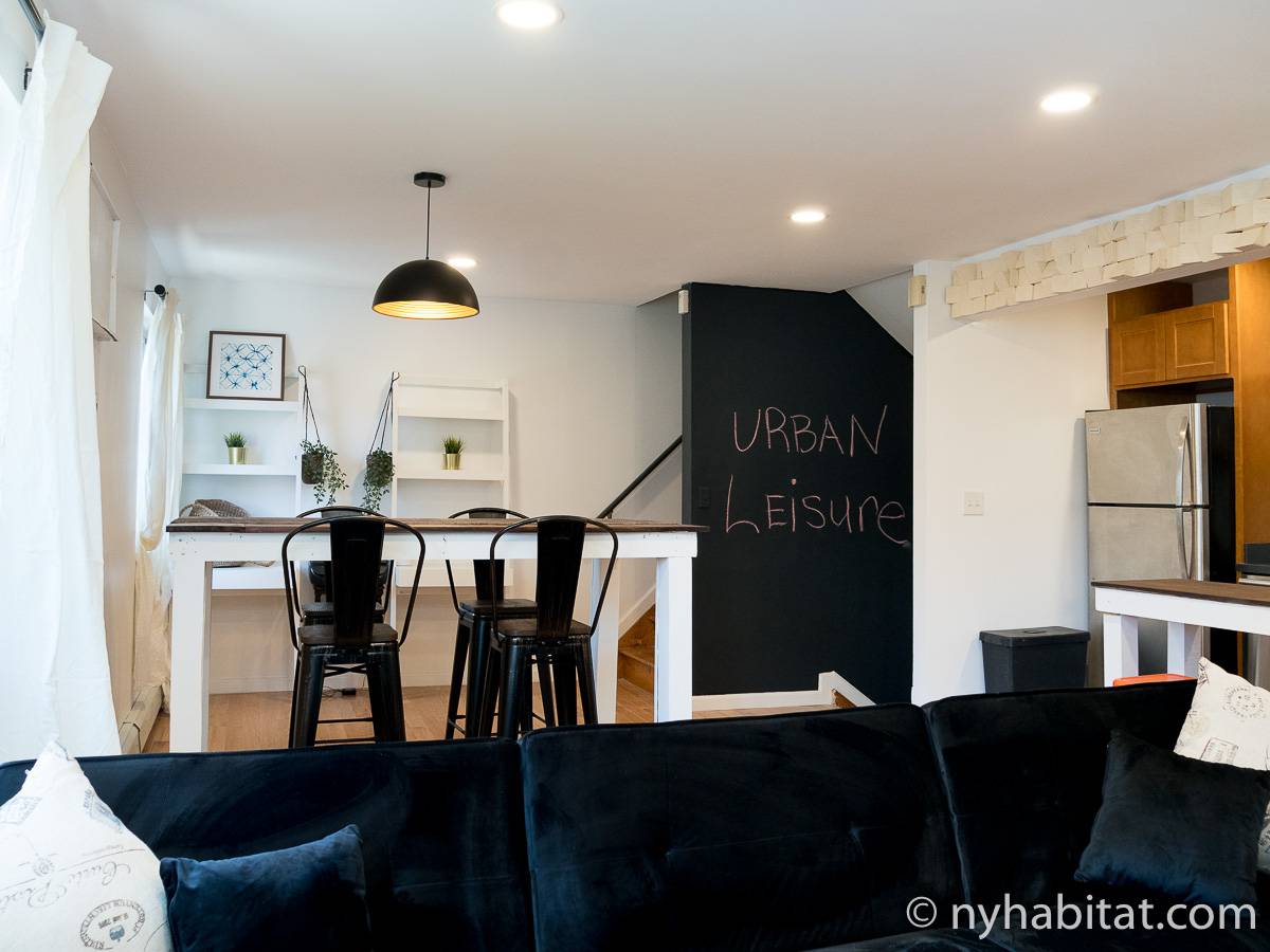 Inmitten von Williamsburg, Bushwick Crown Heights und Clinton Hill, an der Ecke Lexington Avenue/Nordstrand Avenue befindet sich diese vielversprechende 5-Zimmer-Wohnung in Bedford Stuyvesant, New York. Die Maisonette-Wohnung liegt im ersten und zweiten Stock (entspricht in Europa dem Erdgeschoss und dem ersten Stock) eines Mehrfamilienhauses.