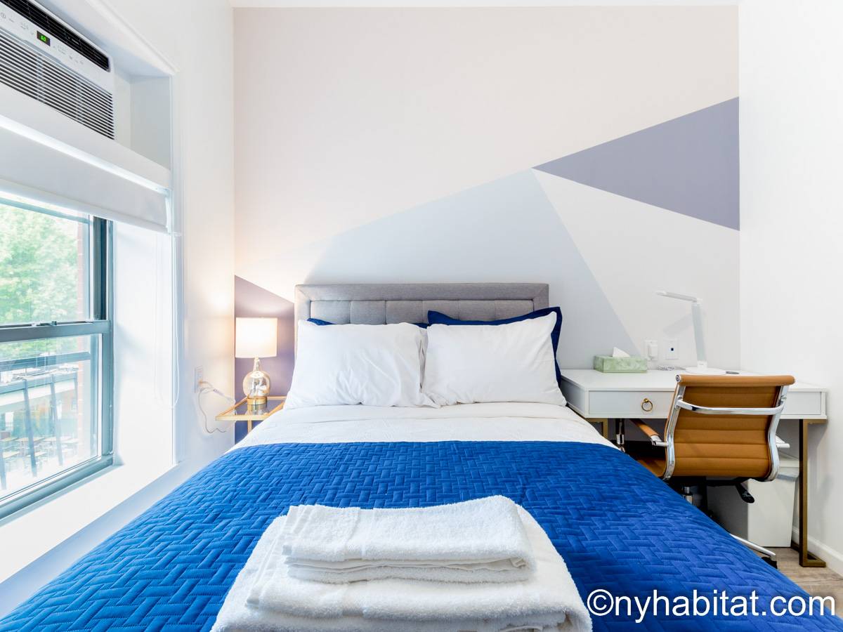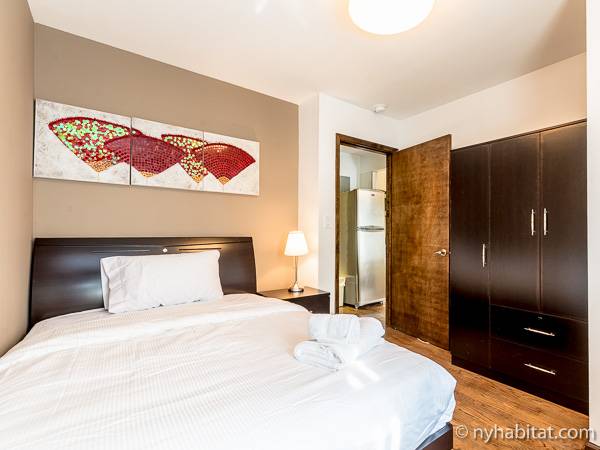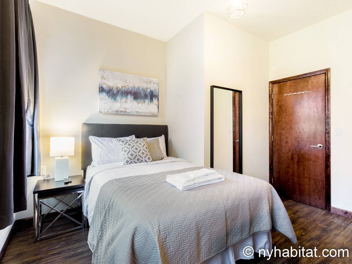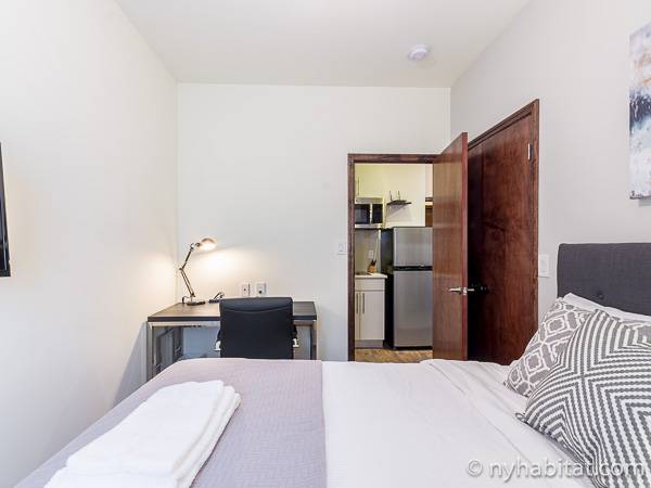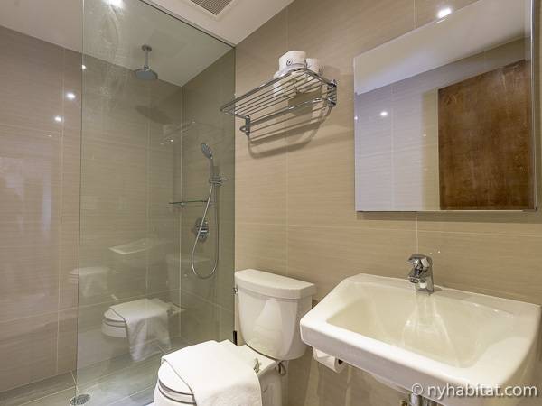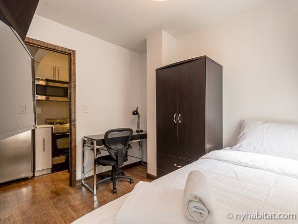 Die 3-Zimmer-Wohnung verfügt über einen Hartholzboden. In der Nähe von mehreren Colleges und Universitäten in Downtown richten sich die Wohnungen in diesem Gebäude an Studenten, die 9-monatige Mietverträge abschließen möchten (Sommermonate + Semester). Die Küche ist mit modernen weißen Schränken sowie Elektrogeräten aus Edelstahl ausgestattet und bietet alles, was Sie für die Zubereitung von Gerichten benötigen: einen Herd mit Backofen, Toaster, großen Kühlschrank, eine Mikrowelle und Kaffeemaschine. Im Schlafzimmer 1 sind ein Doppelbett, Nachttisch, Schrank und ein Schreibtisch mit einem Stuhl vorhanden. Das Schlafzimmer 2 verfügt über ein Doppelbett, einen Schrank, einen Schreibtisch mit einem Stuhl sowie einen Fernseher mit Kabelanschluss. Beide Schlafzimmer haben eine Klimaanlage. Das Badezimmer ist mit beigen Fliesen sowie einer Regendusche mit Glaswand ausgestattet.