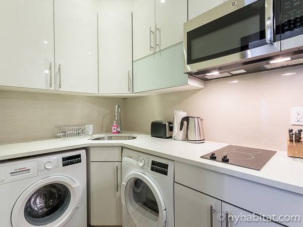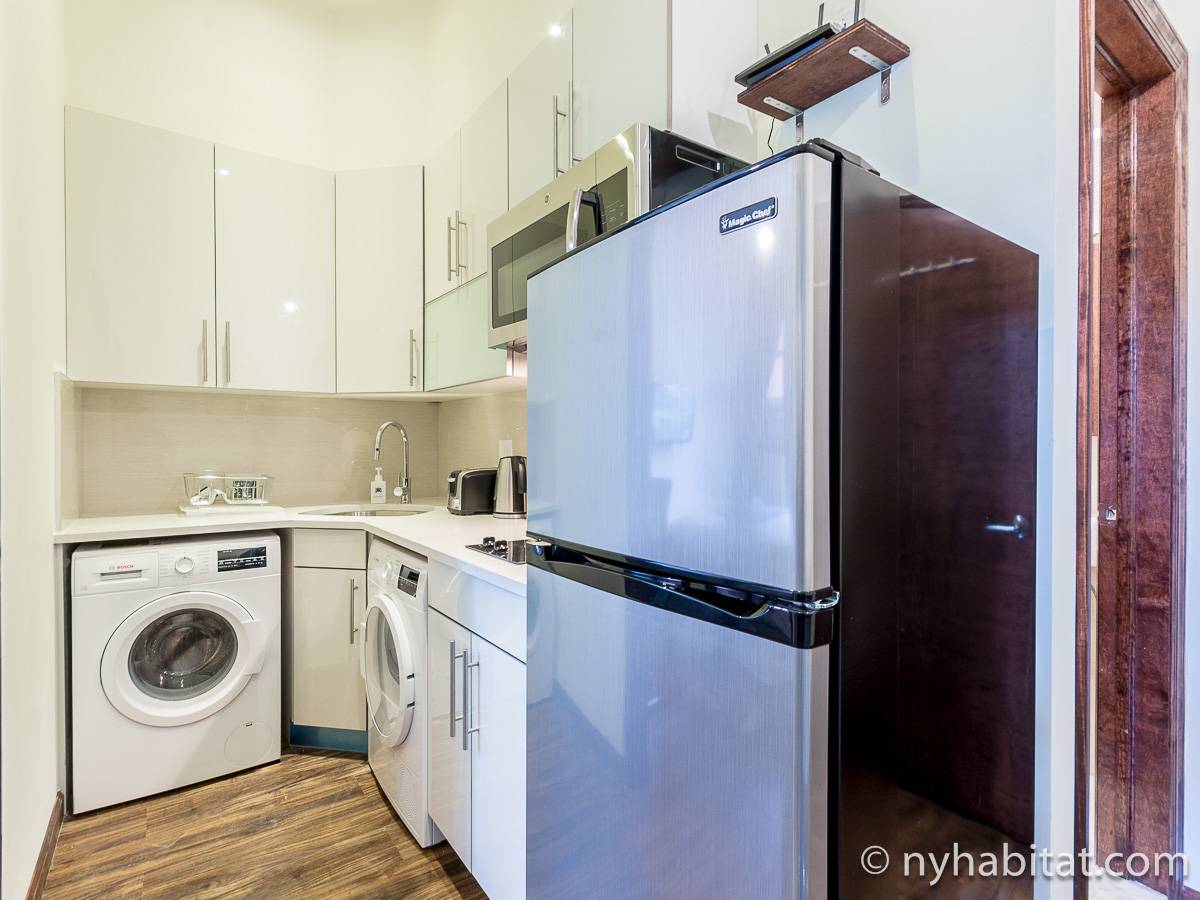 Diese 3-Zimmer-Wohnung in New York City befindet sich im 4. Stock (entspricht in Europa dem 3. Stock) eines fünfstöckigen Gebäudes mit Möglichkeiten zum Waschen von Kleidung, einer Videoüberwachung und einem Zugang per elektronischer Schlüsselkarte. Das Gebäude befindet sich in der Nähe der Sullivan Street und West 3rd Street im wunderschönen Stadtviertel Greenwich Village im Stadtbezirk Manhattan.