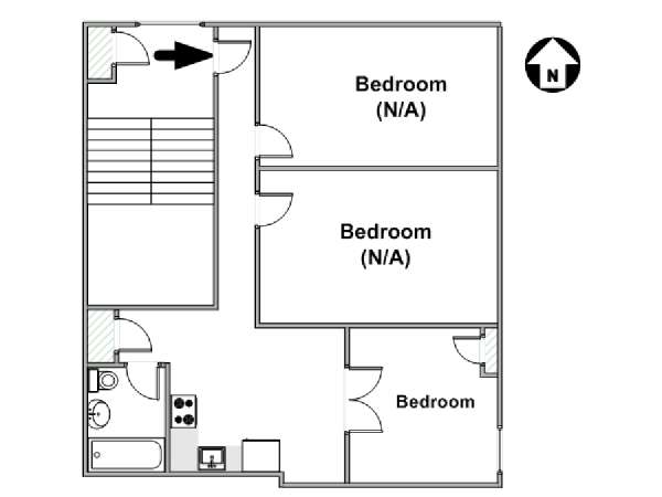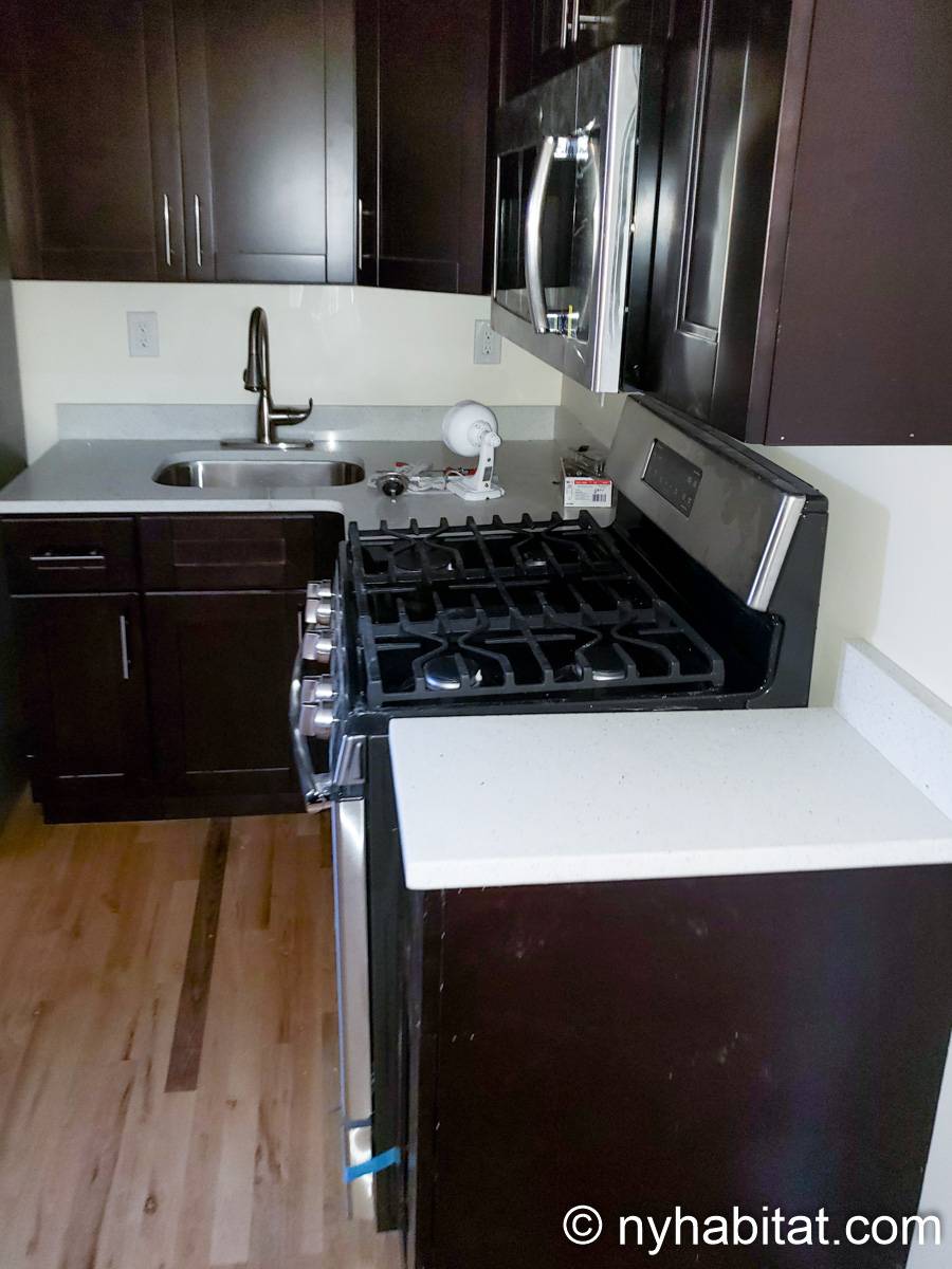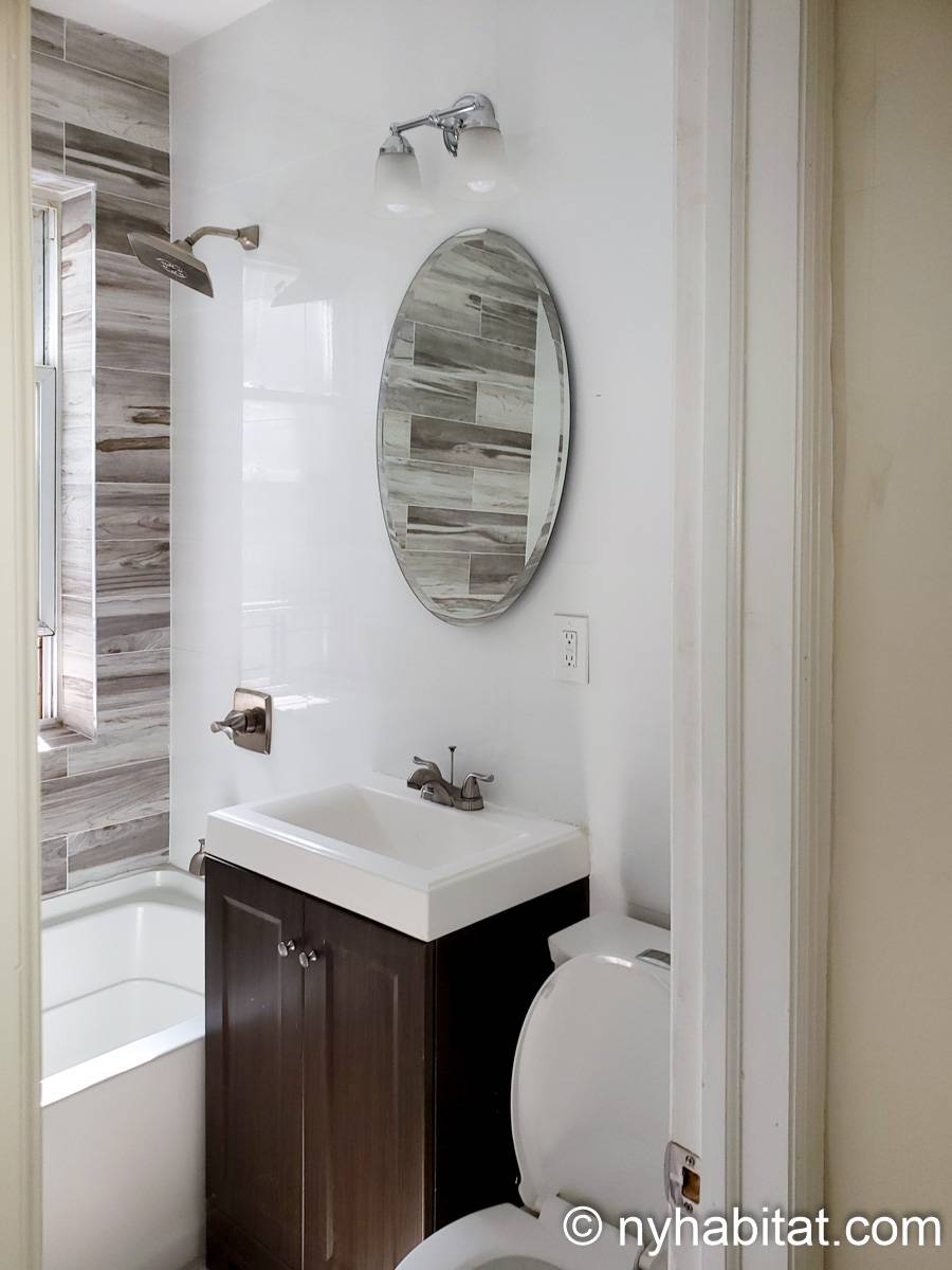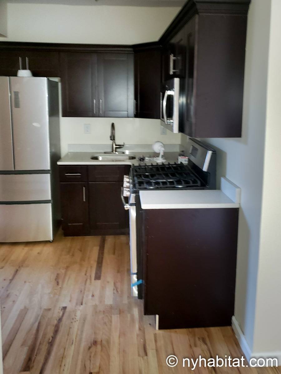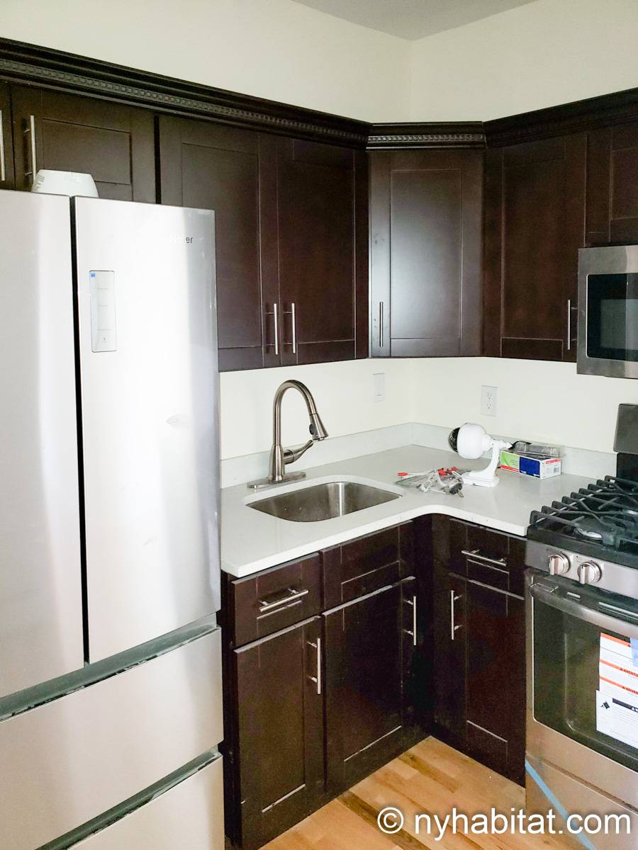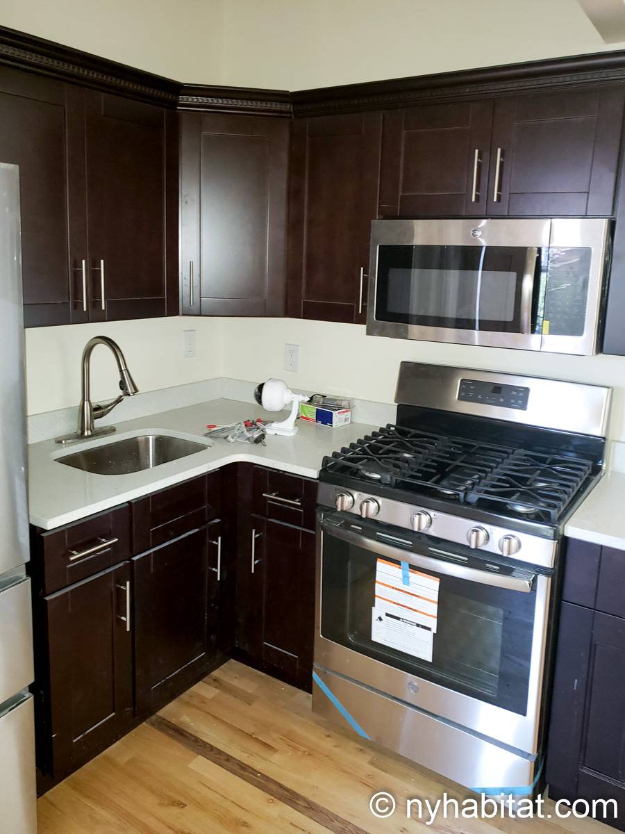 Ein Zimmer zur Miete in einer Wohngemeinschaft ist eine großartige Möglichkeit für Studenten und diejenigen, die nur ein begrenztes Budget zur Verfügung haben, aber dennoch in New York City wohnen möchten. Die Wohnung verfügt über drei Zimmer zur Miete, wobei die Küche und das Badezimmer mit den Mitbewohnern geteilt werden. Die Gemeinschaftsküche ist mit allem ausgestattet, was Sie brauchen, einschließlich eines Gasherds sowie Kühlschranks aus Edelstahl und Schränken, um Lebensmittel zu lagern. Ein runder Esstisch lädt zum Essen ein. Das private Schlafzimmer zur Miete (Schlafzimmer 1) verfügt über einen Hartholzboden, einen Schrank für Stauraum und ein Doppelbett. Das Gemeinschaftsbad verfügt über eine Duschbadewanne, Toilette, einen Spiegel und ein Waschbecken samt Unterschrank.
